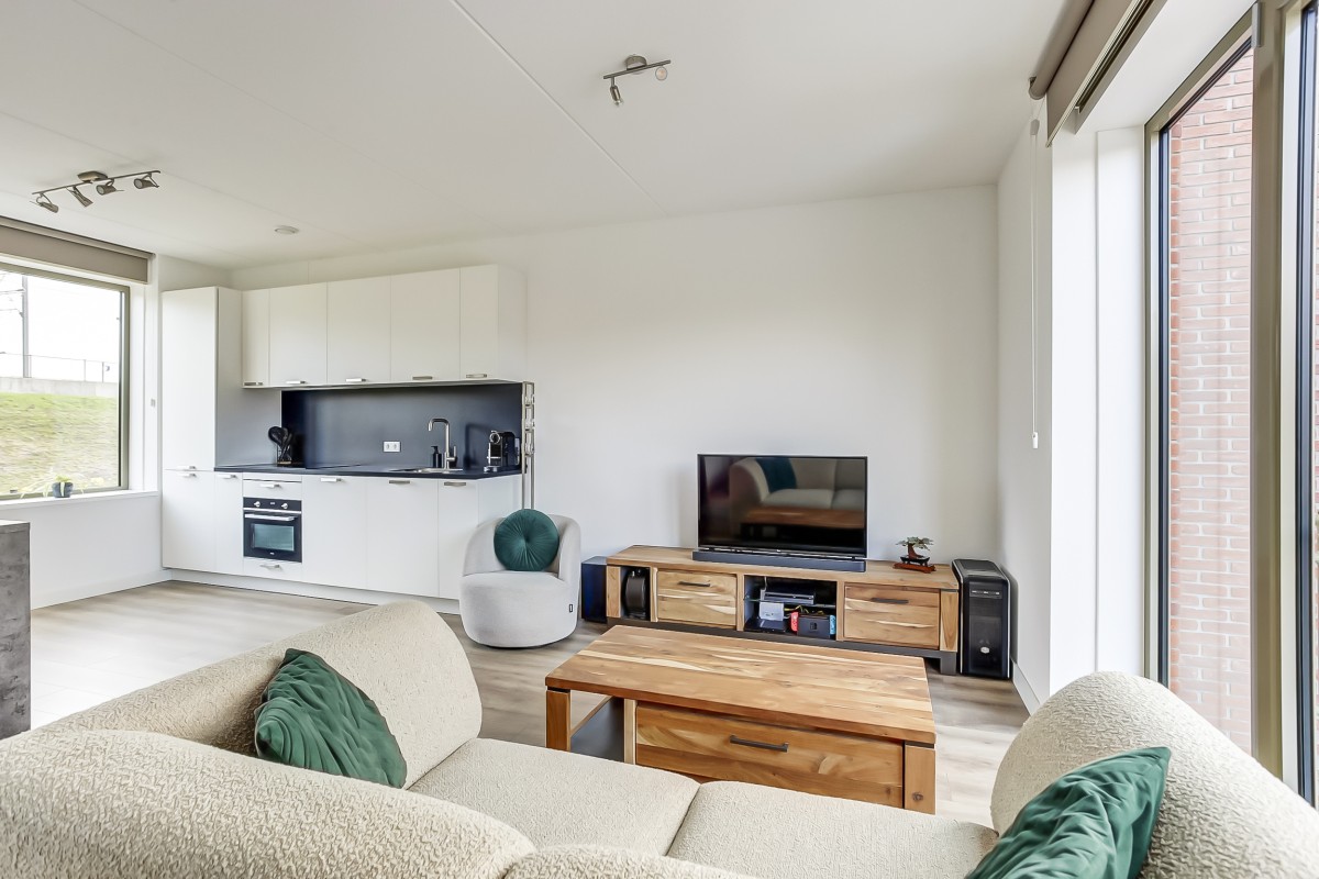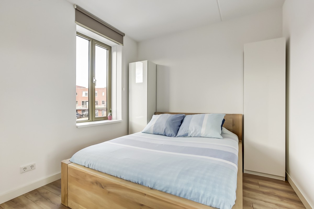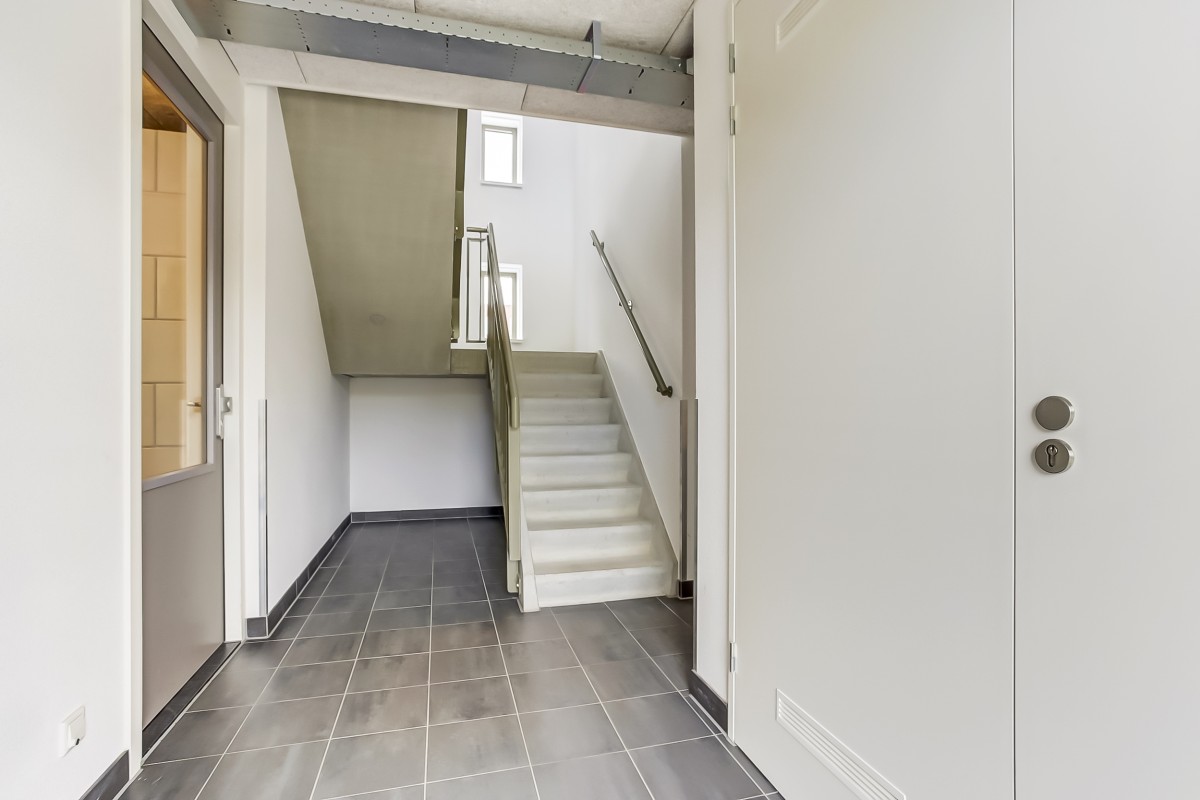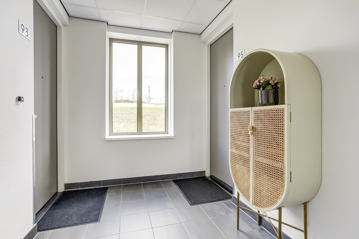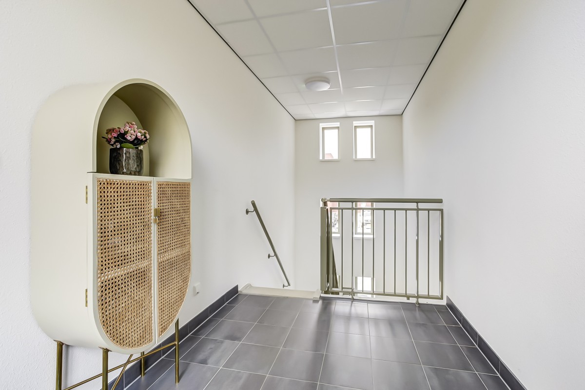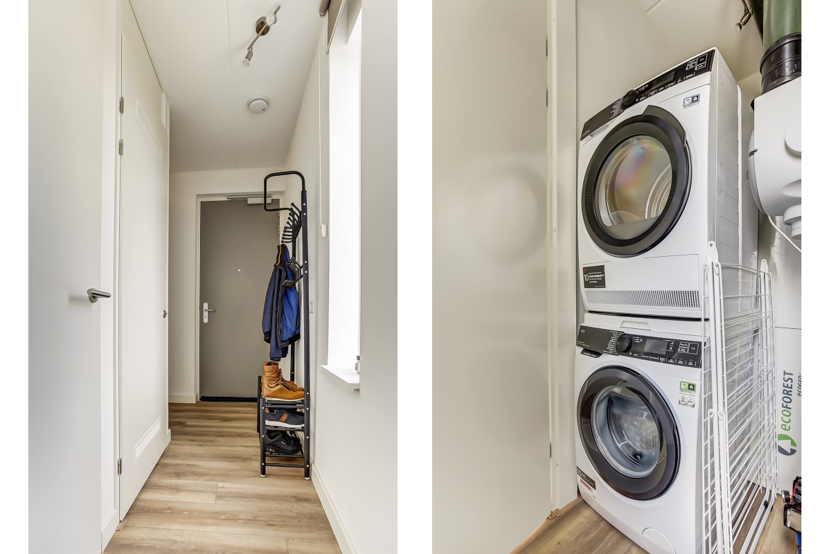 Lees verderEntree naar de hal met garderobe, uitgebreide meterkast en een ruime berging waar de warmtepomp, unit voor de vloerverwarming, omvormer voor de zonnepanelen, mv-unit en aansluiting voor de wasmachine gesitueerd zijn. De badkamer is voorzien van moderne betegeling, een hangcloset, inloopdouche met glazen wand en wastafel met meubel. De woonkamer betreft een open ruimte met frans balkon en uitzicht over het binnenterrein alsmede groen voorziening aan de voorzijde van het complex. Deze open ruimte biedt tevens een ruim slaapgedeelte. De luxe keuken is in moderne kleurstelling uitgevoerd en voorzien van een ingebouwde combimagnetron, inductiekookplaat met inbouw-afzuiging, vaatwasser, apothekerskast en koel-/vriescombinatie. De studio is volledig voorzien van een comfortabele vloerverwarming en op de badkamer na gecombineerd met een moderne laminaatvloer.
