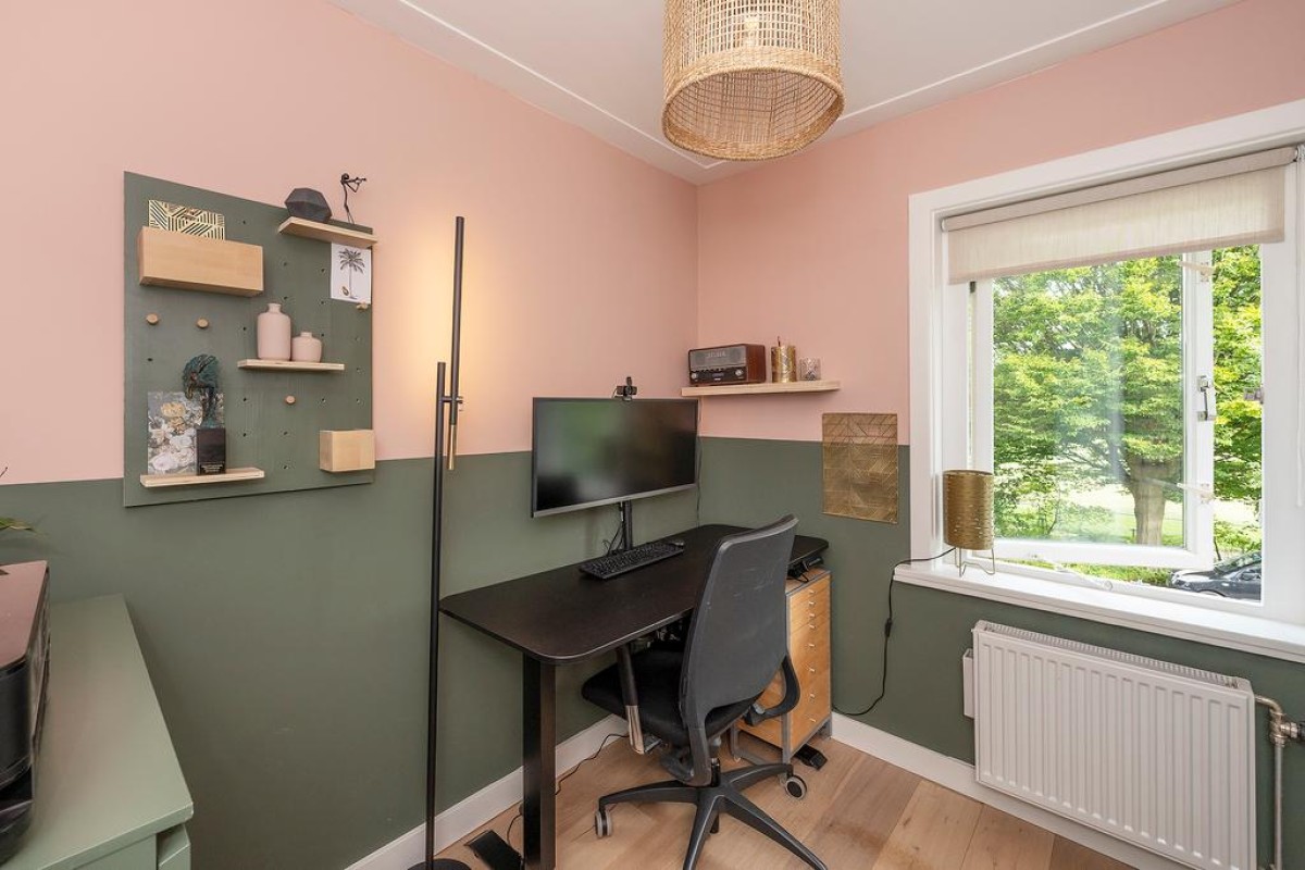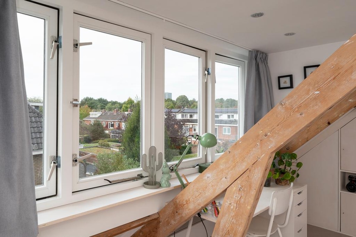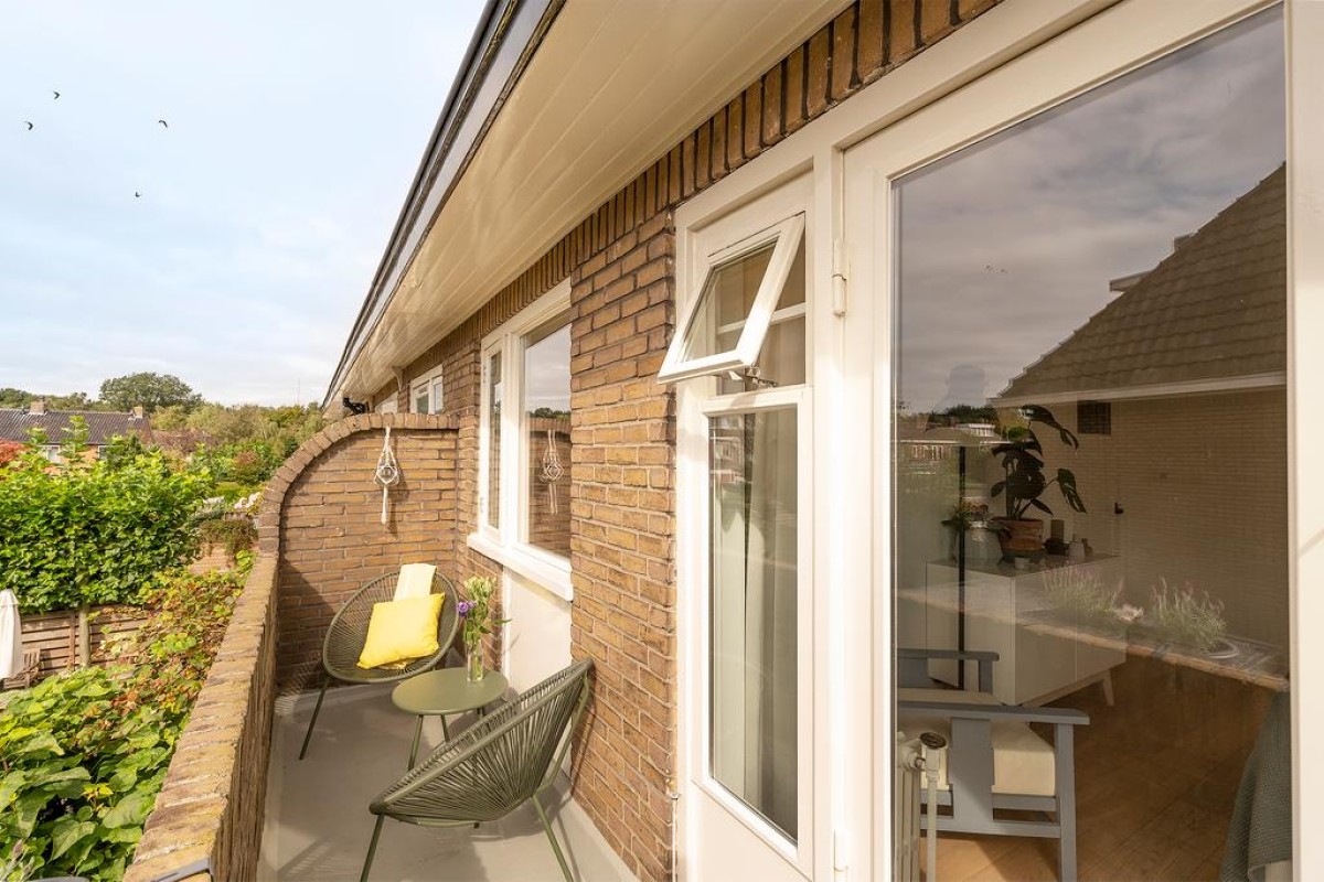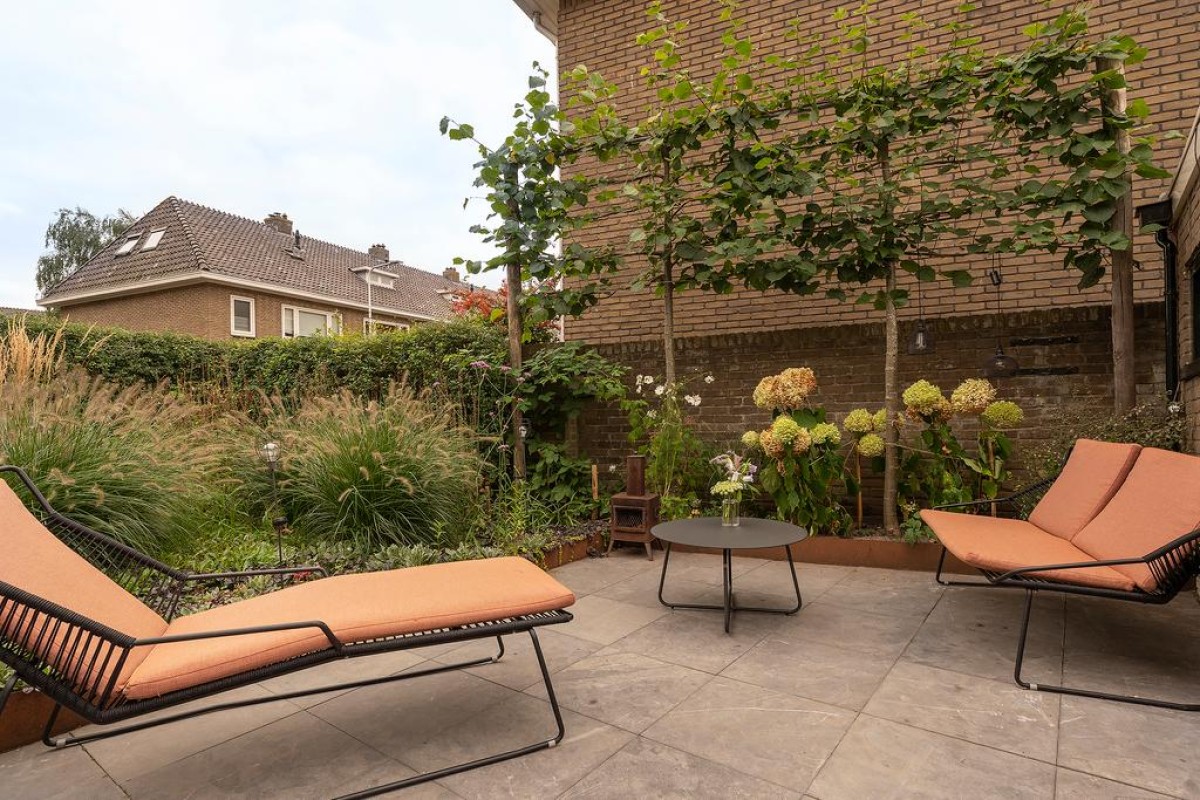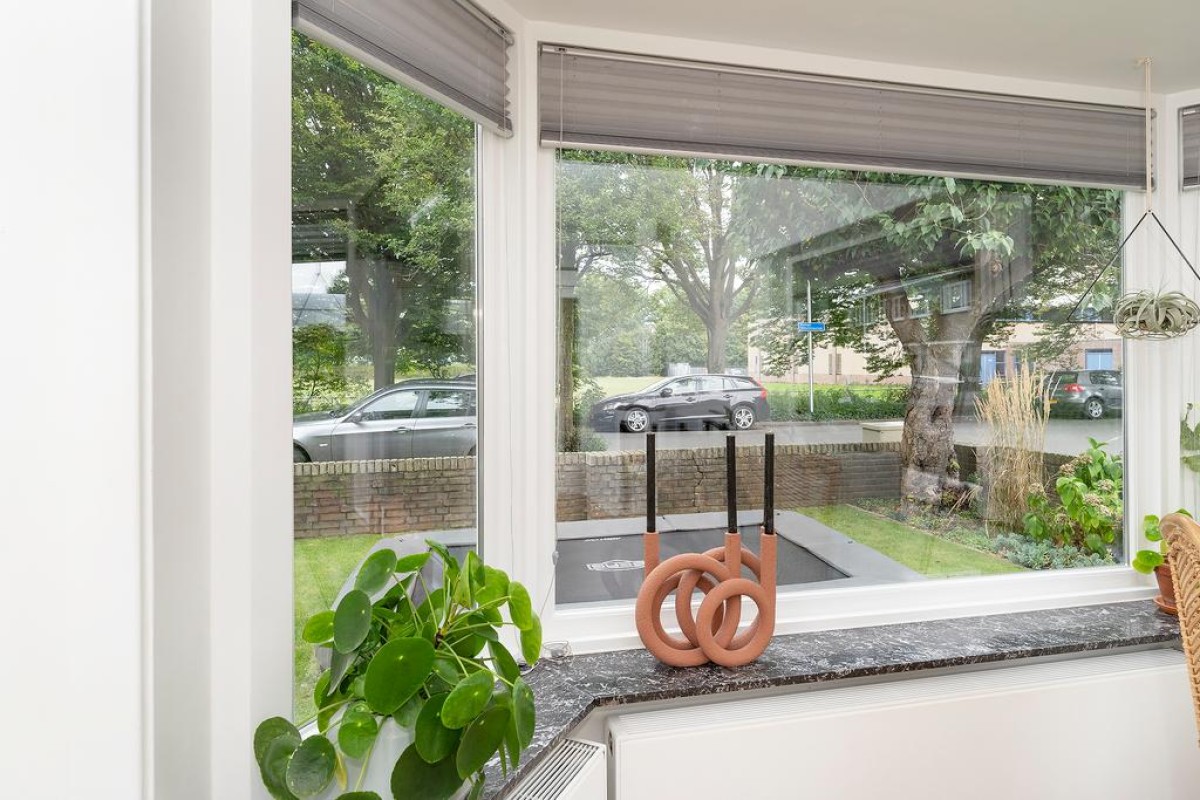 In de recent aangelegde tuin staat een vrijstaande stenen berging, een houtopslag, ruimte voor containers en een praktische fietsenberging met een sedumdak en een stopcontact voor het eventueel opladen van uw elektrische auto. Aan de overkant van de straat is geen bebouwing waardoor je vanuit de erker een vrij uitzicht hebt.