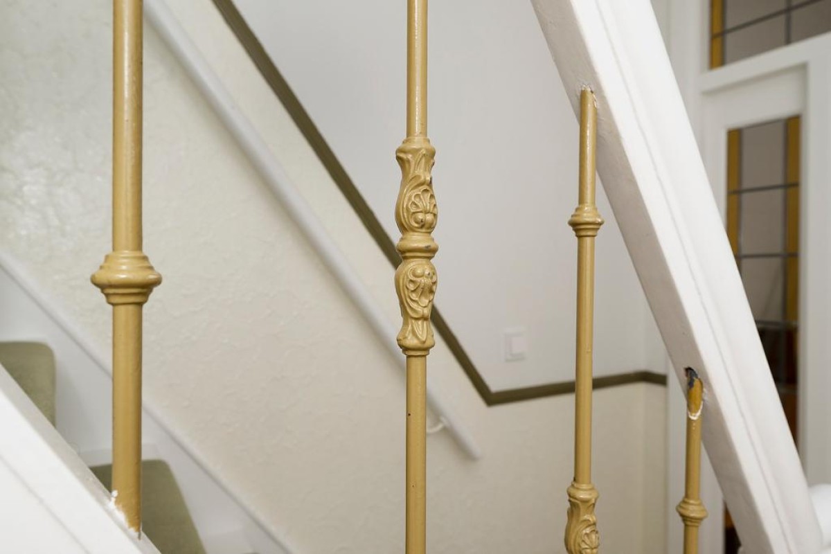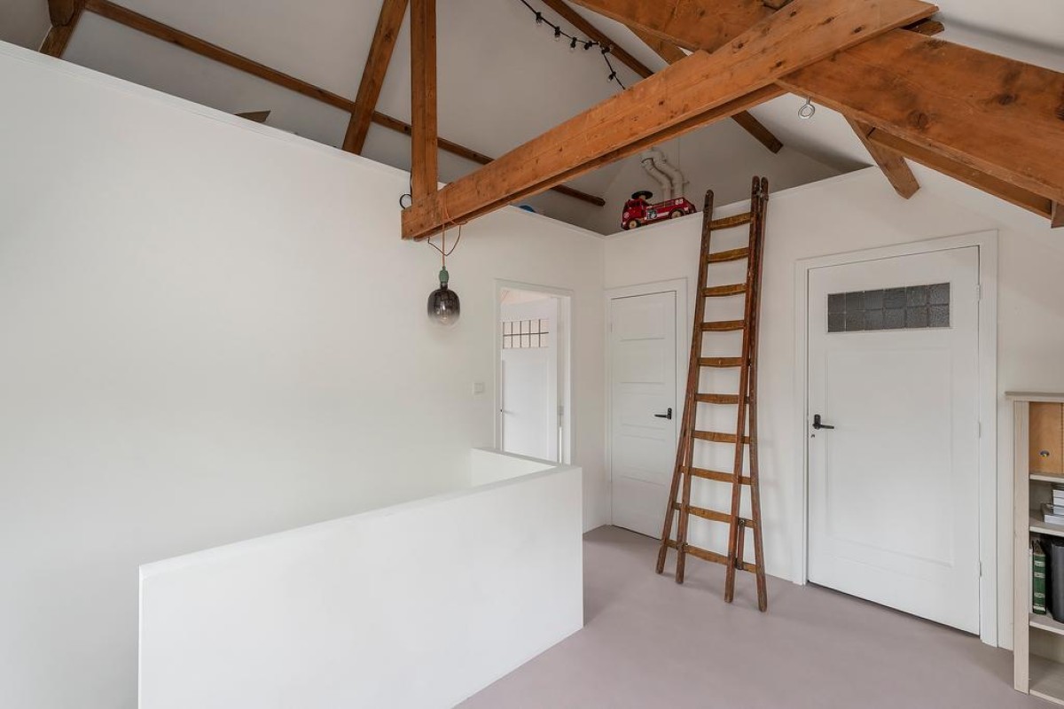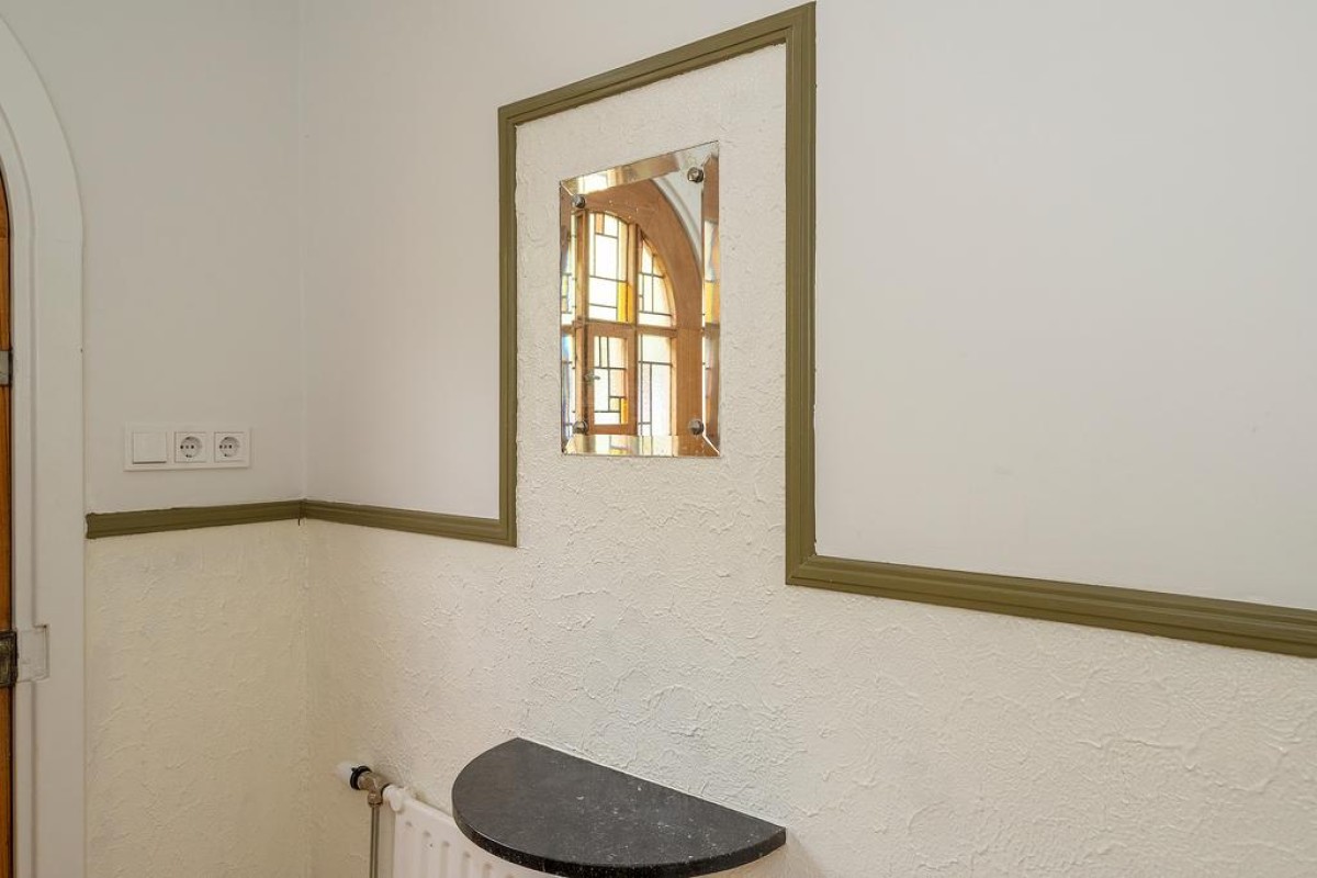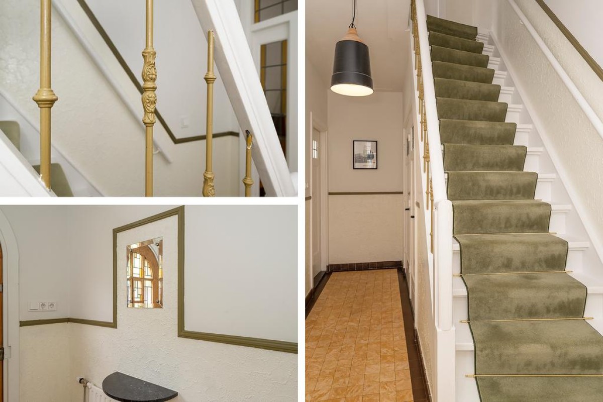 Lees verderIn de hal liggen nog de originele tegels en daarnaast is in de hal en trapopgang het betonemaille nog aanwezig.