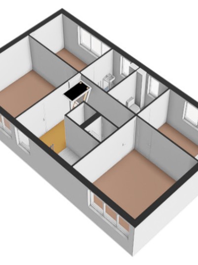 Begane grond: entree, hal met meterkast, kelderkast en trapopgang. Deze verdieping is voorzien van 4 kamers en 2 badkamers. De badkamers zijn voorzien van een douche, wastafel en toilet.