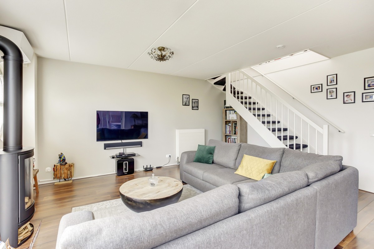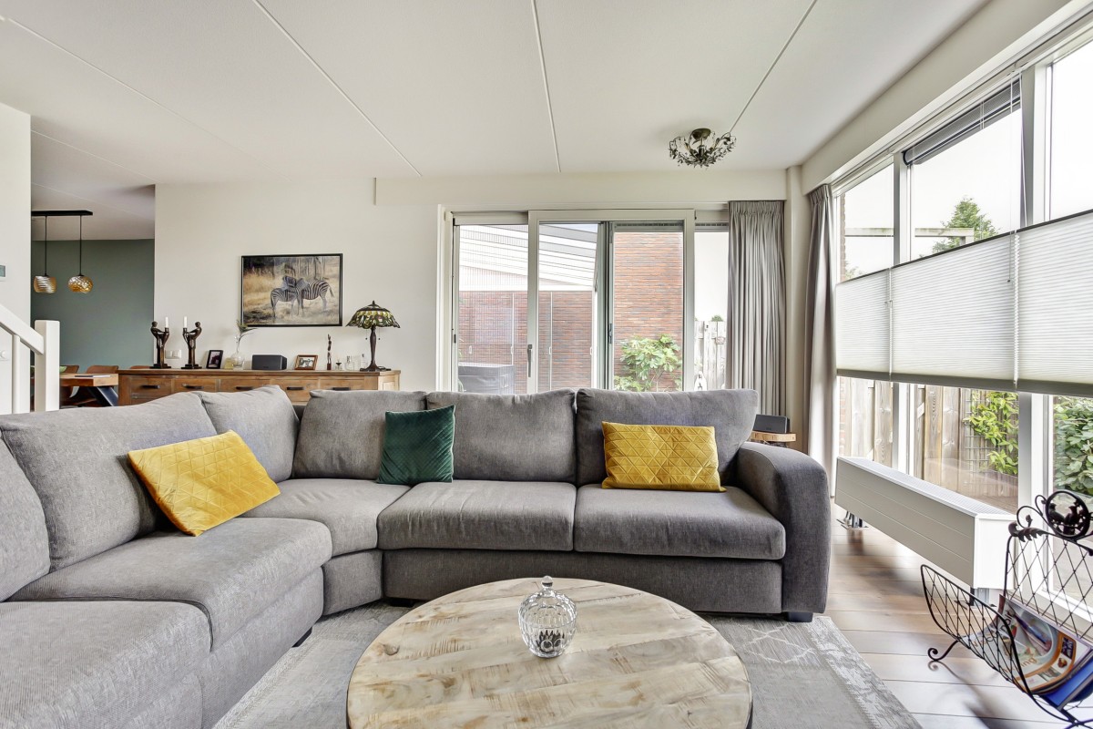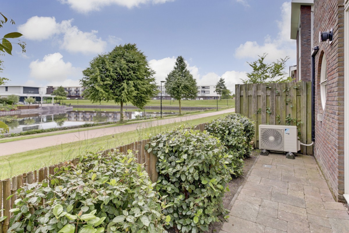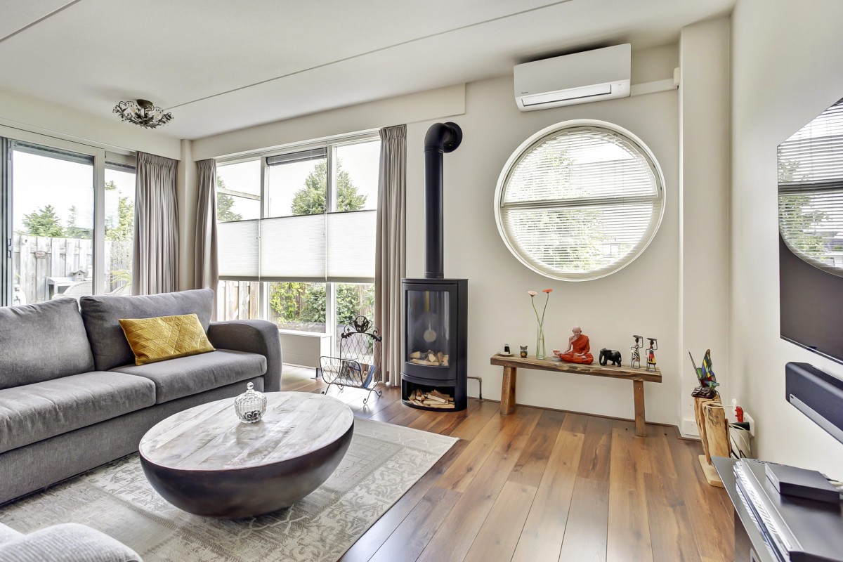 Vanuit de hal kom je in de luxe moderne open keuken met aangrenzend de eethoek en doorgang naar de woonkamer. De keuken is voorzien van veel kastruimte en beschikt over een ingebouwde koel/vriescombinatie, hoge druk stoom oven, vaatwasser, combimagnetron, 5 pits gas-op-glas kookplaat en een rvs afzuigkap en een loopdeur naar de tuin. De tuingerichte woonkamer is ruim van opzet en heerlijk licht door de grote raampartijen en geeft een prachtig blijvend vrij uitzicht over groen en water. De woonkamer is voorzien van een airconditioning, een vaste trap naar de etage en een schuifpui naar het terras en de tuin.