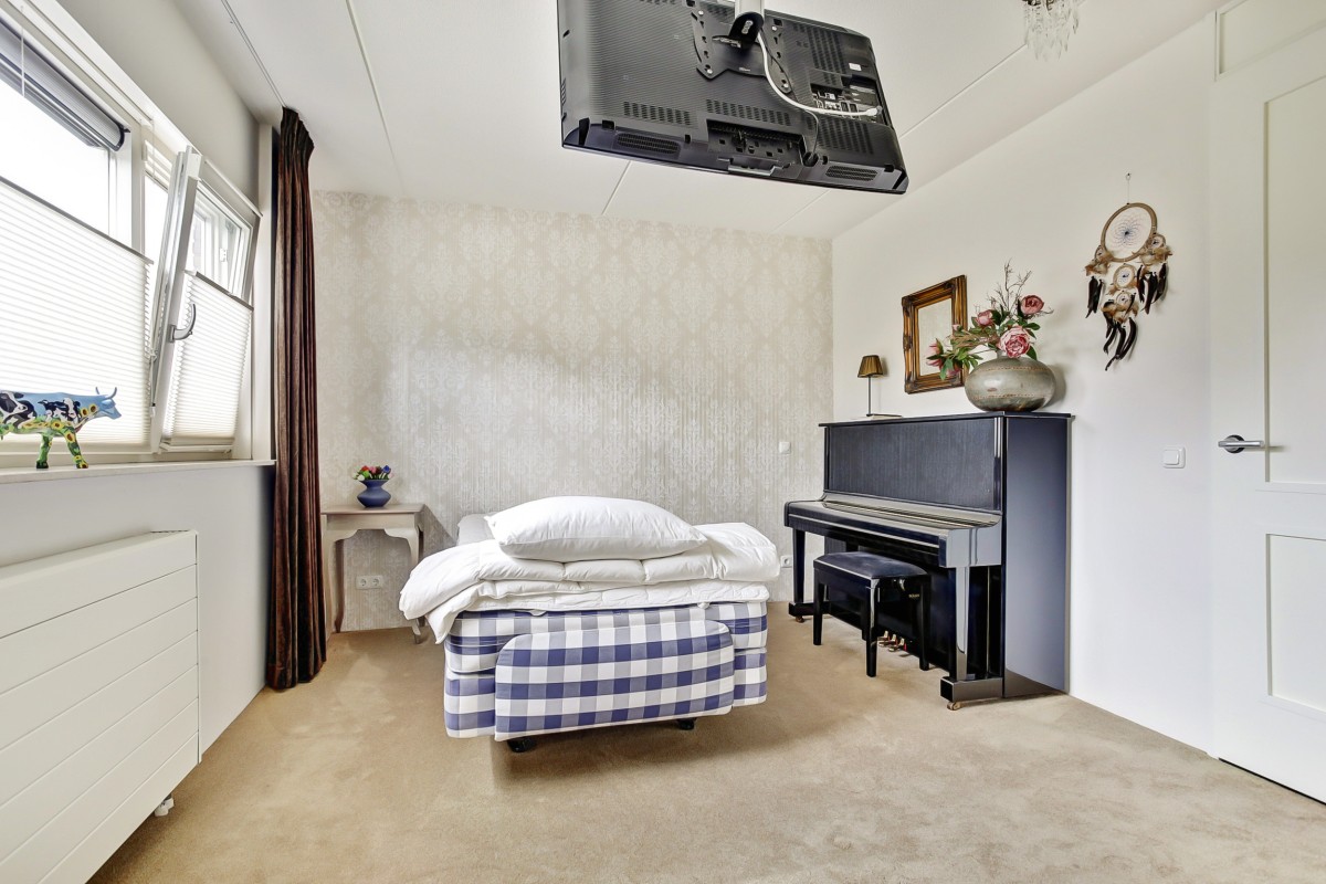 Eerste verdieping: vast trap naar de overloop met aansluitend een mooie slaapkamer en badkamer. De slaapkamer is gesitueerd aan de achterzijde van de woning en beschikt over fraai uitzicht over water. De badkamer is voorzien van een inloopdouche, 3e hangcloset, designradiatorwastafelmeubel.