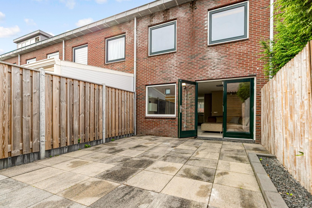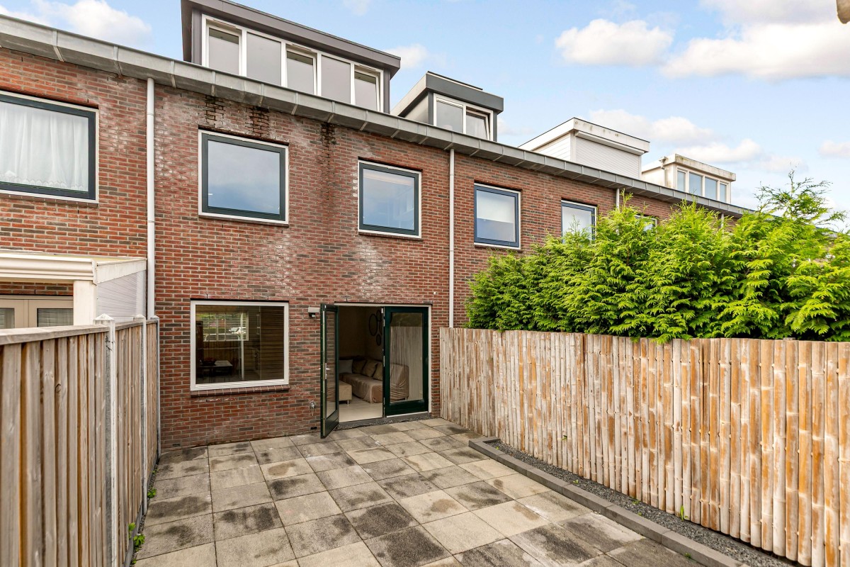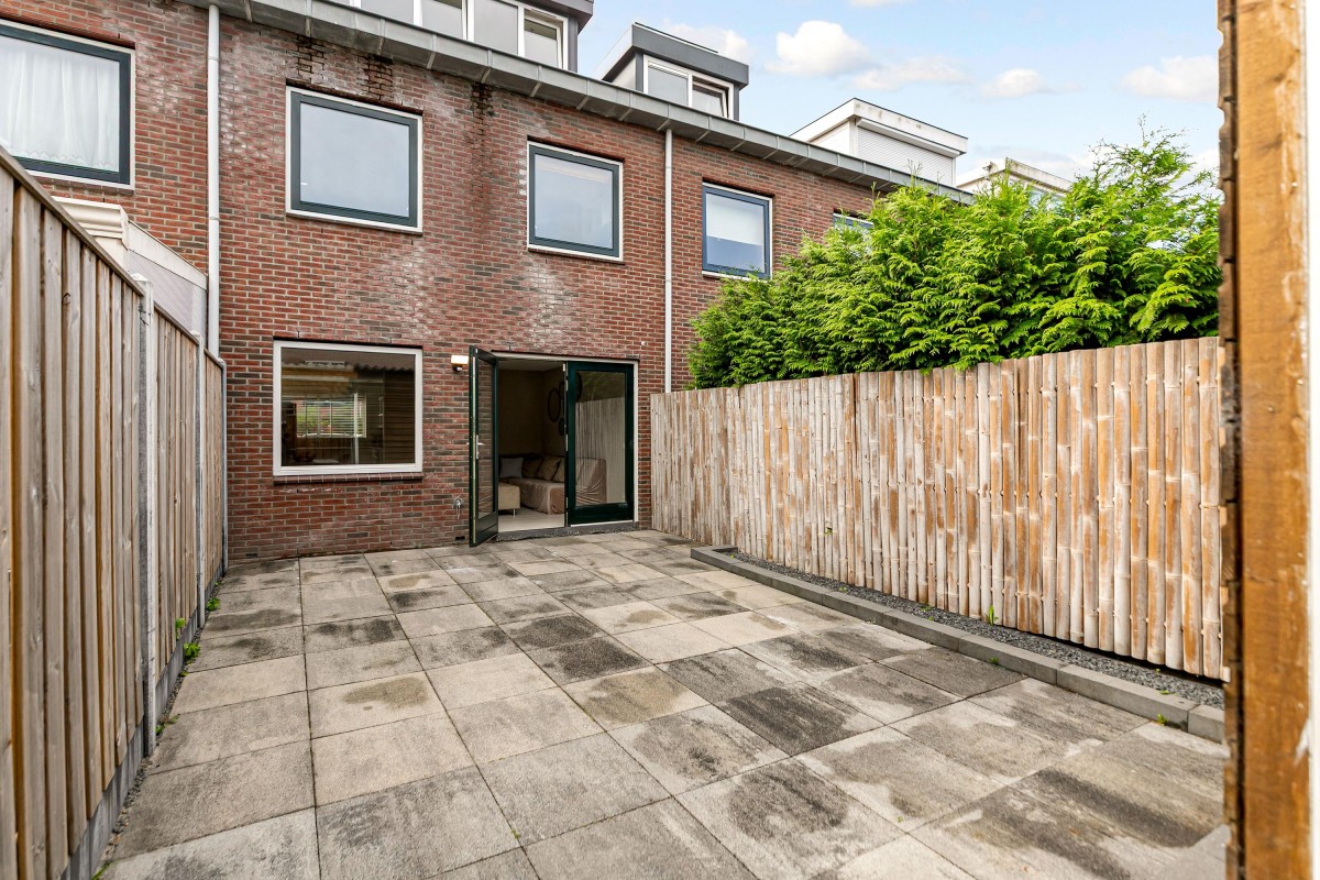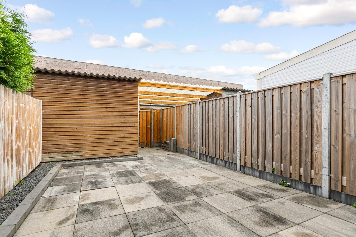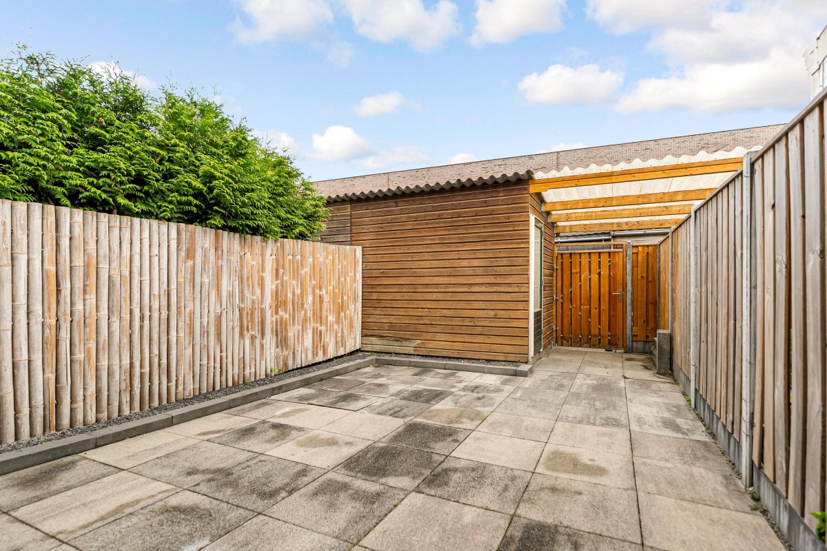 De fraai aangelegde en onderhoudsvriendelijke achtertuin ligt op het noordwesten, dus ideaal voor wie in de middag en avond ook nog van de zon wil genieten. De tuin is recent opnieuw ingericht met moderne hout/beton schuttingen en strakke tegels.