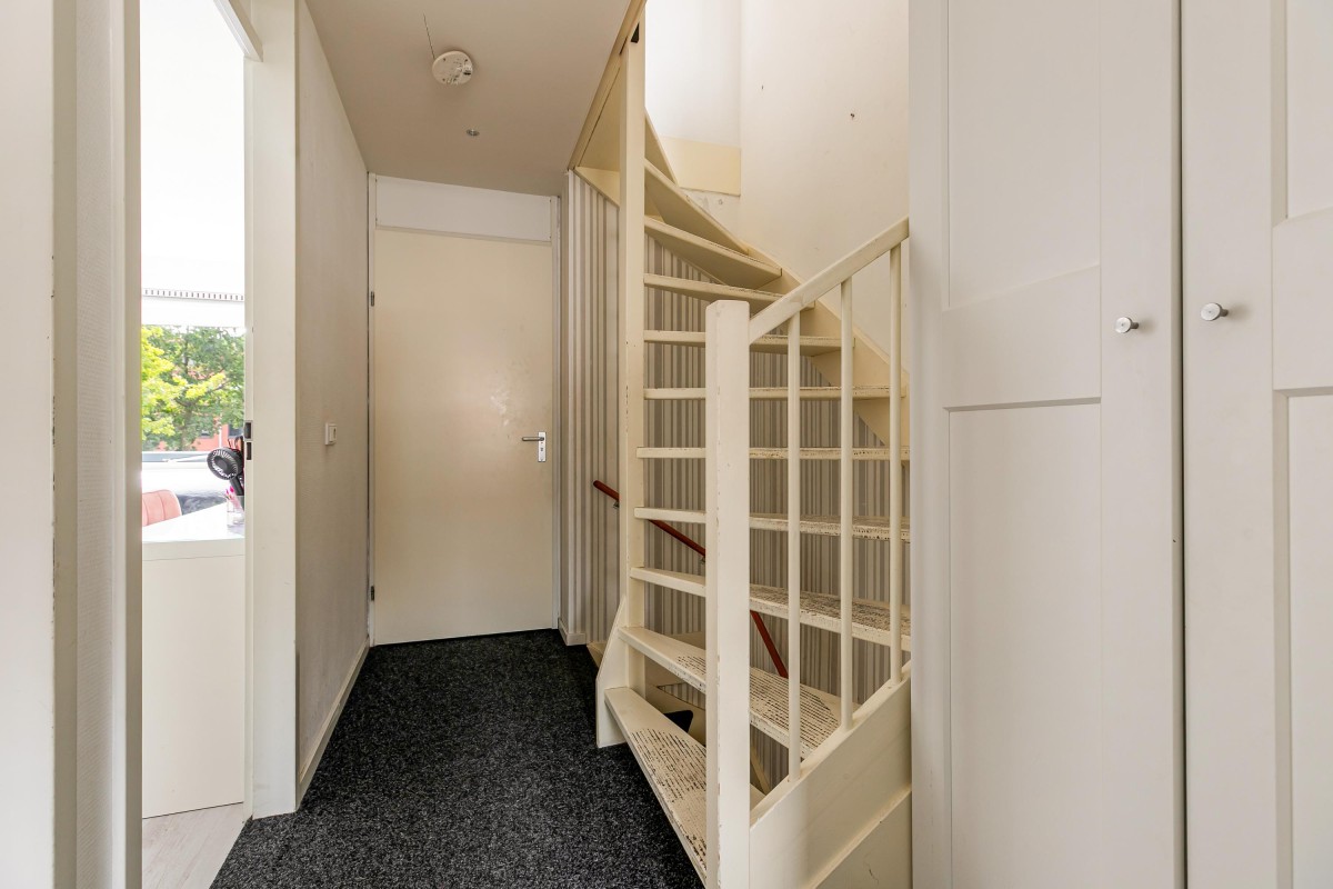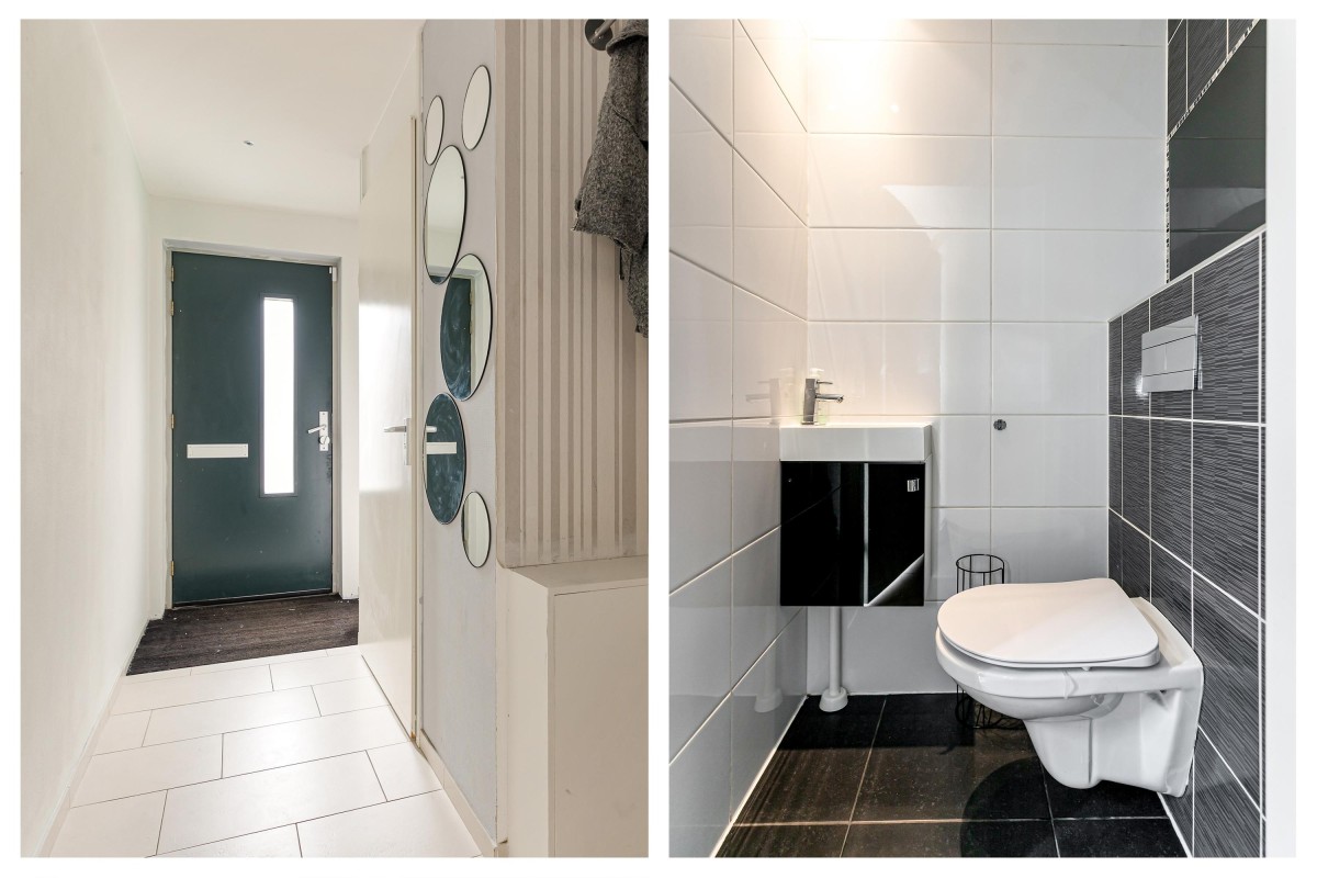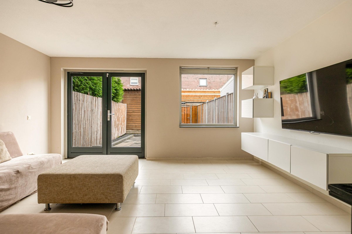 Je komt de woning binnen via de hal met een modern toilet en trapopgang. Vanuit hier betreed je de lichte en ruim opgezette woonkamer. Dankzij de grote raampartijen aan de voor- en achterzijde geniet je hier de hele dag van een prettige lichtinval.