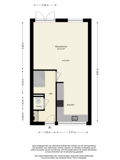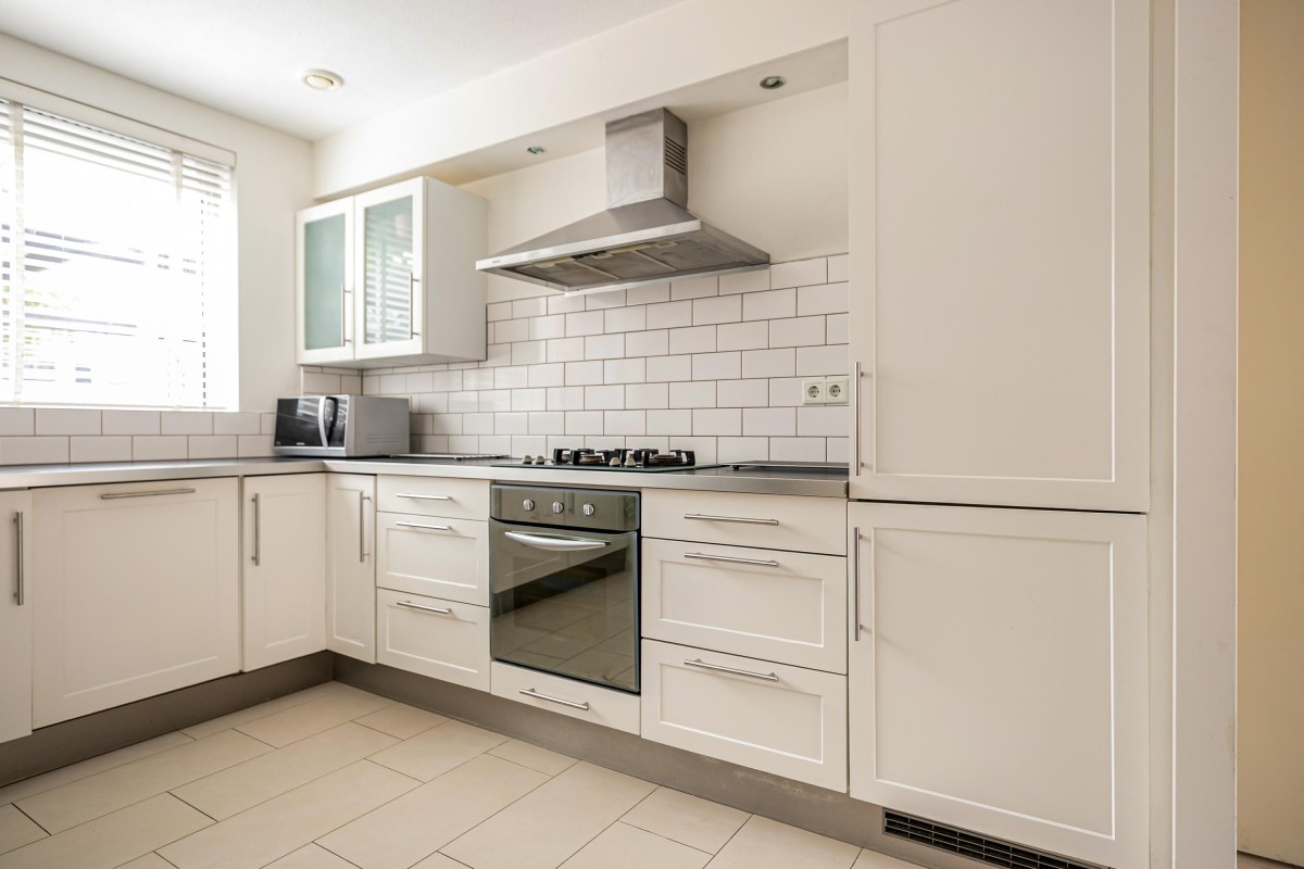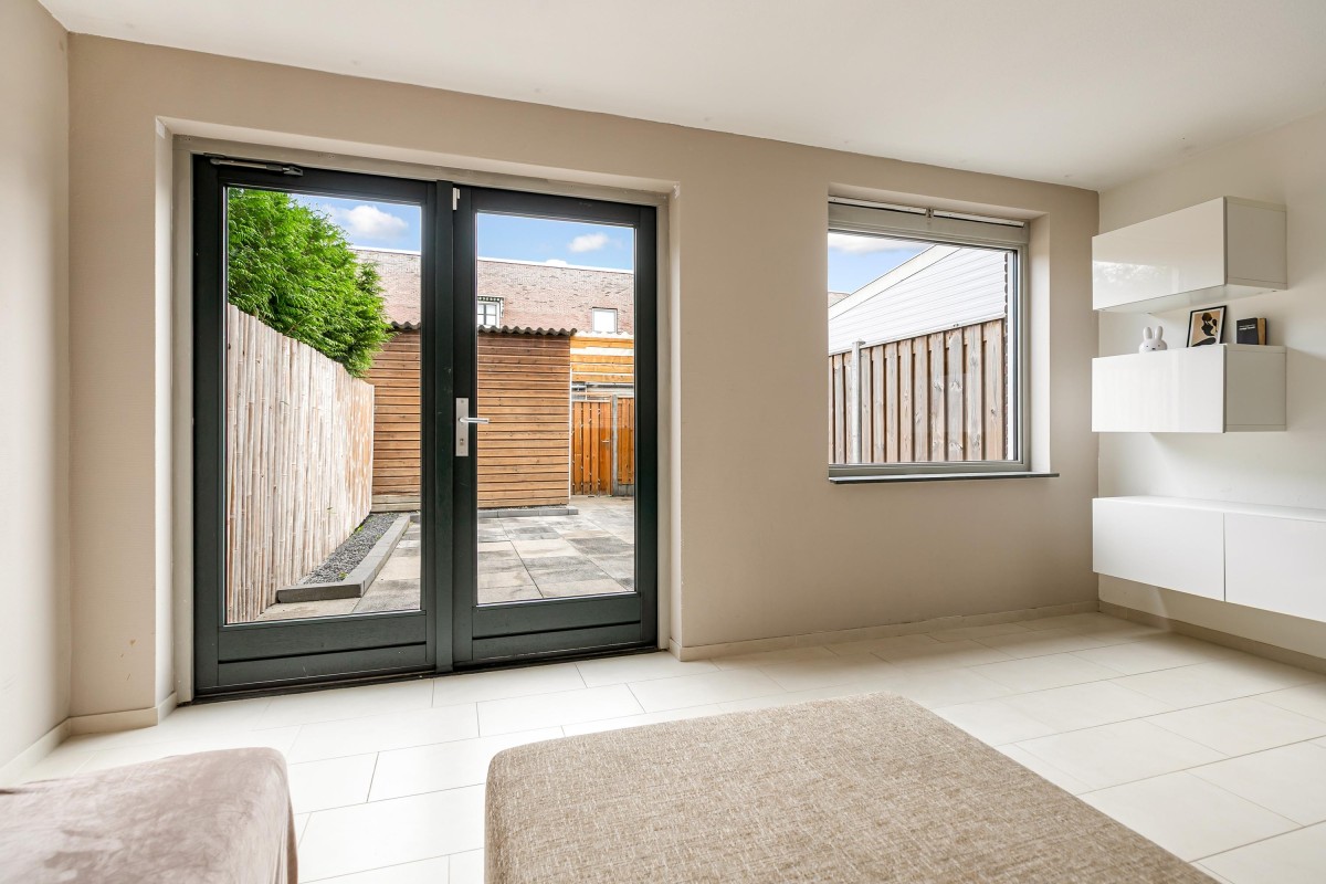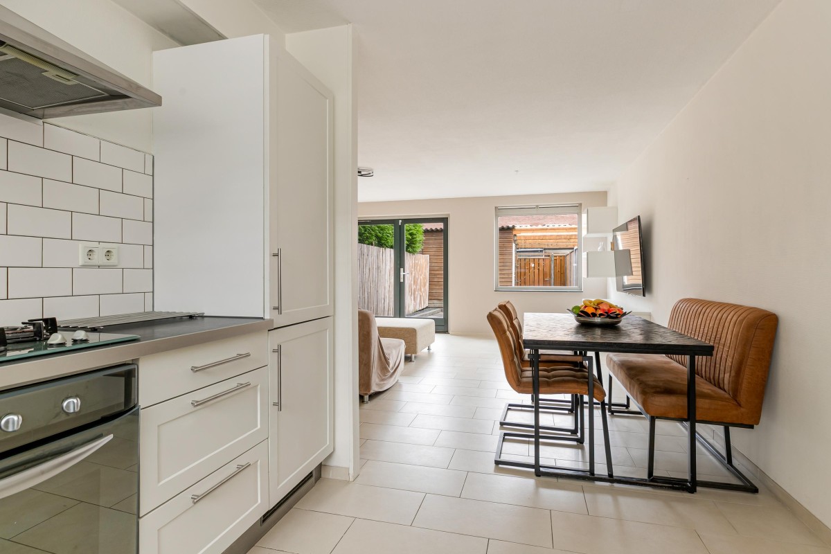 Dubbele openslaande deuren geven toegang tot de tuin. Aan de voorzijde bevindt zich de open keuken, voorzien van diverse inbouwapparatuur en een royale raampartij, koken met uitzicht!