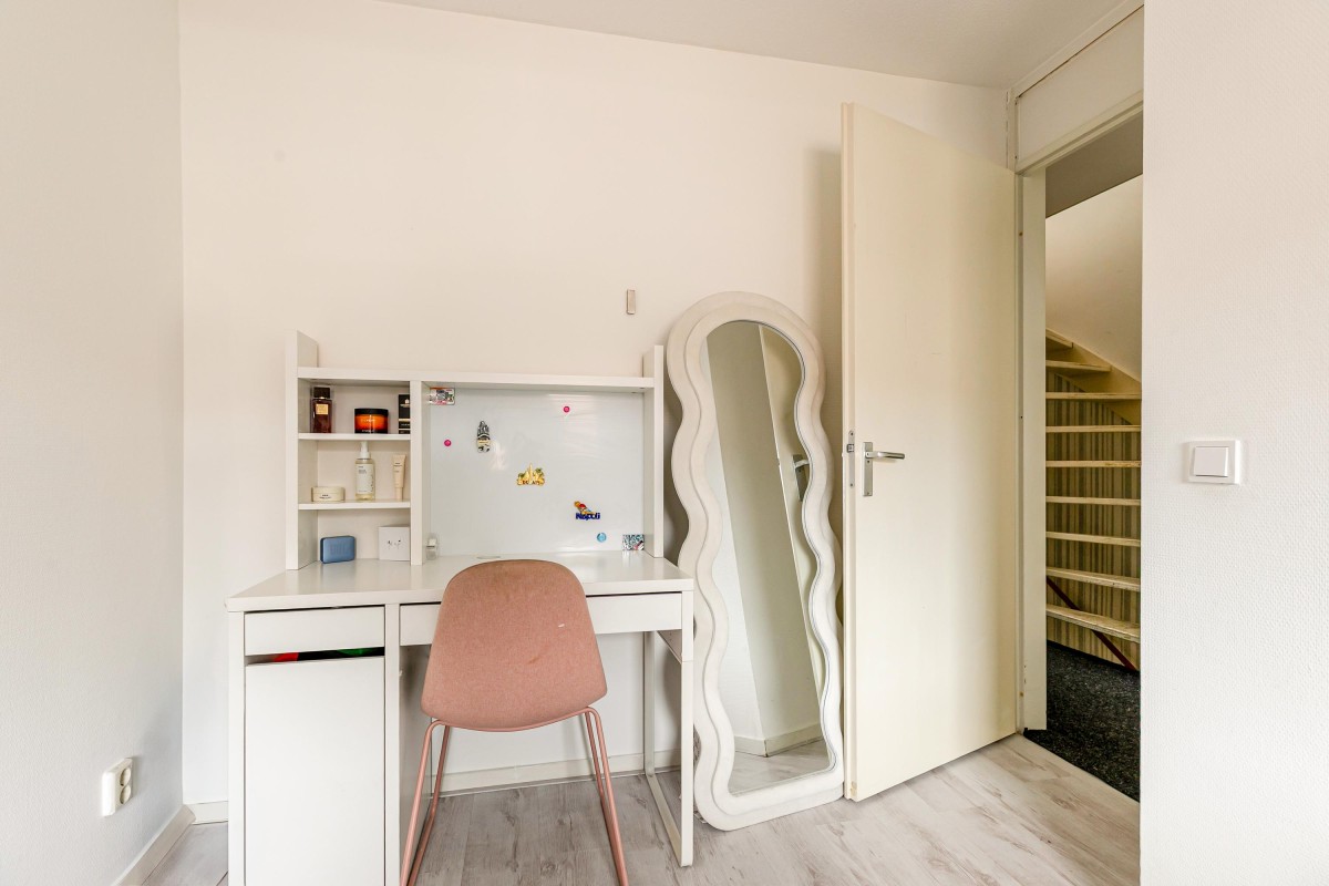 Op deze verdieping bevinden zich drie ruime slaapkamers en een moderne badkamer met een inloopdouche, wastafelmeubel en tweede toilet. Alle kamers zijn netjes afgewerkt en bieden voldoende ruimte voor een gezin of thuiswerkplek.