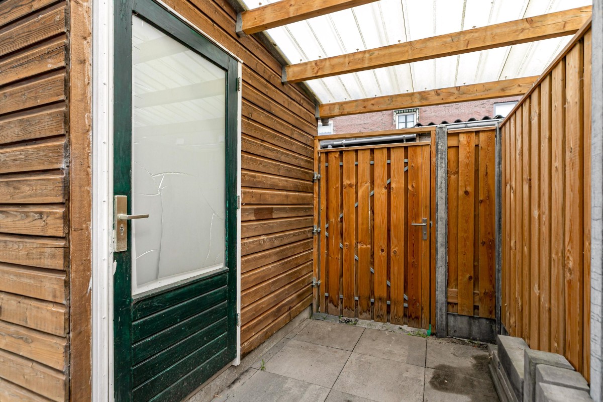 De vrijstaande berging biedt ruimte voor fietsen en gereedschap. Via de achterom is de tuin gemakkelijk bereikbaar.