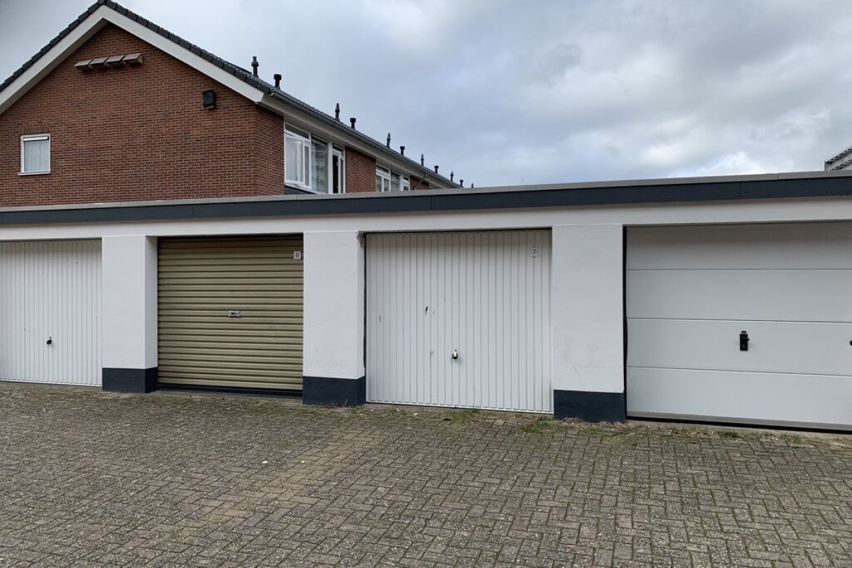 Nette garagebox met kanteldeur gelegen achter het appartementencomplex aan de Gombertstraat 73 t/m 107.