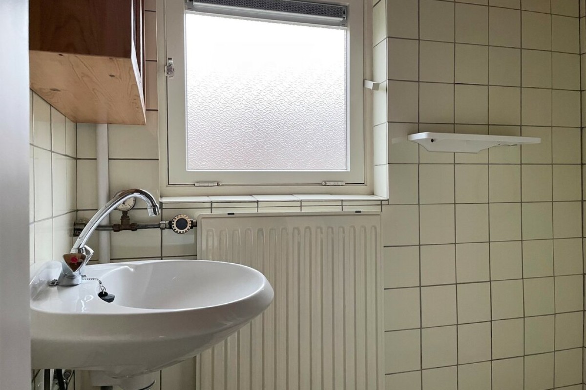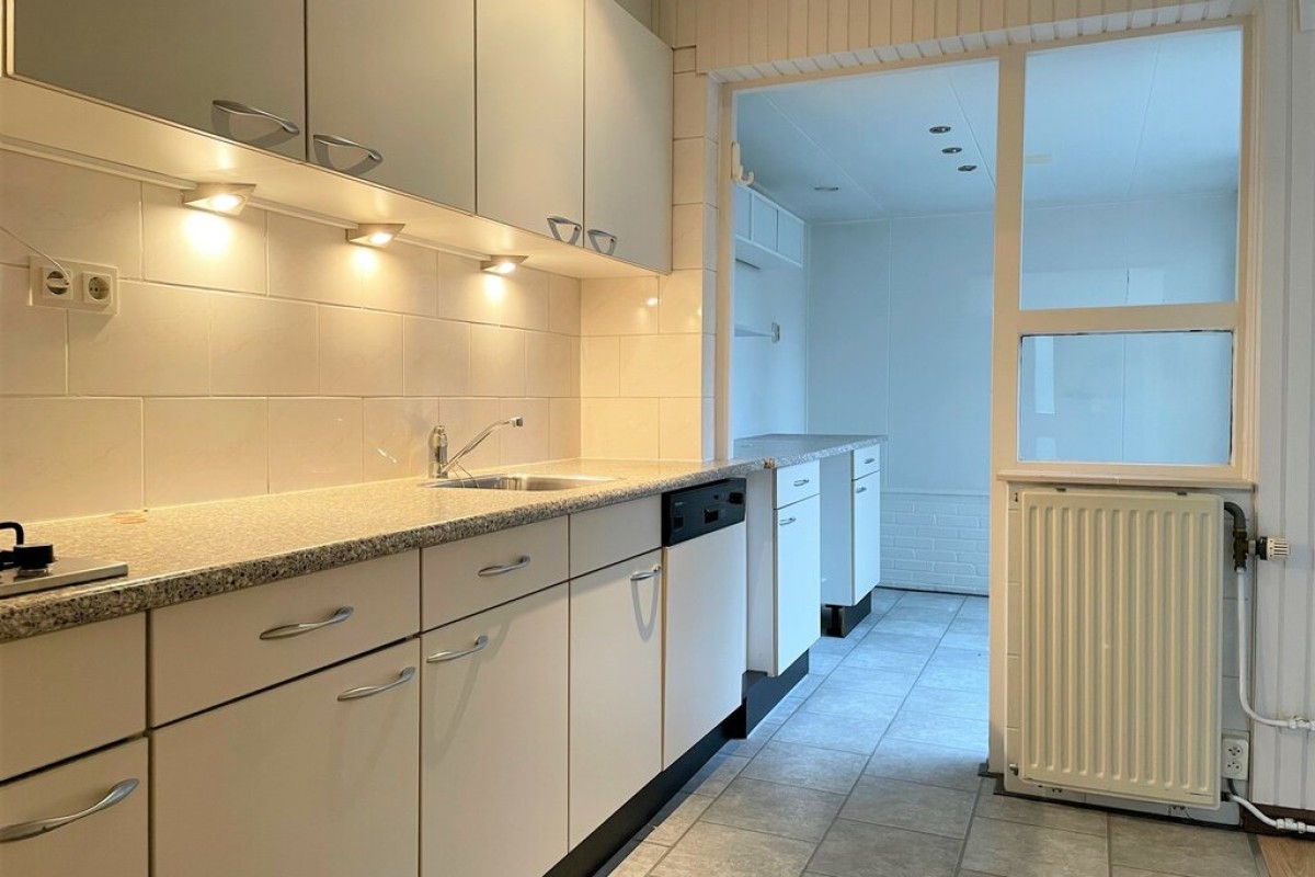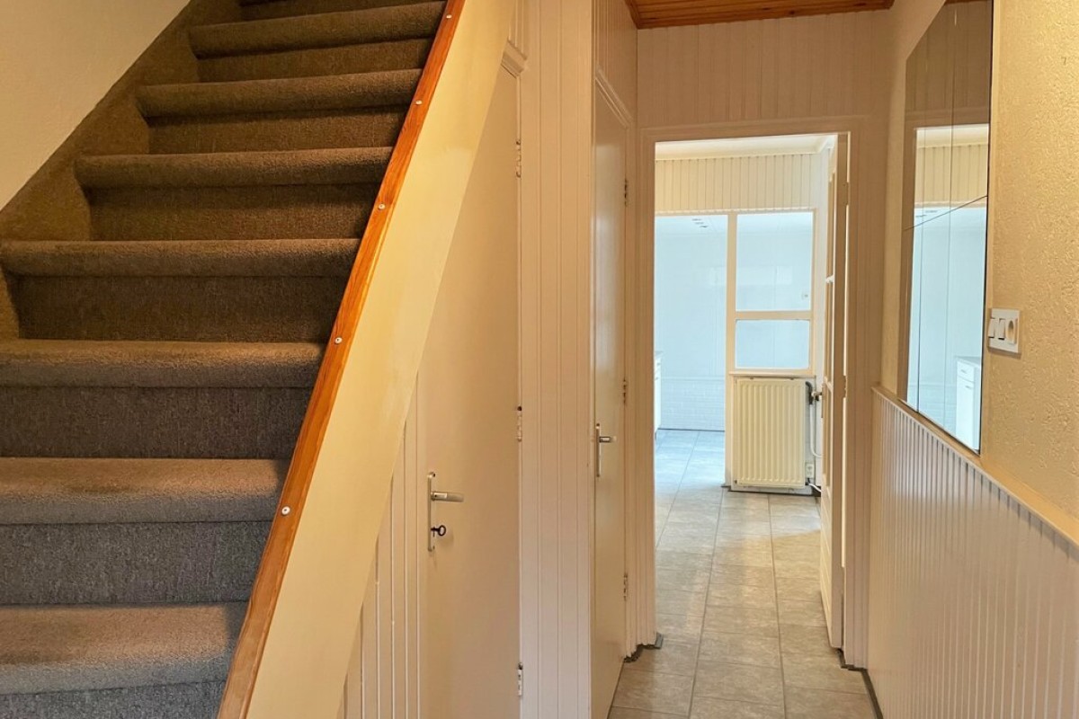 Entree, meterkast, trapopgang, doorgang naar de kelder, toilet, keuken. Via de keuken toegang tot de doorzonwoonkamer;