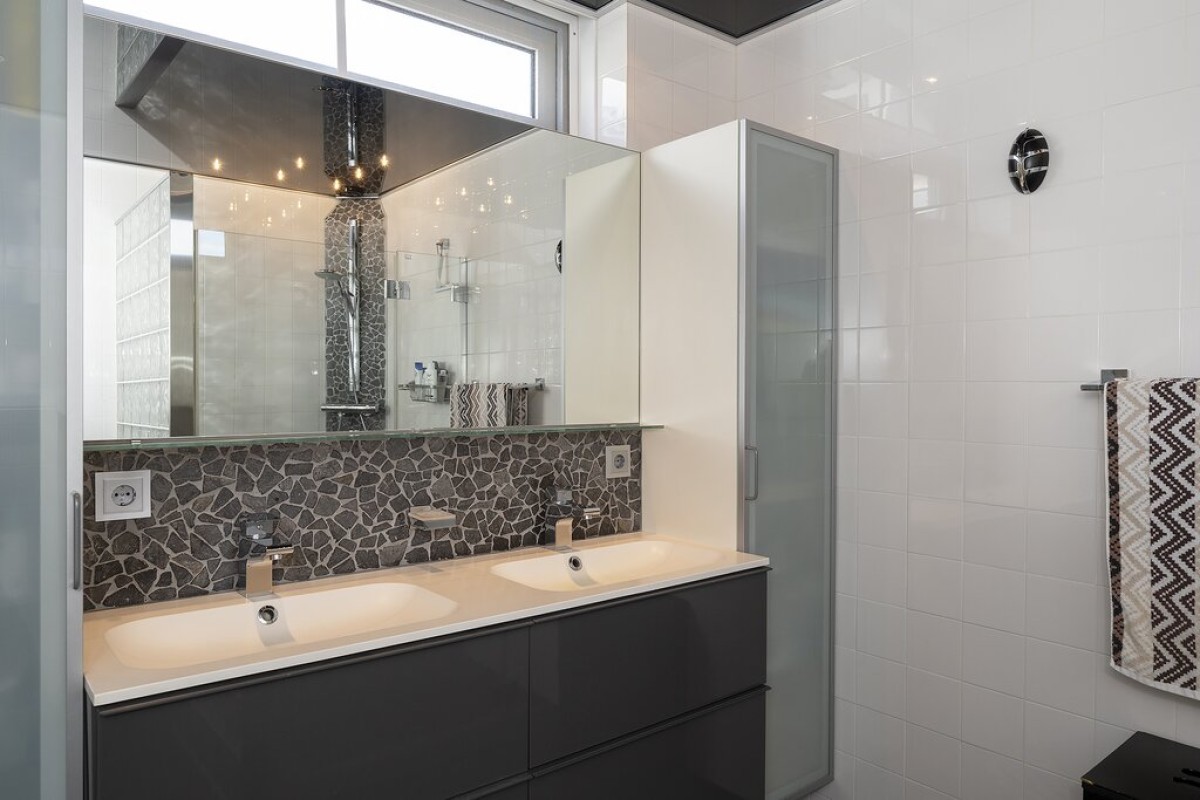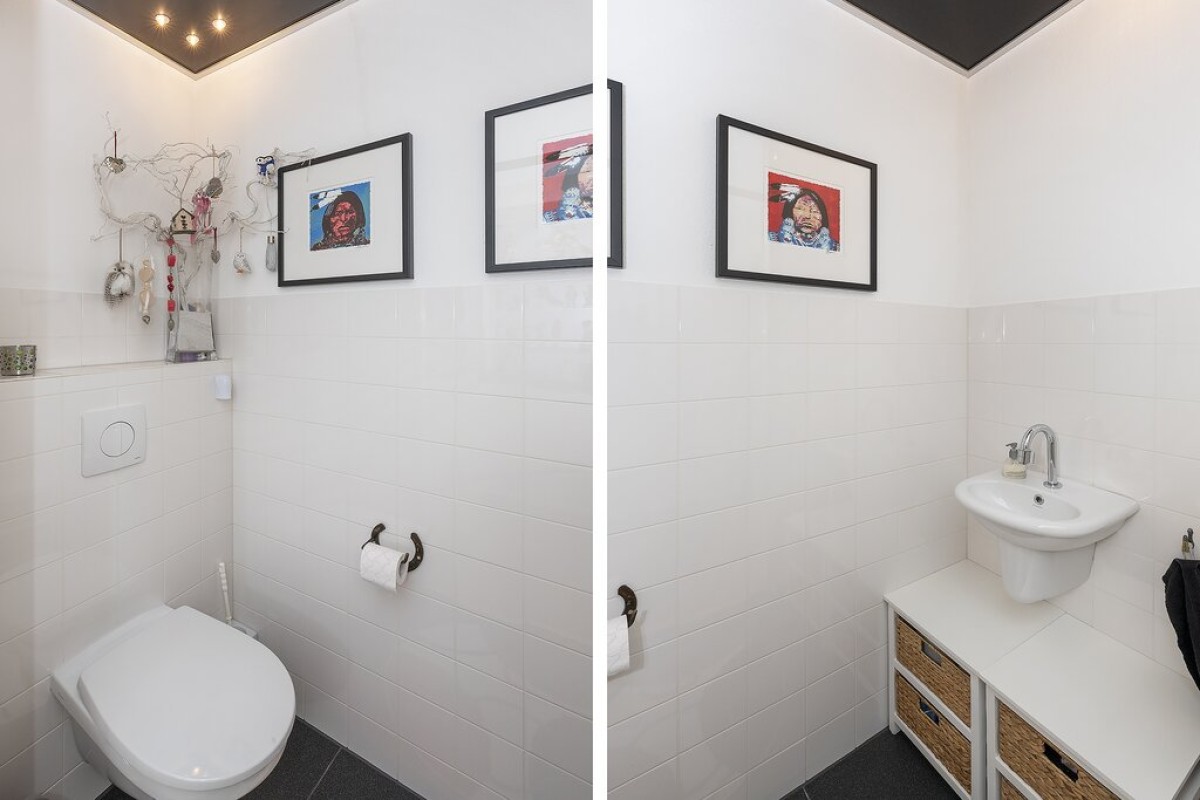 Via de voordeur komt u in de hal met meterkast, toilet, luxe uitgevoerde badkamer met wastafelmeubel voor twee wasbakken, inloopdouche en hangend toilet. Praktische berging met opstelling voor het witgoed en de c.v.-ketel.