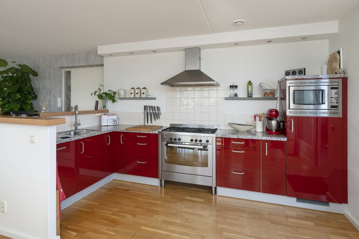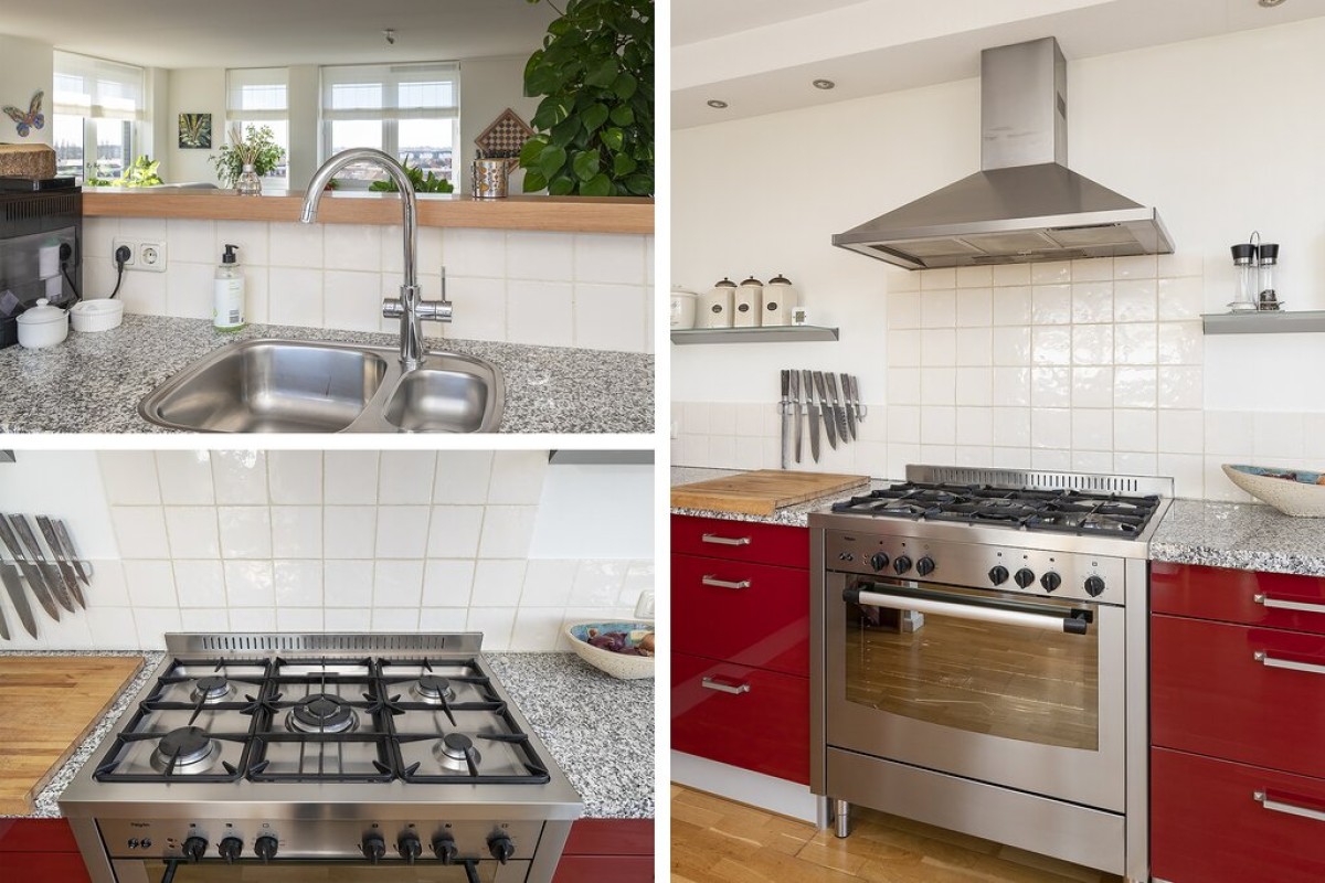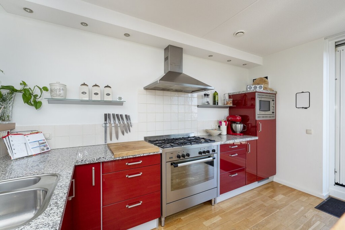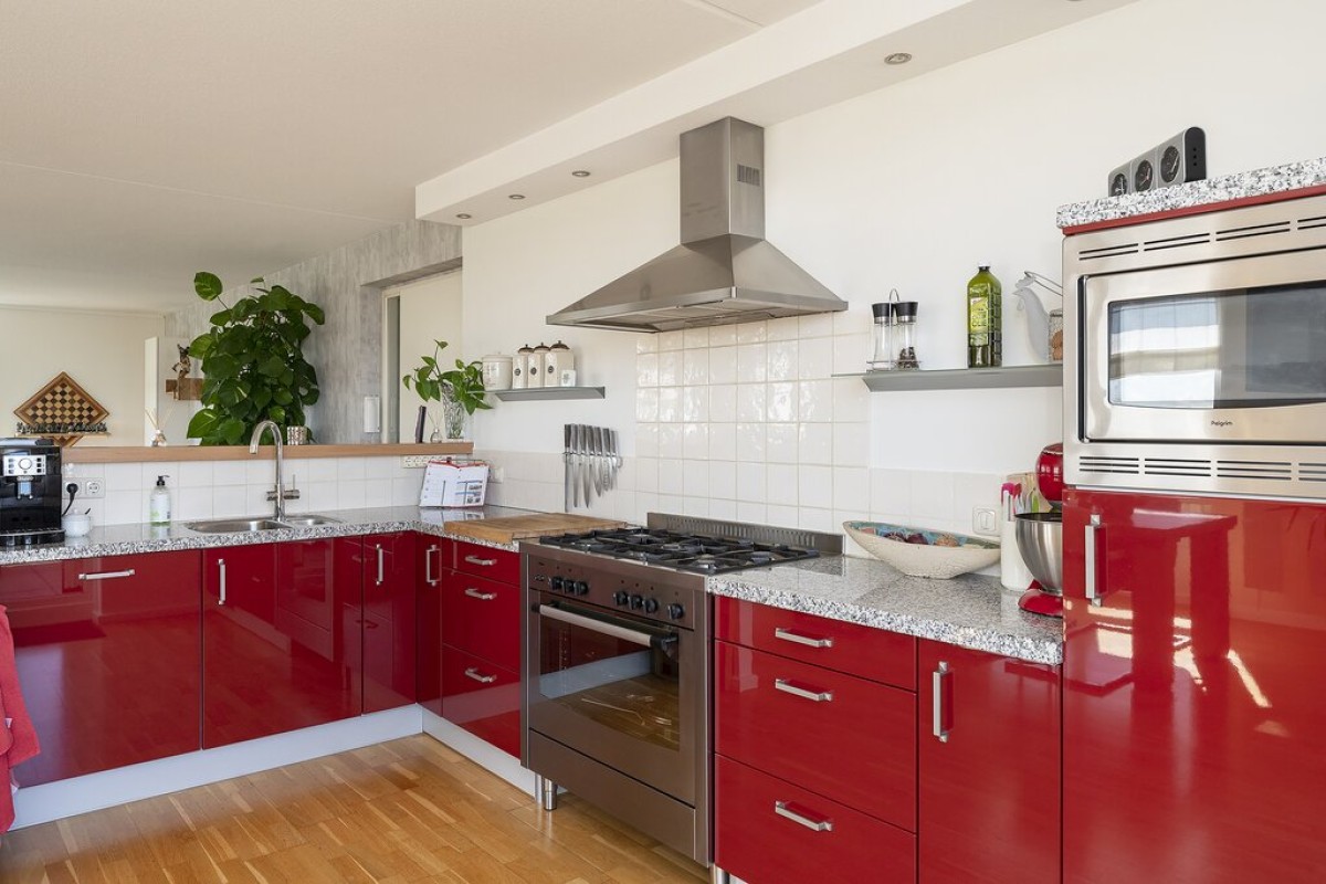 Vervolgens komt u in de riante living met veel lichtinval door de vele raampartijen en daardoor ook een vrij uitzicht. Aan de achterzijde bevindt zich de half open keuken in hoekopstelling voorzien van een 90 cm gasfornuis met oven, RVS afzuigschouw, koelkast, combimagnetron en uiteraard mag een vaatwasser niet ontbreken. Via de schuifpui bereikt u het zeer riante dakterras. Hier kunt u het vrije uitzicht en de vrijheid ervaren!