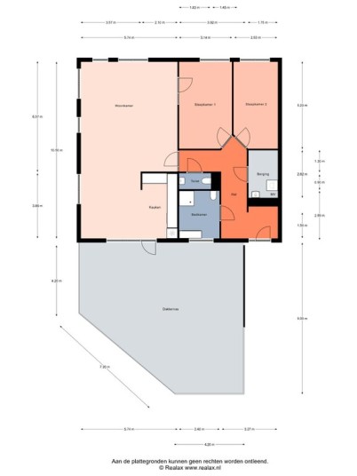 Lees verderTwee prima slaapkamers van respectievelijk ruim 13 m2 en 16 m2.