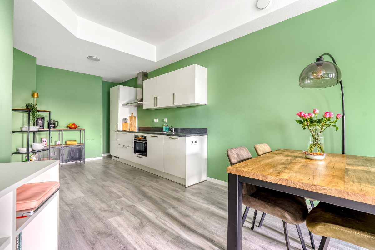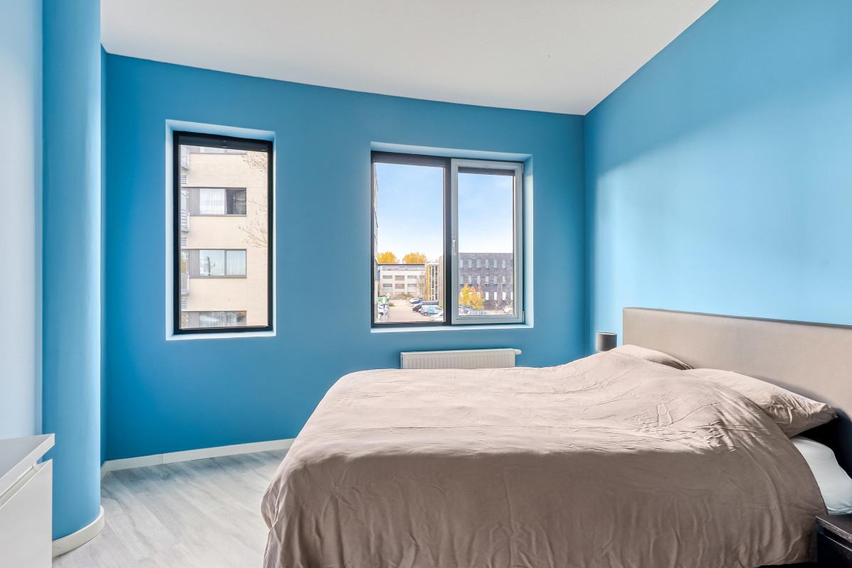 In de Muziekwijk van Almere stad is een voormalig kantoorpand verbouwd tot volledig appartementencomplex. Het appartement is gelegen op de tweede woonlaag en is voorzien van een ruime slaapkamer, nette laminaatvloer, nieuwe keuken en nieuwe badkamer voorzien van lichte betegeling tot aan het plafond.