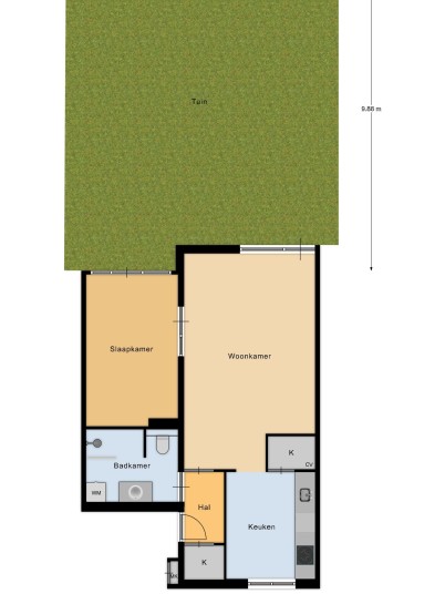 Lees verderZodra je binnenstapt, betreed je de lichte woonkamer, die direct toegang biedt tot de ruime tuin van circa 78 m², gelegen op het zuidwesten. Vanuit de woonkamer is er een open verbinding met de keuken, die is uitgerust met een inductiekookplaat, vaatwasser, koelkast, vriezer, afzuigkap en een cv-kast met voldoende opbergruimte. Aan de achterzijde van het appartement vindt u de royale slaapkamer, die ook toegang heeft tot de tuin. De badkamer is praktisch ingericht met een douche, toilet, wastafel en meubel, en heeft bovendien een aansluiting voor de wasmachine. Op de begane grond is een aparte berging van circa 5 m², ideaal voor extra opslag.