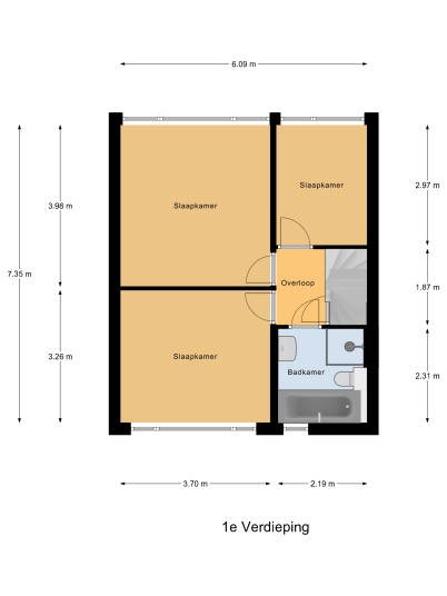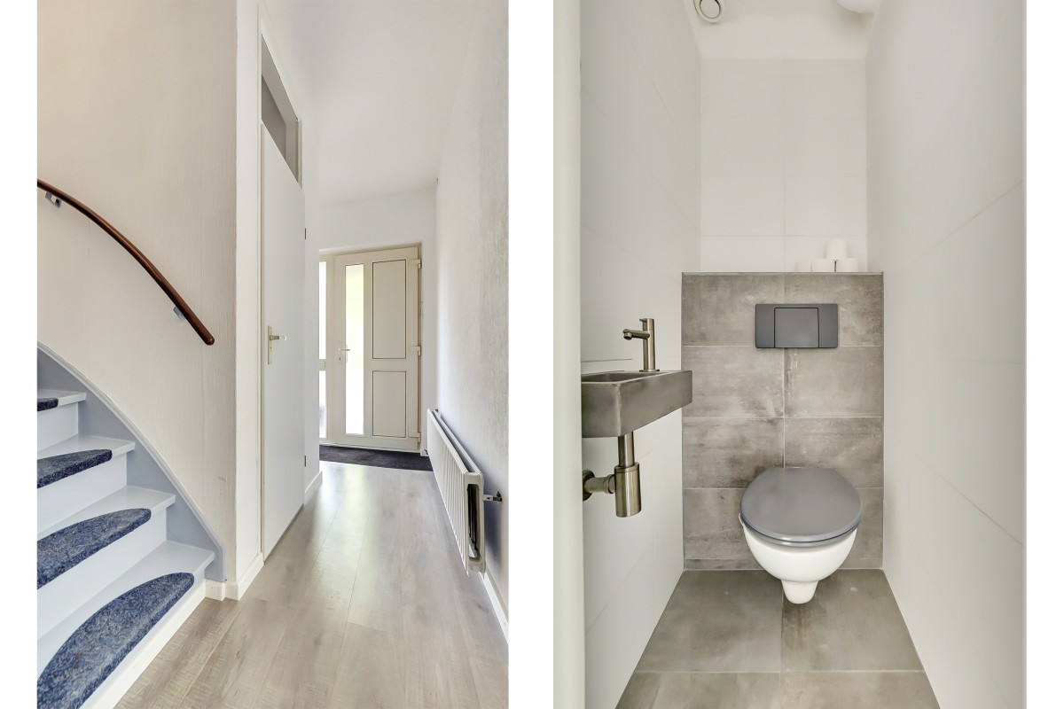 Overloop met toegang tot drie slaapkamers, allen voorzien van een laminaatvloer en kunststof kozijnen. Aan de voorzijde is gebruikgemaakt van HR++ beglazing; aan de achterzijde is gekozen voor Triple glas. De in 2022 vernieuwde badkamer is uitgevoerd in een moderne grijstint en voorzien van een douchecabine met regendouche, hangend toilet, wastafel en designradiator.
