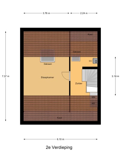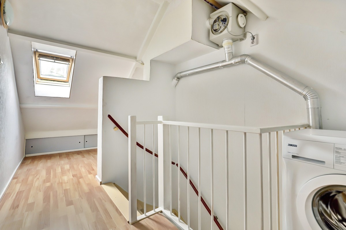 Via een vaste trap bereikbare zolderverdieping. Op de voorzolder bevinden zich de aansluitingen voor wasmachine en droger (samen op een aparte groep), een 4-pans dakraam en de opstelplaats van de cv-ketel (2021). De ruime vierde slaapkamer is voorzien van een dakraam, laminaatvloer en bergruimte achter de knieschotten.