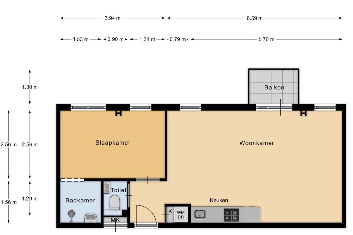Gelegen op de vierde, en tevens bovenste verdieping tref je dit fijne 2-kamer appartement. Het appartement is afgewerkt als 'Casco++' volgens 'Moodboard Wit'.