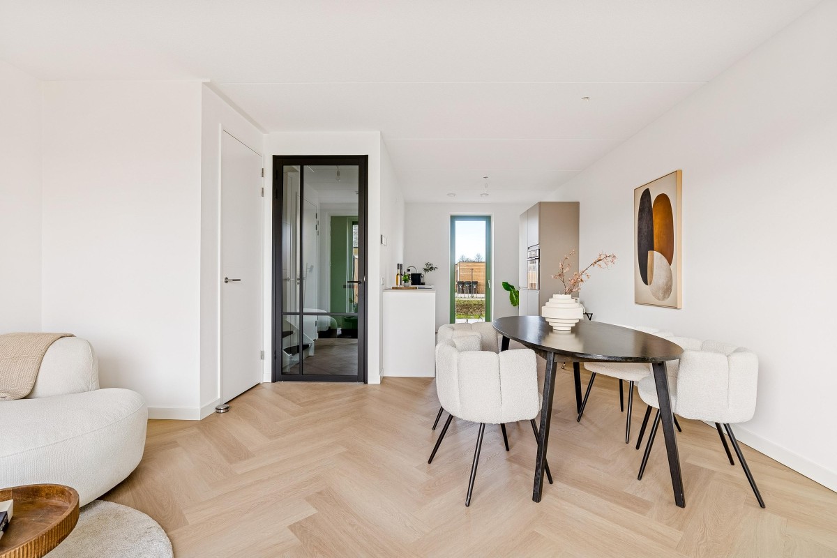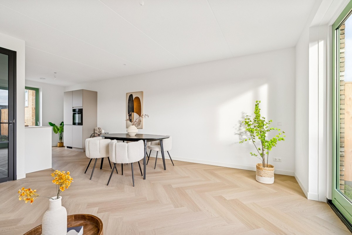 Lees verderDe hoge raampartijen in de woning zorgen ervoor dat je optimaal geniet van het zonlicht en de natuur rondom. De Kreekvelden is niet alleen aantrekkelijk voor mensen, maar ook voor vlinders, bijen en andere dieren, die de groene omgeving in ere houden.