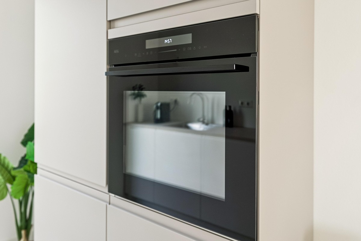 De moderne keuken aan de voorzijde is voorzien van vaatwasser, inductiekookplaat met geïntegreerde afzuiging, combiovenmagnetron en een koelvriescombinatie.