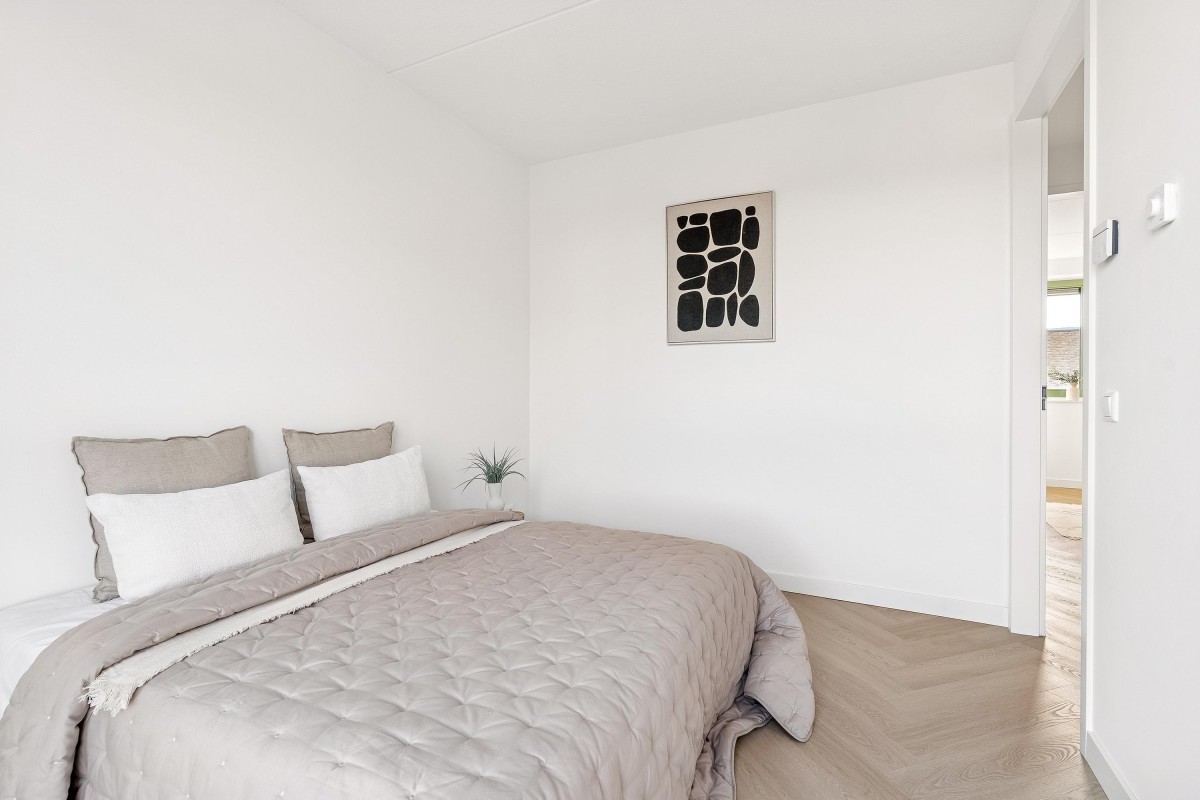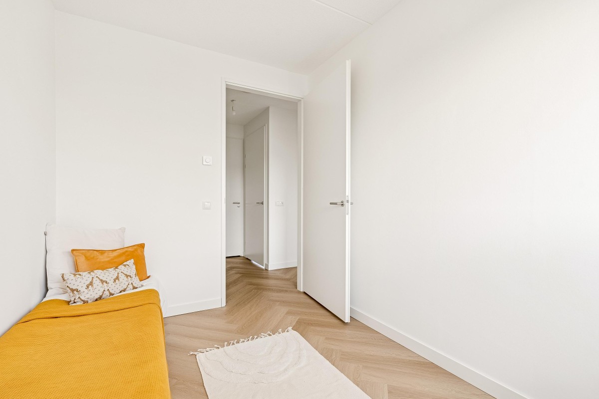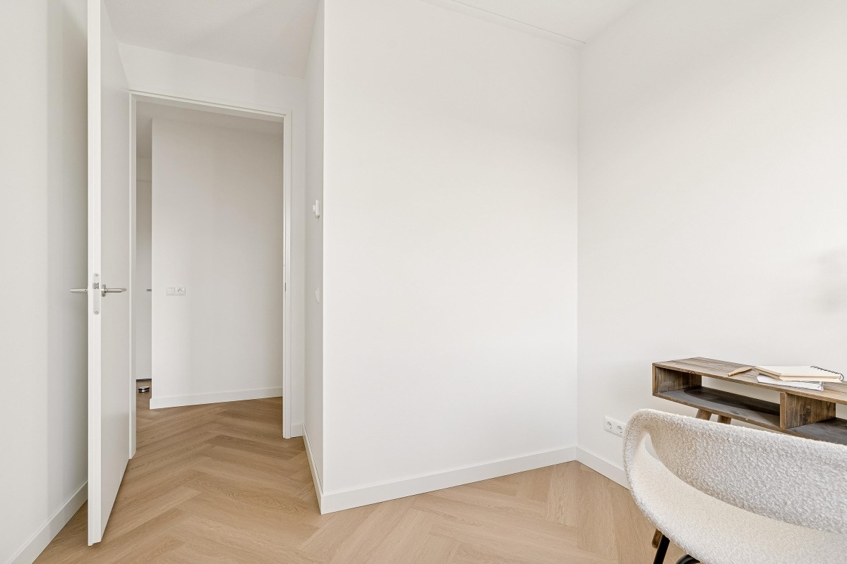 Ook op deze verdieping een luxe pvc visgraadvloer met vloerverwarming en Renovlies behang.