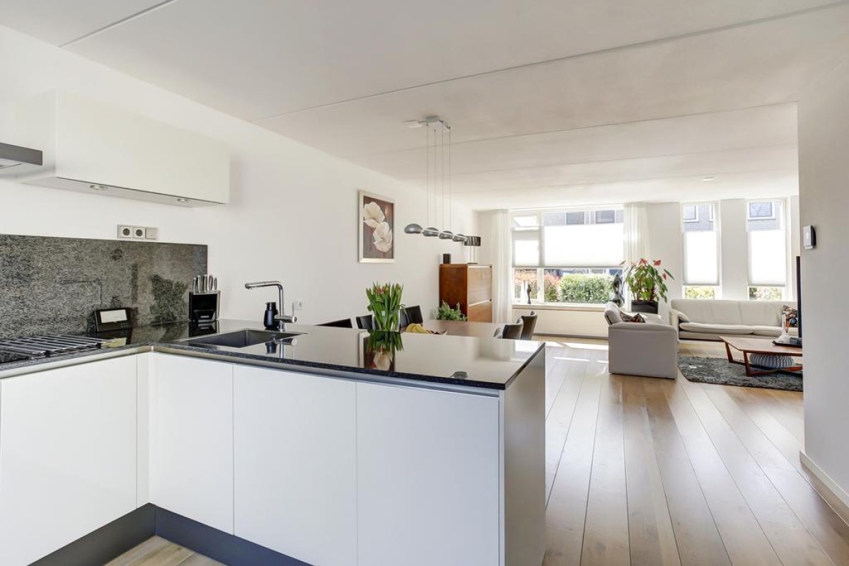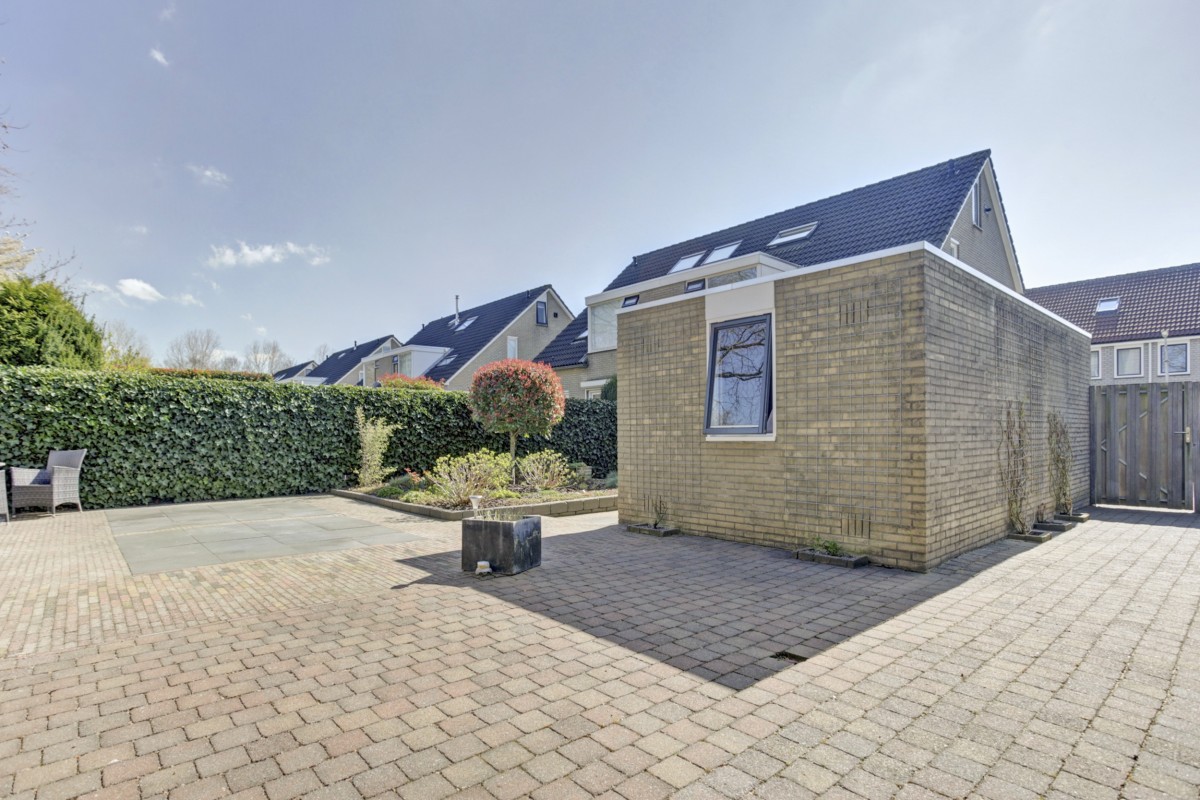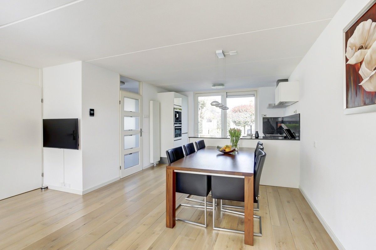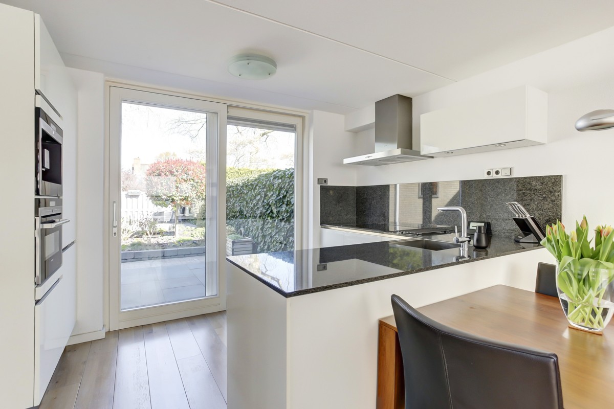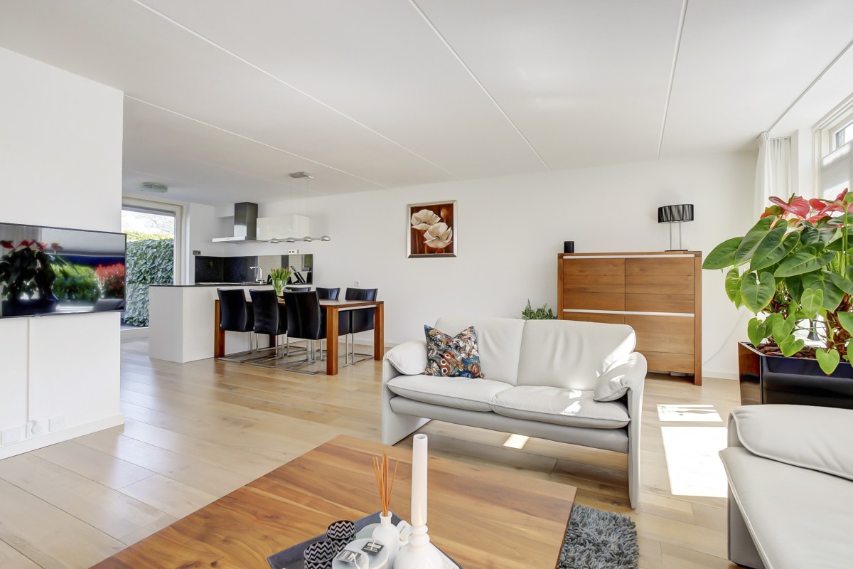 Begane grond: ruime oprit met vrijstaande stenen garage en overdekt entree, lichte ontvangsthal met garderobe, toiletruimte met hangcloset en fonteintje, uitgebreide meterkast en glasdeur naar de straatgerichte woonkamer. Aan de achterzijde van de woning is de luxe keuken gesitueerd welke beschikt over veel kastruimte, een groot granieten werkblad en een ingebouwde koffieautomaat, combi-oven, koel-/vrieskast, vaatwasser (2024), inductiekookplaat en afzuigkap. Aansluitend is de eethoek gesitueerd en aan de voorzijde van de woning een brede woonkamer met veel ramen, een provisiekast en gashaard. De tuin is middels een loopdeur vanuit de hal alsmede een schuifpui vanuit de keuken te betreden en onderhoudsarm aangelegd. De brede achtertuin heeft een poort langs de vrijstaande stenen garage en meerdere zonneterrassen.