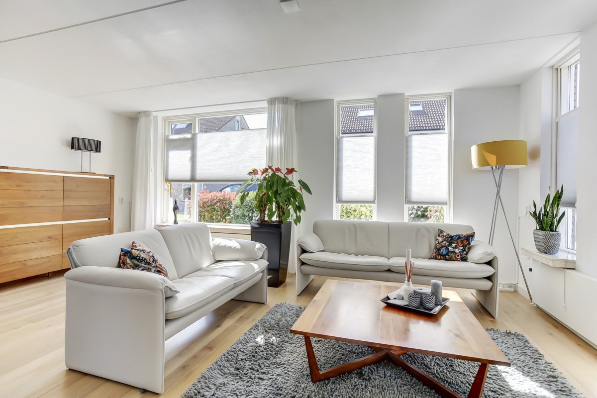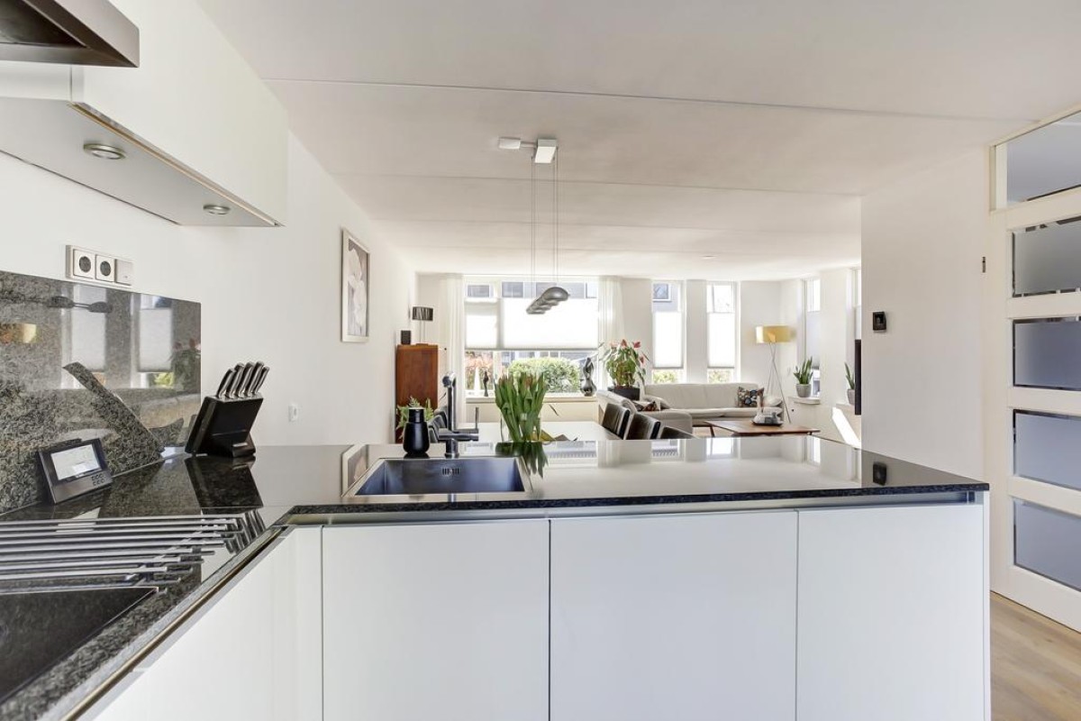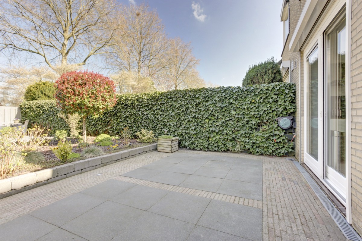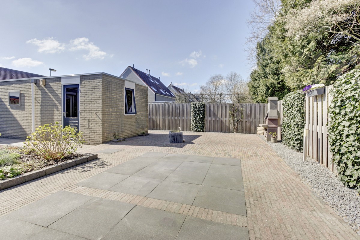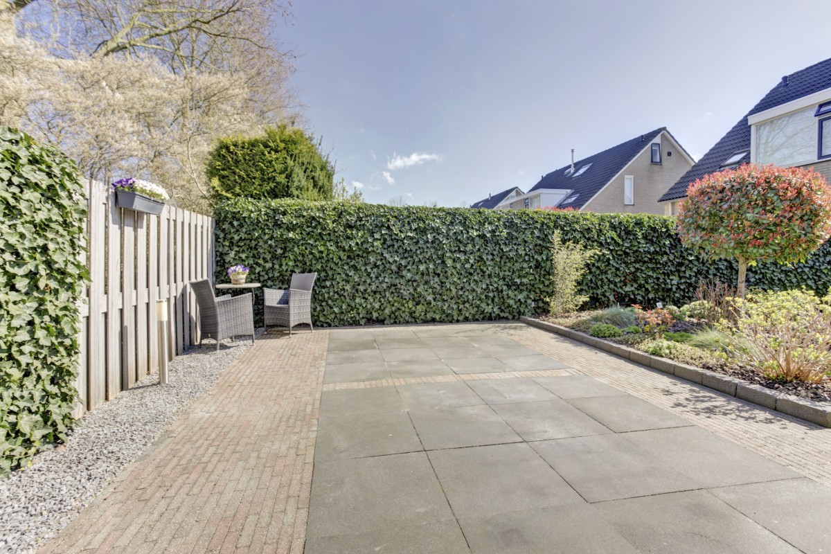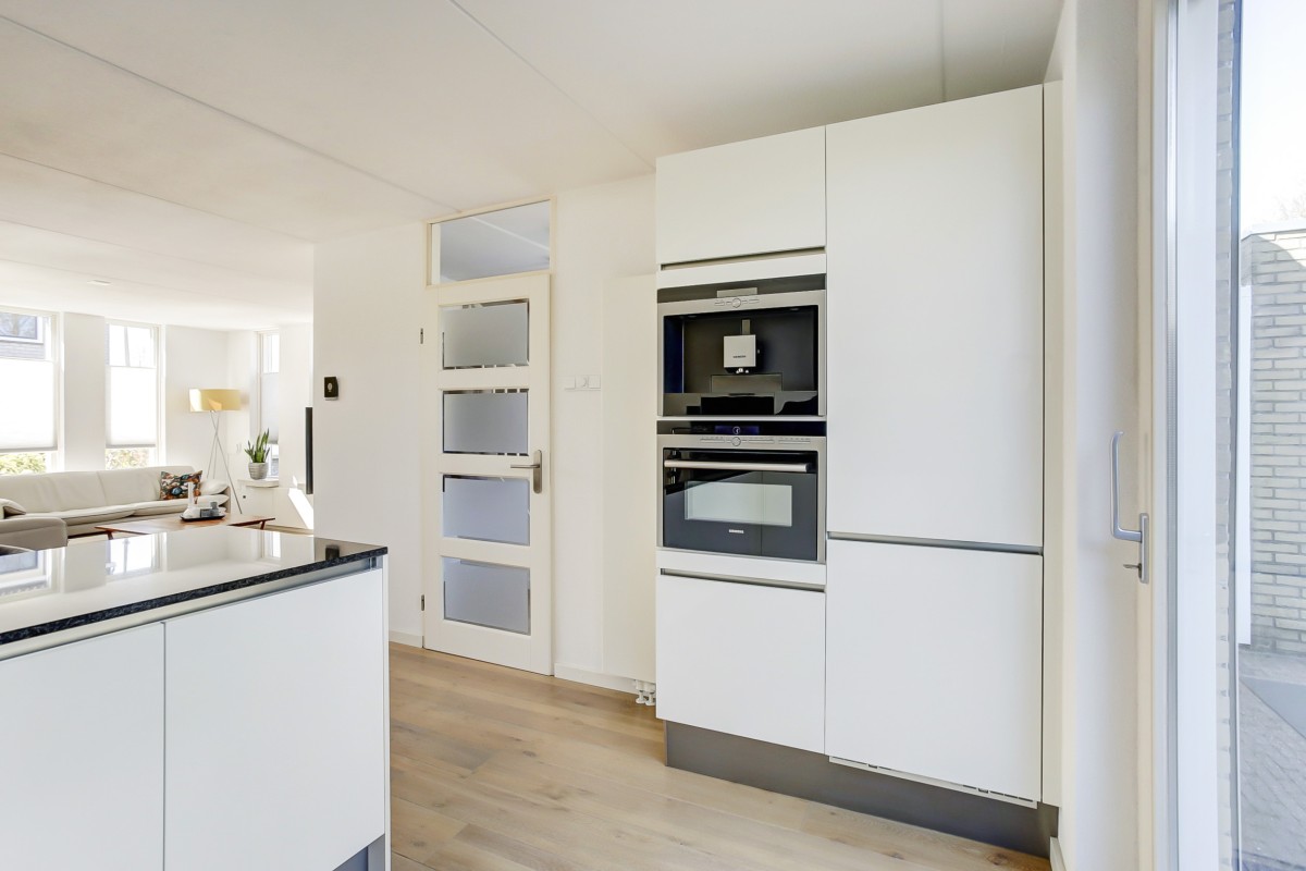 Begane grond: ruime oprit met vrijstaande stenen garage en overdekt entree, lichte ontvangsthal met garderobe, toiletruimte met hangcloset en fonteintje, uitgebreide meterkast en glasdeur naar de straatgerichte woonkamer. Aan de achterzijde van de woning is de luxe keuken gesitueerd welke beschikt over veel kastruimte, een groot granieten werkblad en een ingebouwde koffieautomaat, combi-oven, koel-/vrieskast, vaatwasser (2024), inductiekookplaat en afzuigkap. Aansluitend is de eethoek gesitueerd en aan de voorzijde van de woning een brede woonkamer met veel ramen, een provisiekast en gashaard. De tuin is middels een loopdeur vanuit de hal alsmede een schuifpui vanuit de keuken te betreden en onderhoudsarm aangelegd. De brede achtertuin heeft een poort langs de vrijstaande stenen garage en meerdere zonneterrassen.