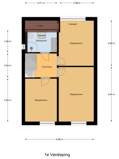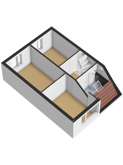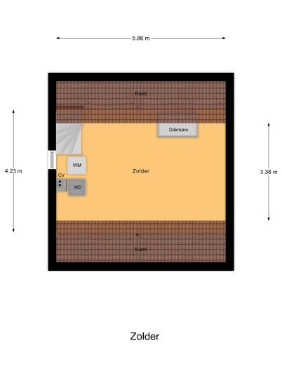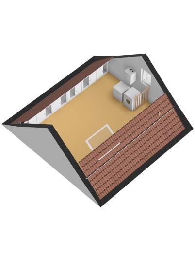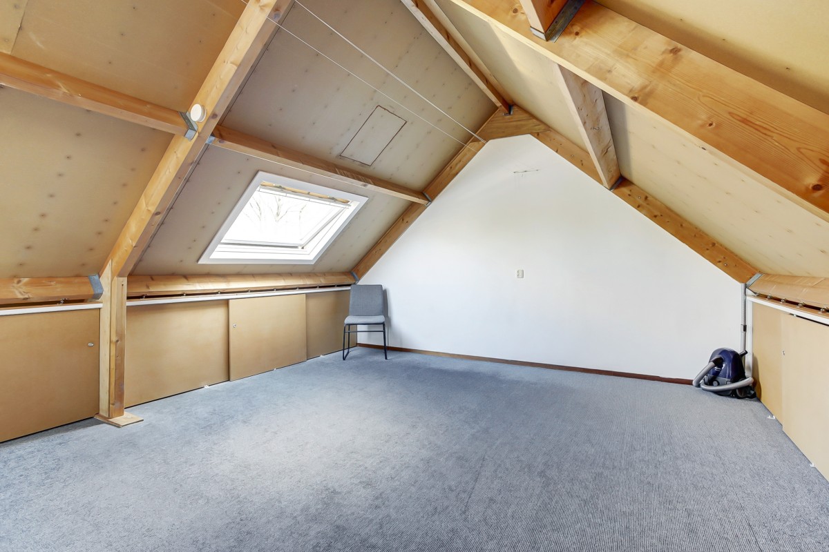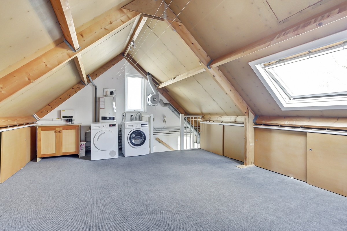 Tweede verdieping: vaste trap naar de zolder waar de c.v.-ketel (Nefit HR 2016), wasmachine, droger en mechanische ventilatie zijn geplaatst en waar veel bergruimte te vinden is. Deze verdieping biedt mede door het grote dakraam en gevelraam de mogelijkheid om een grote 4e slaapkamer te realiseren.