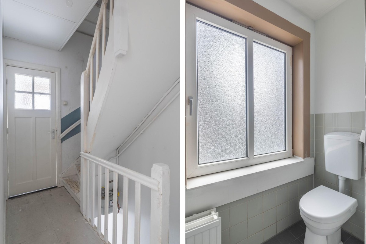 Lees verderDe open keuken bevindt zich in casco staat, waardoor u deze volledig naar eigen smaak kunt afwerken. Vanuit de hal heeft u tevens toegang tot een separaat toilet met fonteintje, of kunt u via de trap verder naar de tweede verdieping.