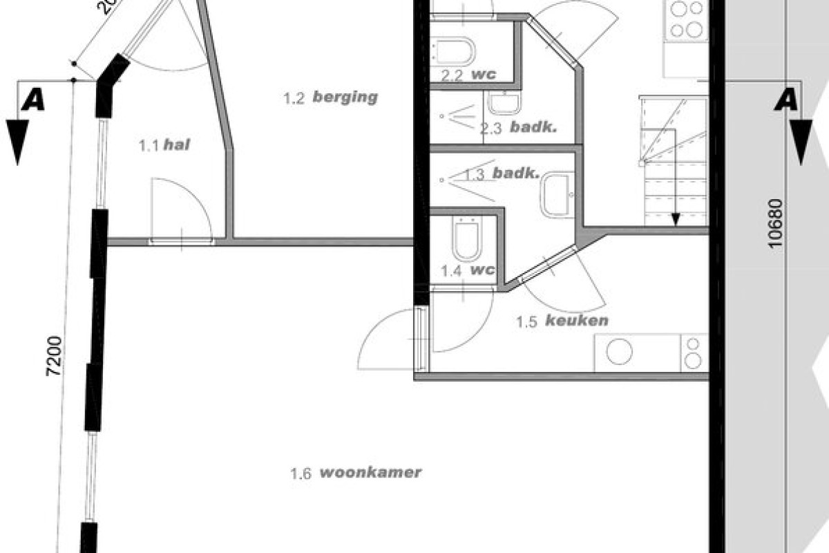 Lees verderTussen de beide voordeuren is een inpandige berging. Deze zou ook bij één van de woningen getrokken kunnen worden.