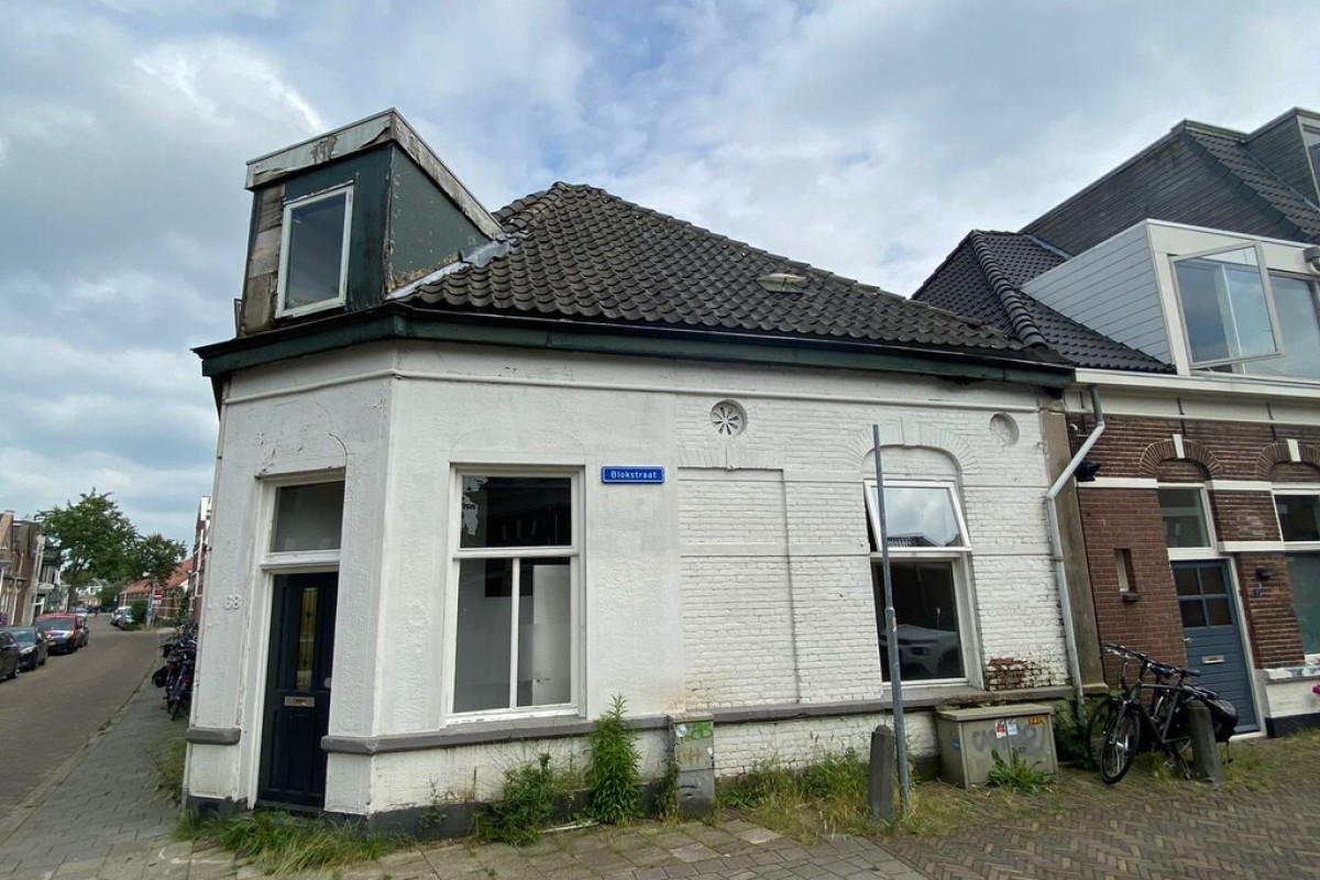 Begane grond: De voordeur zit precies op de hoek van het object, hal, doorgang naar de L-vormige woon-/slaapkamer. In deze ruimte zijn er meerdere raampartijen aanwezig welke zijn gesitueerd aan de Blokstraat-zijde. Een dichte keuken met aansluitend de badkamer met een douche en wastafel. Tevens is er een separaat toilet aanwezig.