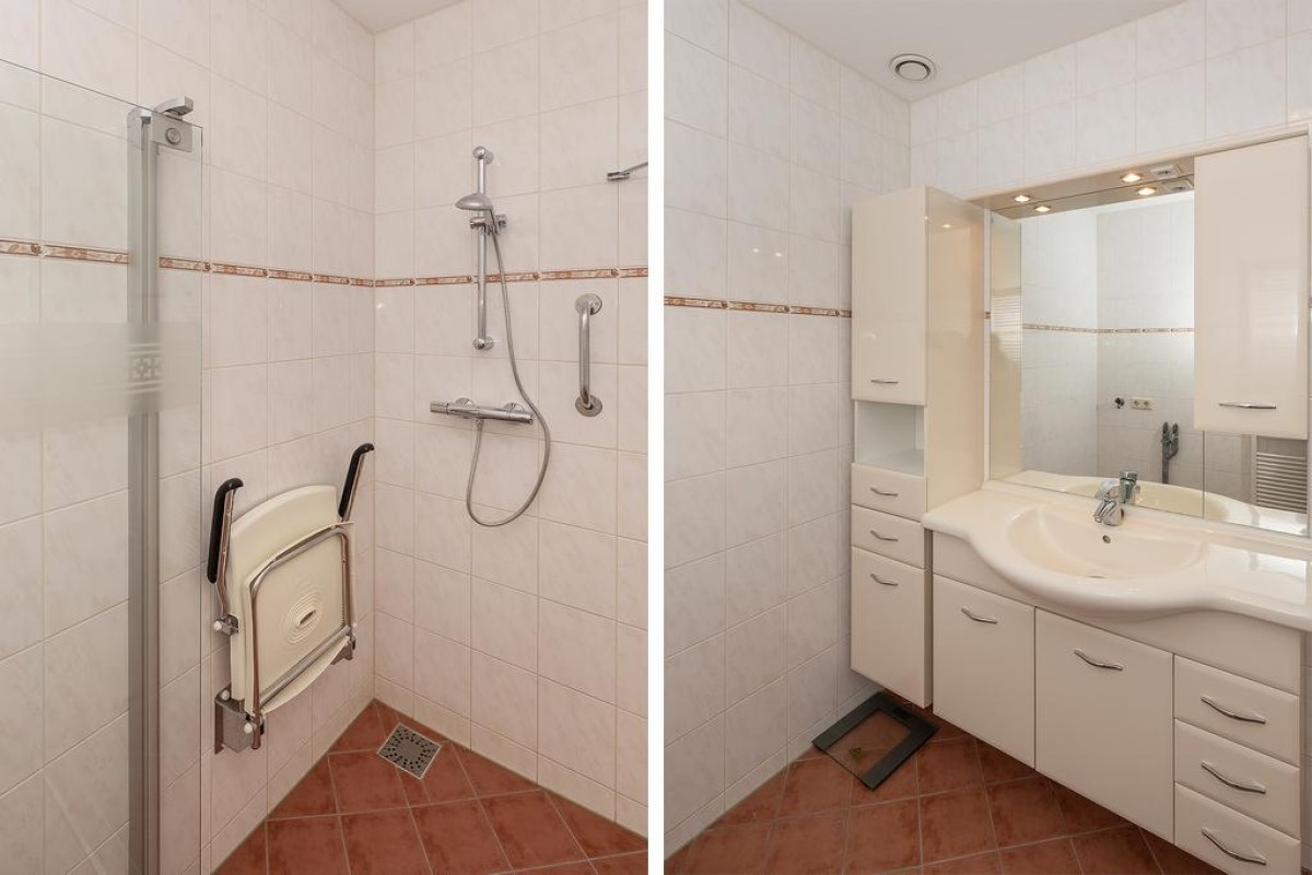 Vanuit de gang zijn er 2 slaapkamers van circa 20 m2 en 9 m² te bereiken. De tweede slaapkamer heeft middels een schuifpui toegang tot het balkon. De nette badkamer is voorzien van een douchecabine, wastafelmeubel en aansluiting voor de wasmachine