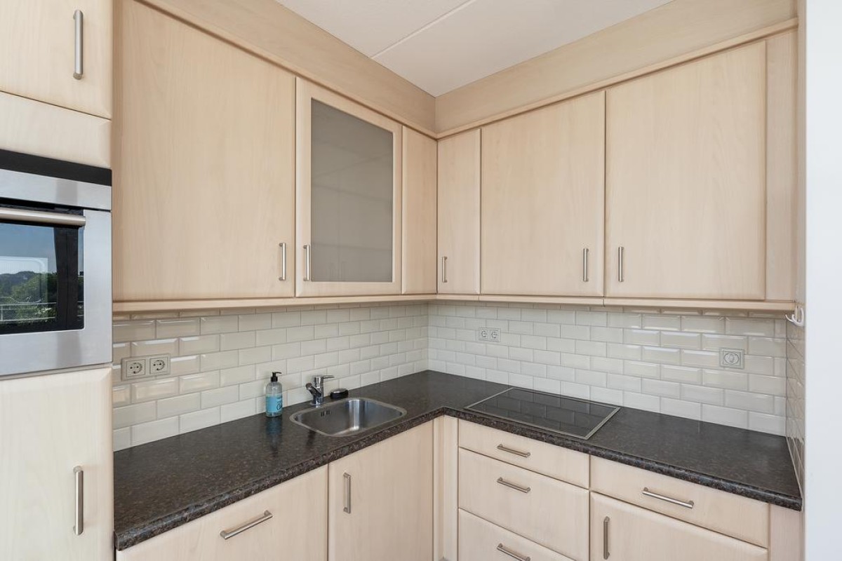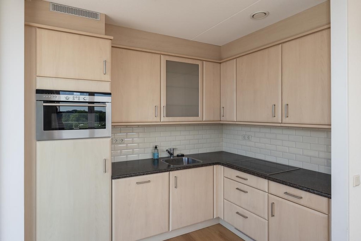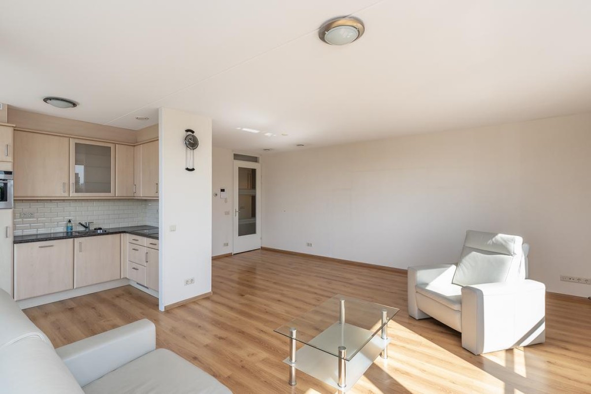 Een compleet ingericht appartement met een frisse en neutrale uitvoering van keuken- en badkamerinrichting, vloer- en wandafwerking.