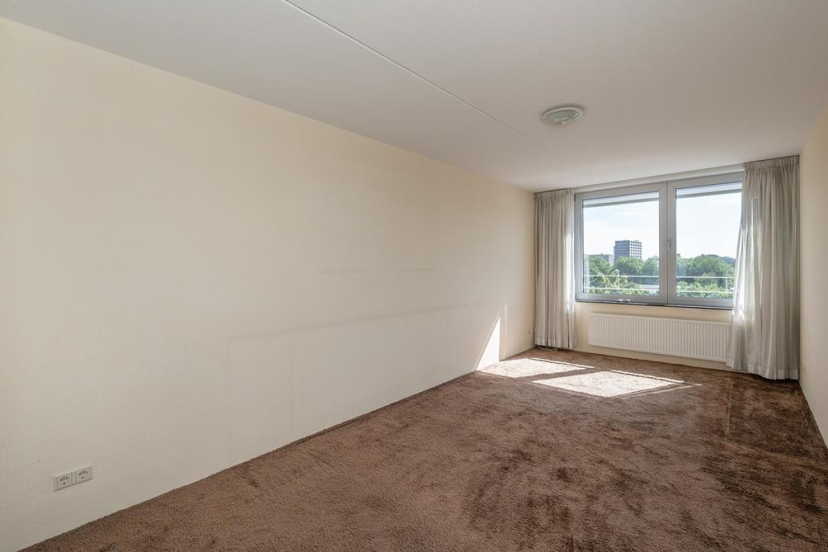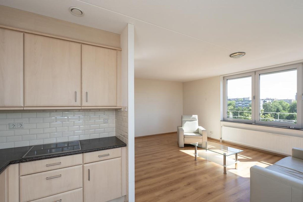 Aan de rand van de wijk Holtenbroek bevindt zich op de vierde verdieping dit royale appartement met groot, zongericht balkon , 2 slaapkamers en een vrij uitzicht vanaf de 5e etage.