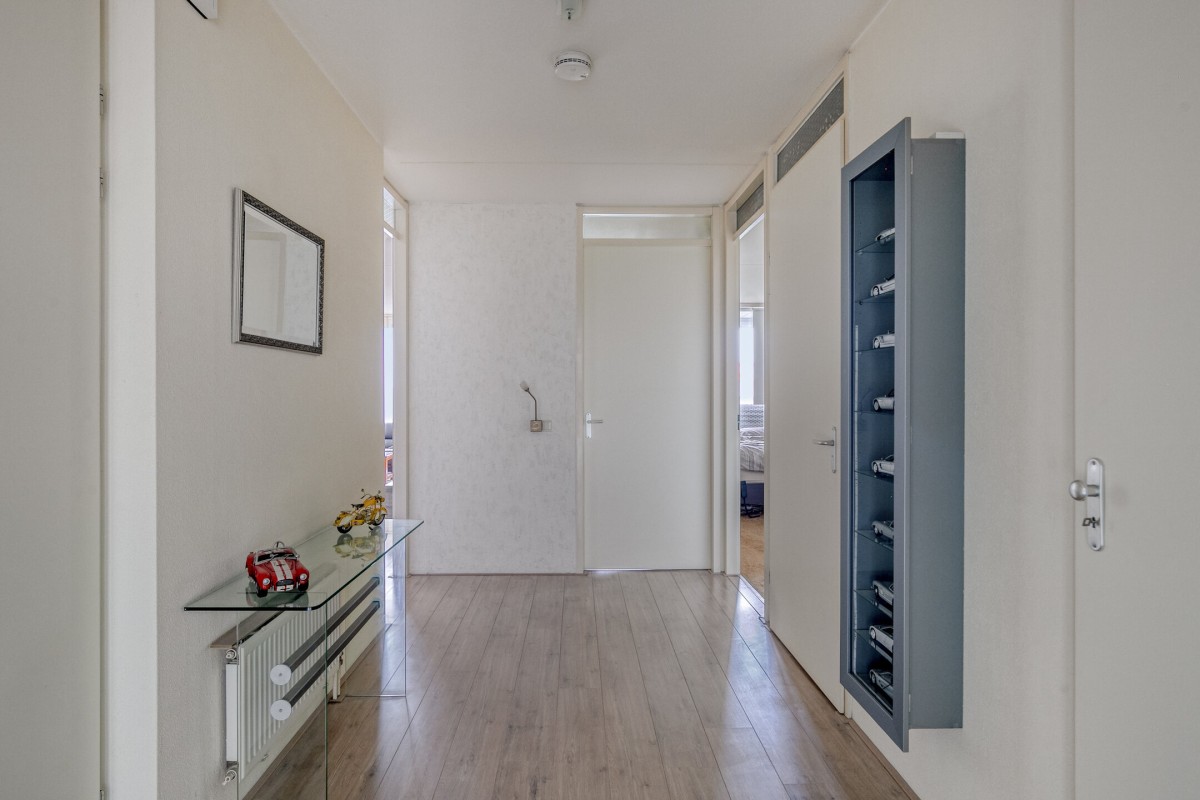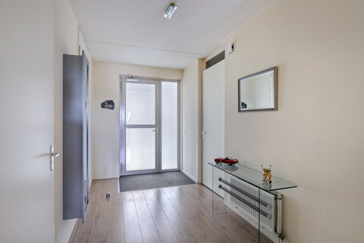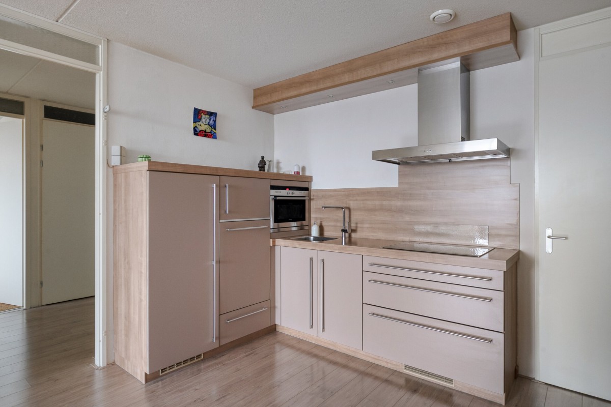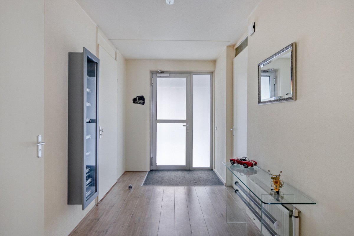 Een compleet ingericht appartement, kenmerkend zijn o.a. een aparte bijkeuken achter de keukenopstelling van ruim 4 m2 en een royale inpandige berging van 5 m2