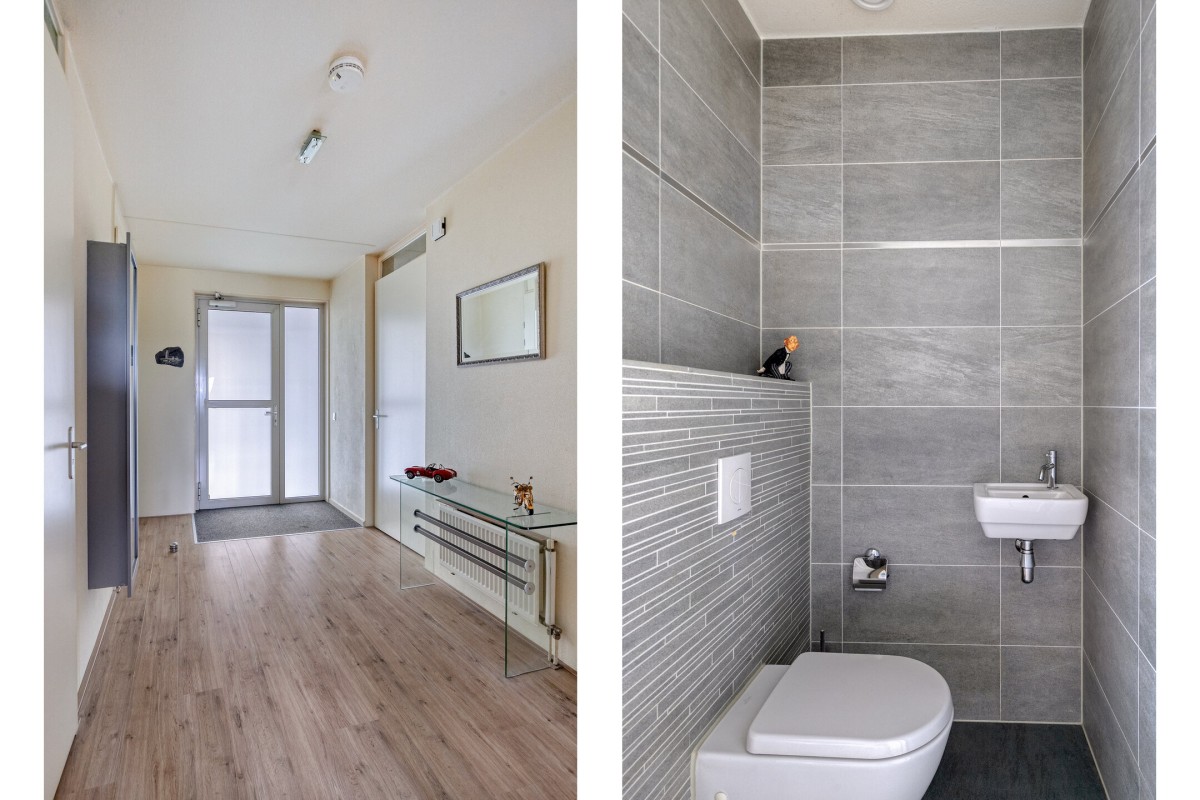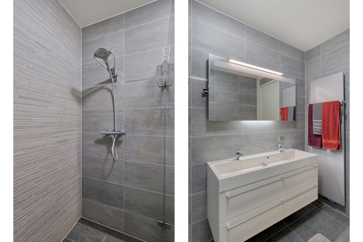 Vanuit de Hal zijn er 2 slaapkamers van circa 19 m2 en 10 m² te bereiken. De beide slaapkamers hebben middels een schuifpui toegang tot het balkon. De royaal bemeten badkamer is voorzien van een ruime inloopdouche afgewerkt met een glazenwand en een duo wastafelmeubel.