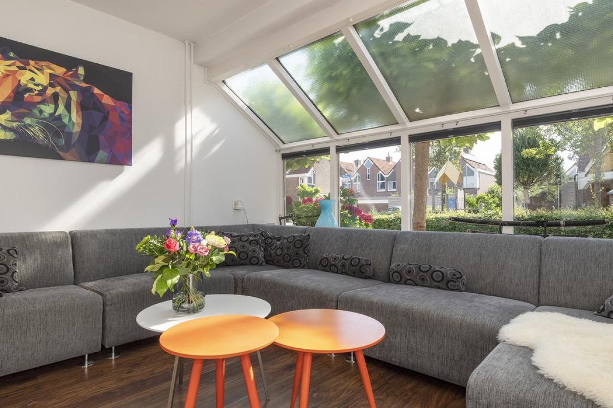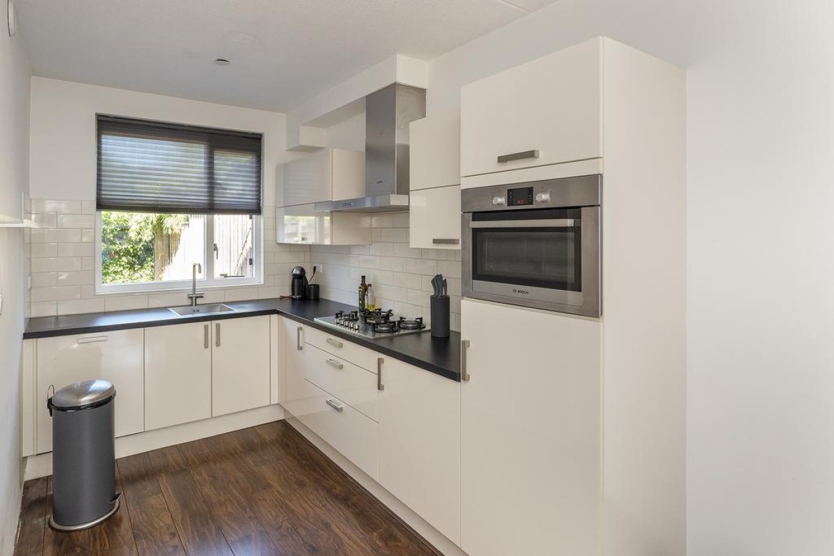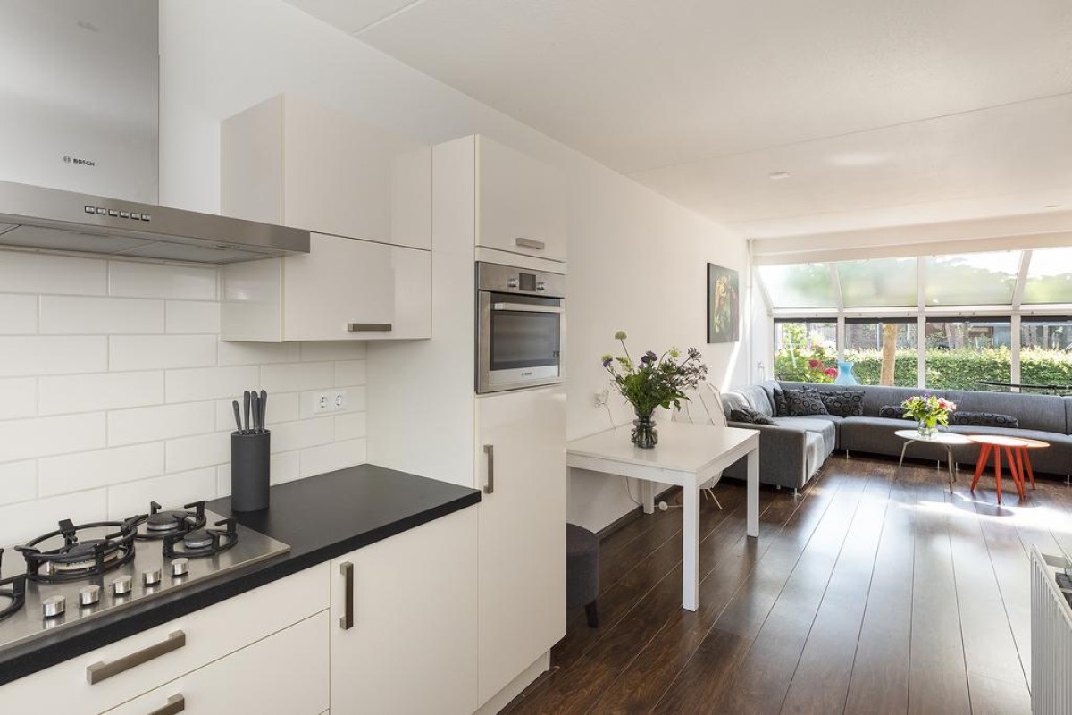 Indeling: entree, hal met meterkast, verrassend ruime woonkamer met serre aan de voorzijde wat zorgt voor een bijzondere lichtinval in de woonkamer. Aan de achterzijde bevindt zich de keurige keuken in hoekopstelling voorzien van Bosch inbouwapparatuur, zoals een vaatwasser, oven, koelkast, 5-pits kookplaat, en afzuigkap.