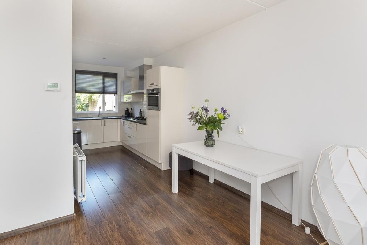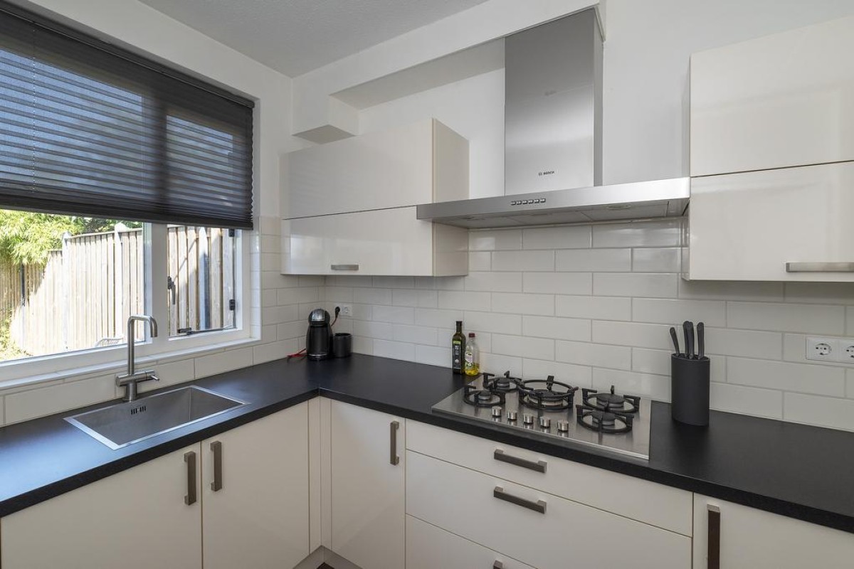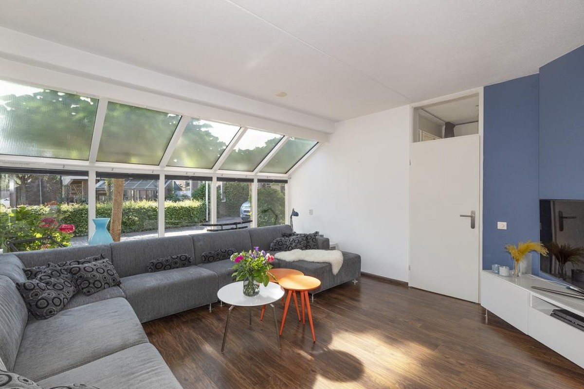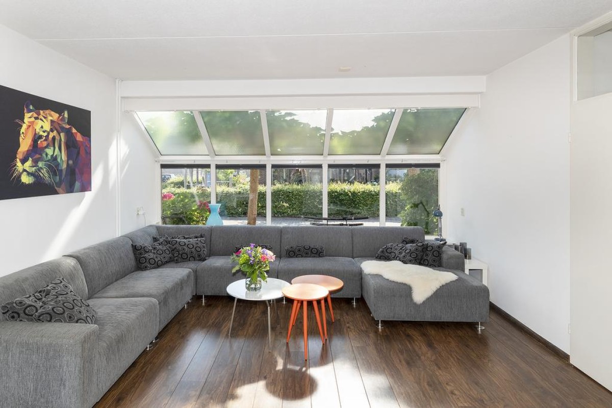 Indeling: entree, hal met meterkast, verrassend ruime woonkamer met serre aan de voorzijde wat zorgt voor een bijzondere lichtinval in de woonkamer. Aan de achterzijde bevindt zich de keurige keuken in hoekopstelling voorzien van Bosch inbouwapparatuur, zoals een vaatwasser, oven, koelkast, 5-pits kookplaat, en afzuigkap.