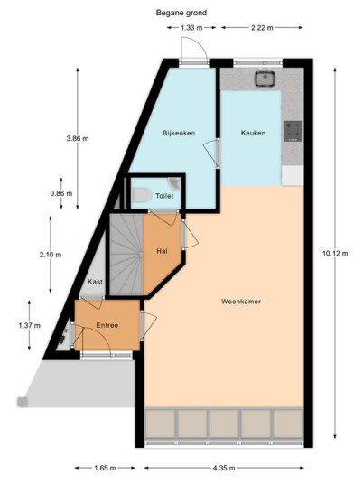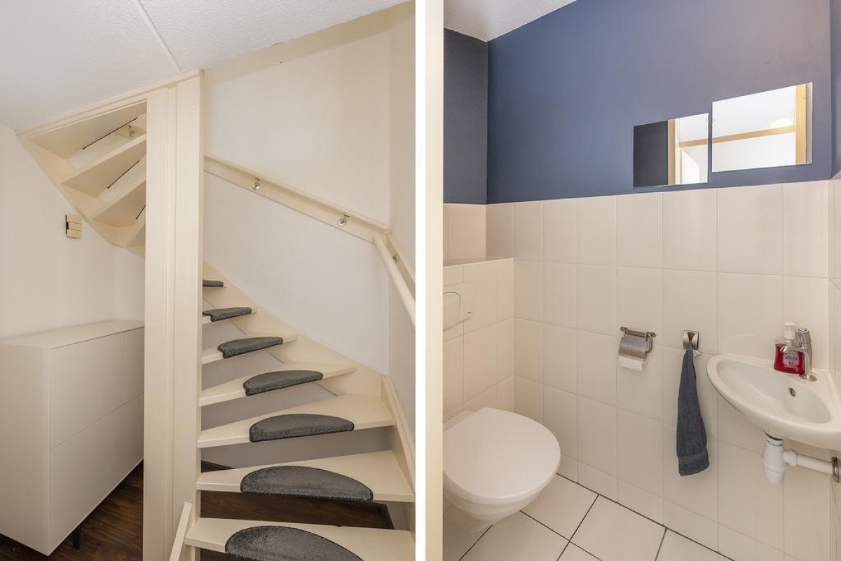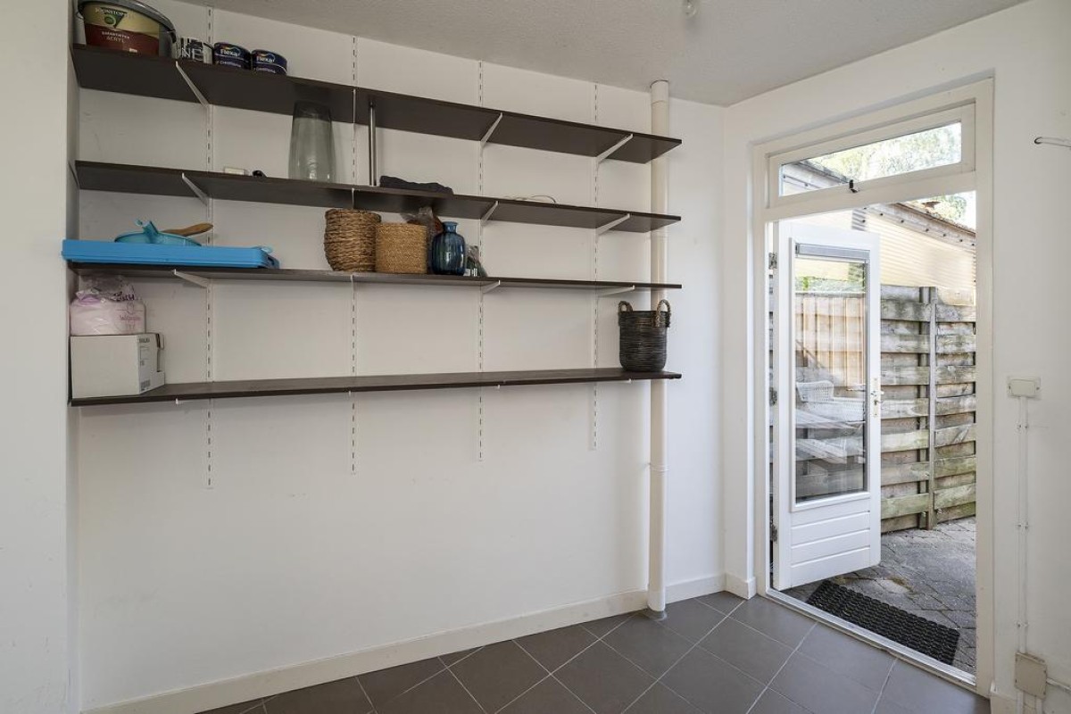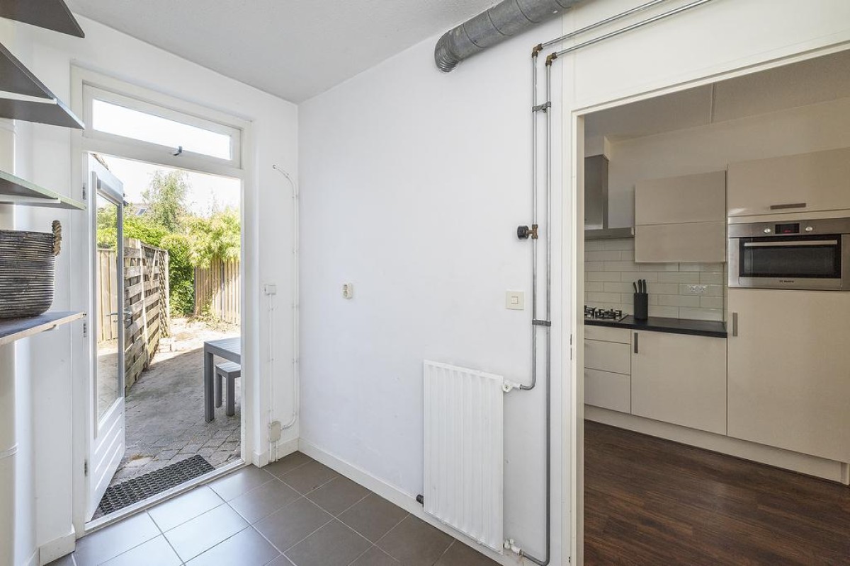 Lees verderNaast de keuken bevindt zich de inpandige berging die eveneens dienst doet als bijkeuken. Tussenhal met gemoderniseerd toilet en trapopgang naar…