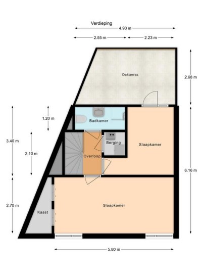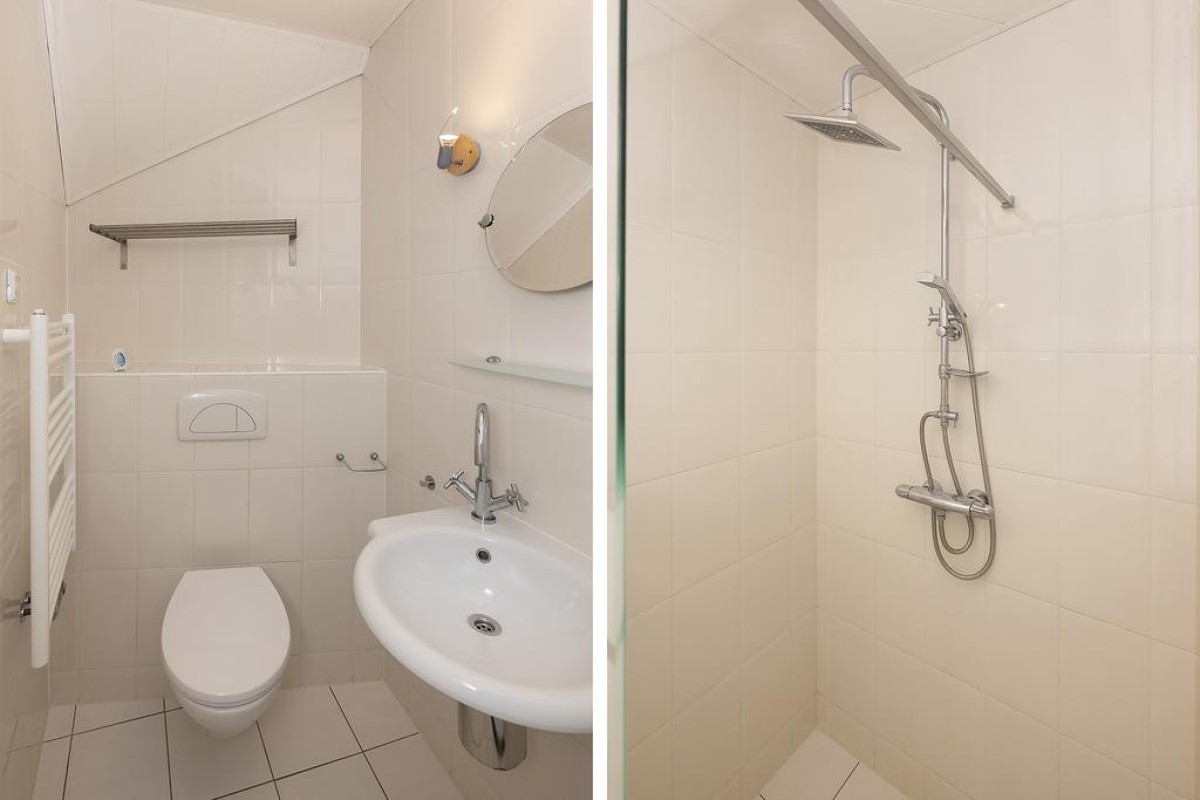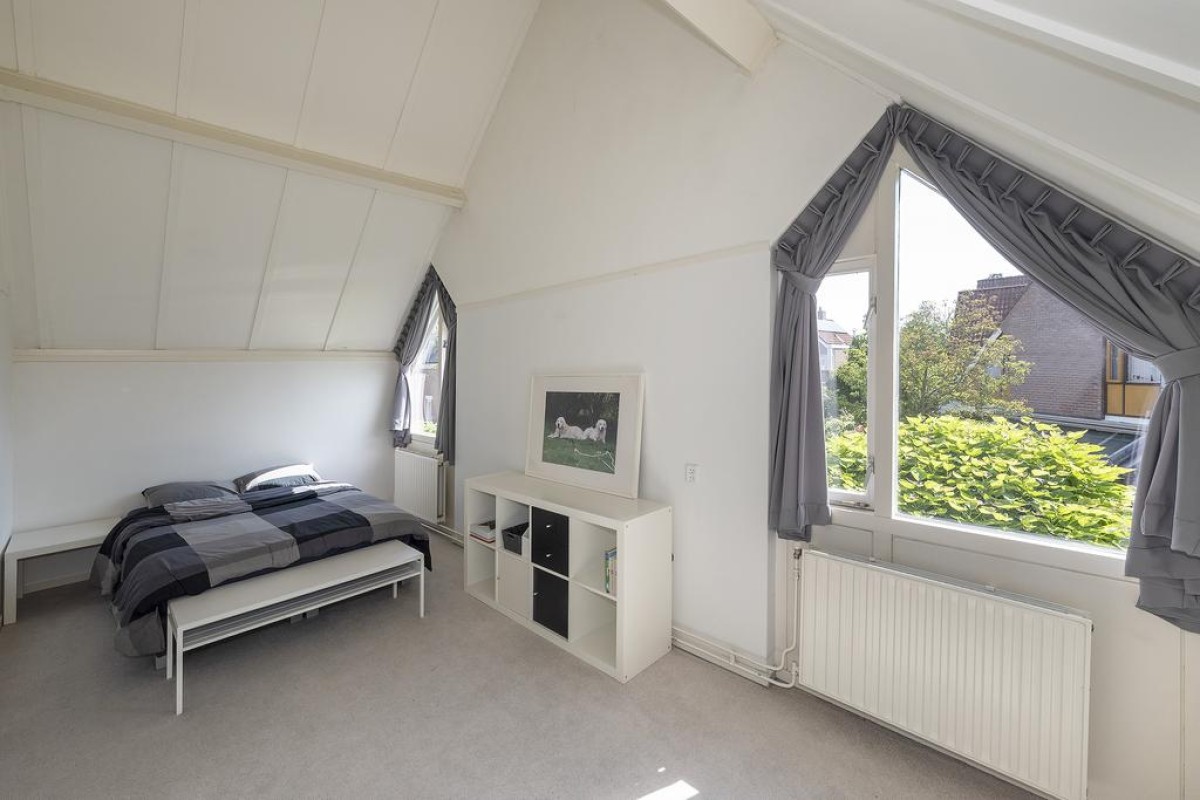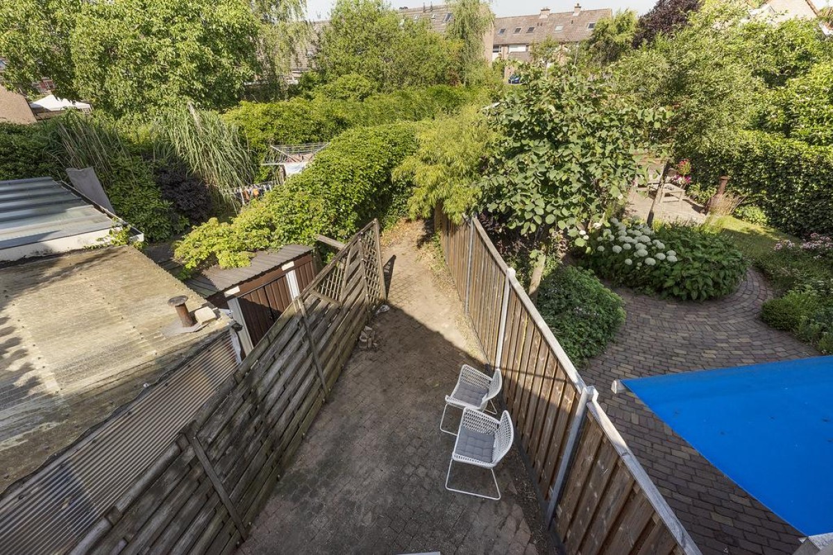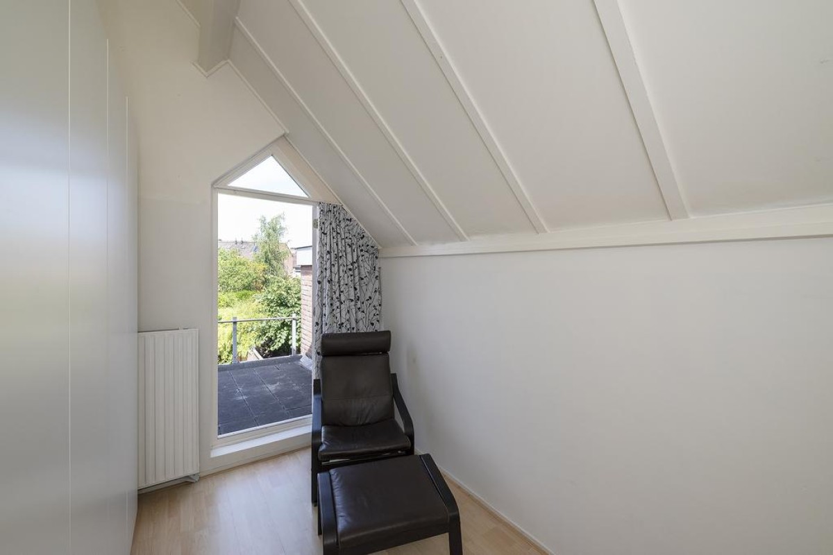 1e Verdieping: overloop met een aparte stookruimte waar je de combiketel uit 2013 zult aantreffen, 2 slaapkamers, waarvan de royale ouderslaapkamer aan de voorzijde over de volledige breedte van de woning is gesitueerd. Slaapkamer aan de achterzijde welke tevens toegang biedt aan het ruime en zonnige dakterras. Nette badkamer in lichte kleurstelling voorzien van een wastafel, 2e toilet en douchecabine. Aangezien de nok van de woning heel hoog is geeft deze hoogte in de slaapkamers een enorm ruimtelijk gevoel. Uiteraard is het ook mogelijk om hierin nog een vliering te realiseren om extra bergruimte te creëren.