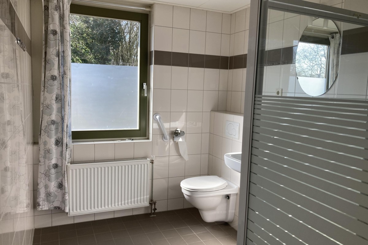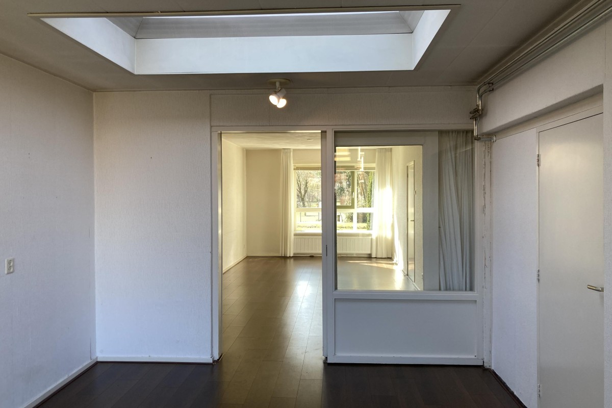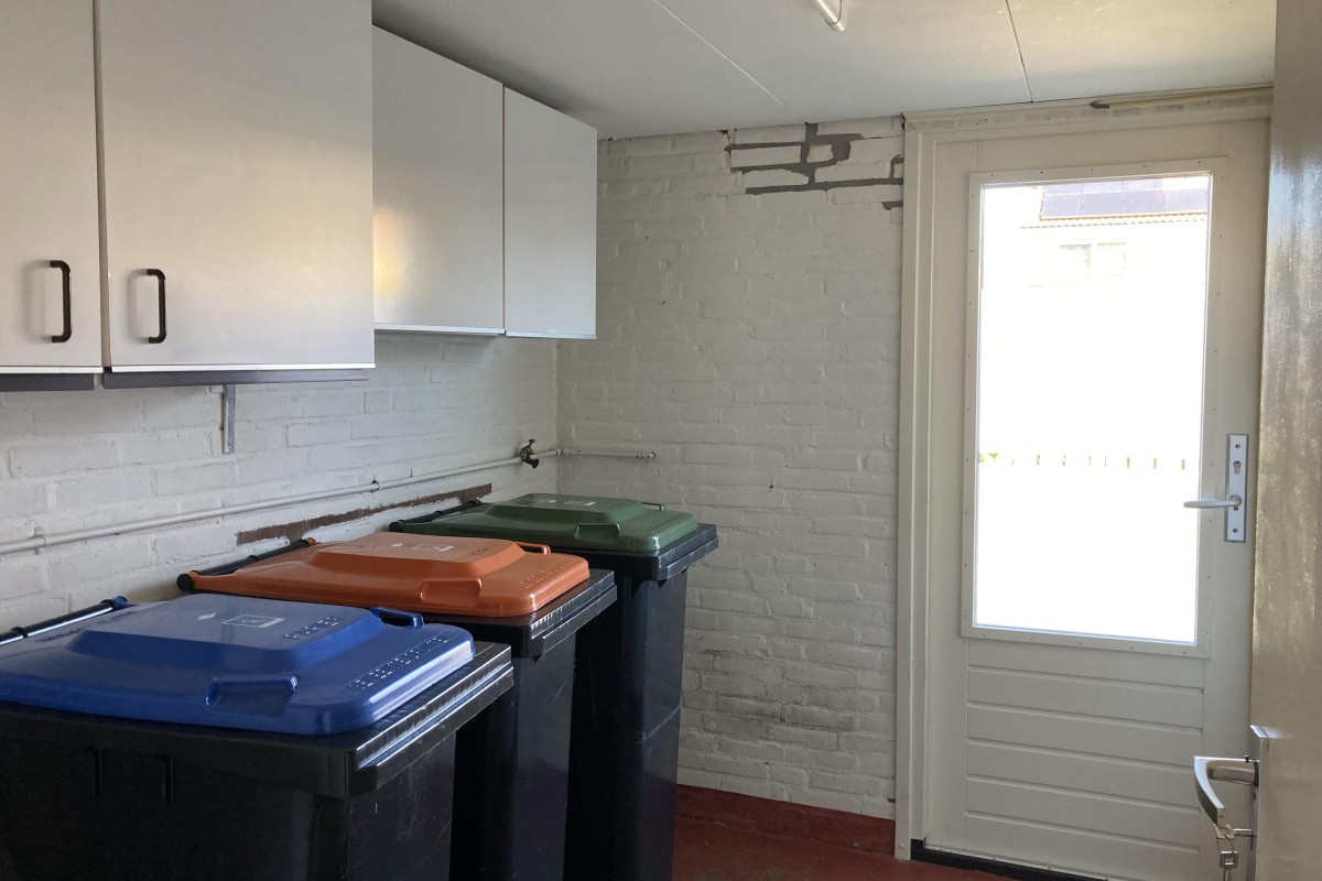 Begane grond: Entree, royale hal met trapopgang, diepe trapkast, meterkast, toiletruimte met toilet en fonteintje, doorgang naar de woonkamer. De lichte straat gerichte woonkamer geeft een fijn uitzicht op de kinderboerderij, een open keukenruimte met hoek opgestelde keuken met ingebouwde gaskookplaat en rvs afzuigkap. Aan de tuinzijde van de woning is de woning fors uitgebouwd en is middels schuifdeuren de aangebouwde kamer te bereiken welke is voorzien van een deur naar de tuin en een grote dakkoepel welke voor een prettige lichtinval zorgt. Doorgang naar de badkamer op de begane grond welke eveneens is voorzien van een dakkoepel en een douchehoek, wastafel en toilet. Vanuit de badkamer is er toegang tot de berging met opstelplaats van de wasapparatuur en middels een loopdeur is er toegang tot de zonnige tuin op het noord oosten welke naar smaak kan worden ingedeeld en voorzien is van een terras en achterom.