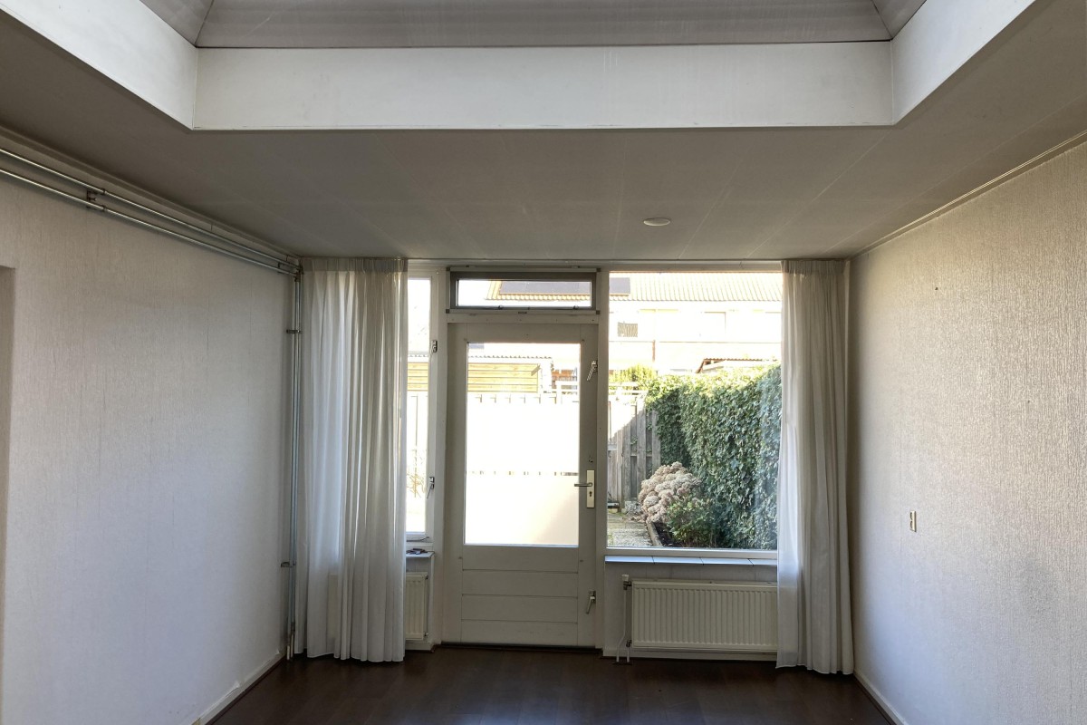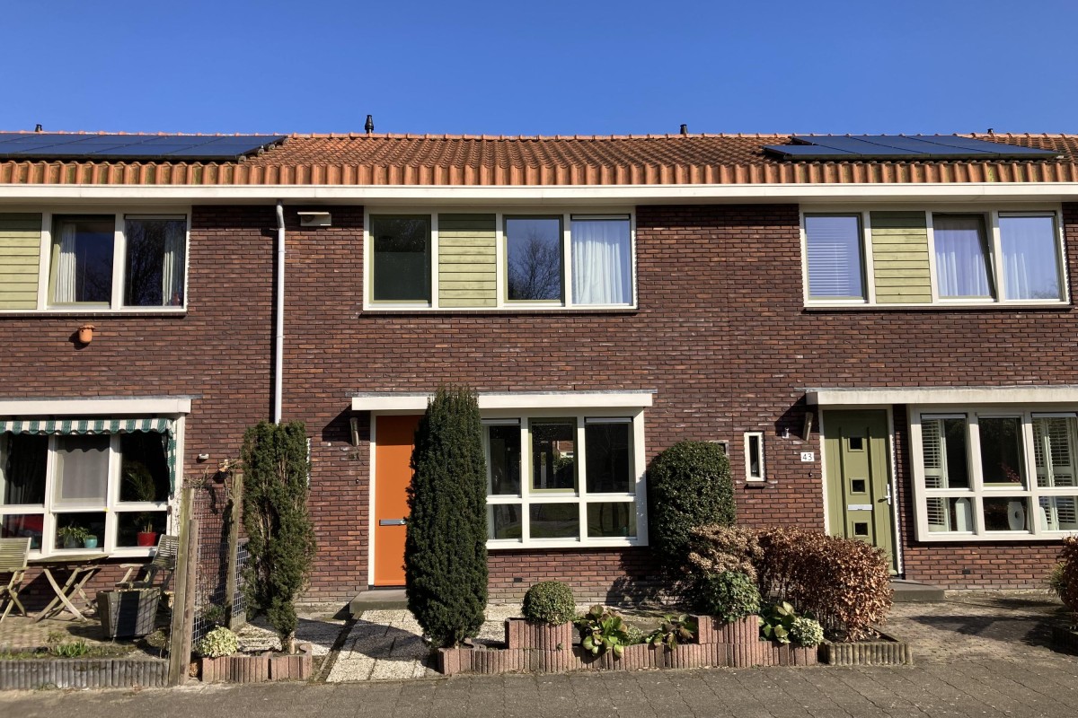 Deze ruime uitgebouwde tussenwoning is op een rustige locatie met uitzicht op de kinderboerderij gelegen. De woning is op de begane grond aan de achterzijde riant uitgebouwd en voorzien van een open keuken, een ruime extra kamer met aangrenzend de badkamer en doorgang naar de berging. De woning heeft op de etage 3 slaapkamers, een badkamer en toegang tot de vliering alsmede een onderhoudsarme achtertuin op noord oosten gelegen. De wijk is kinderrijk met in de straat veel parkeergelegenheid beschikbaar en gelegen op korte afstand van het gezondheidscentrum, scholen en winkels.