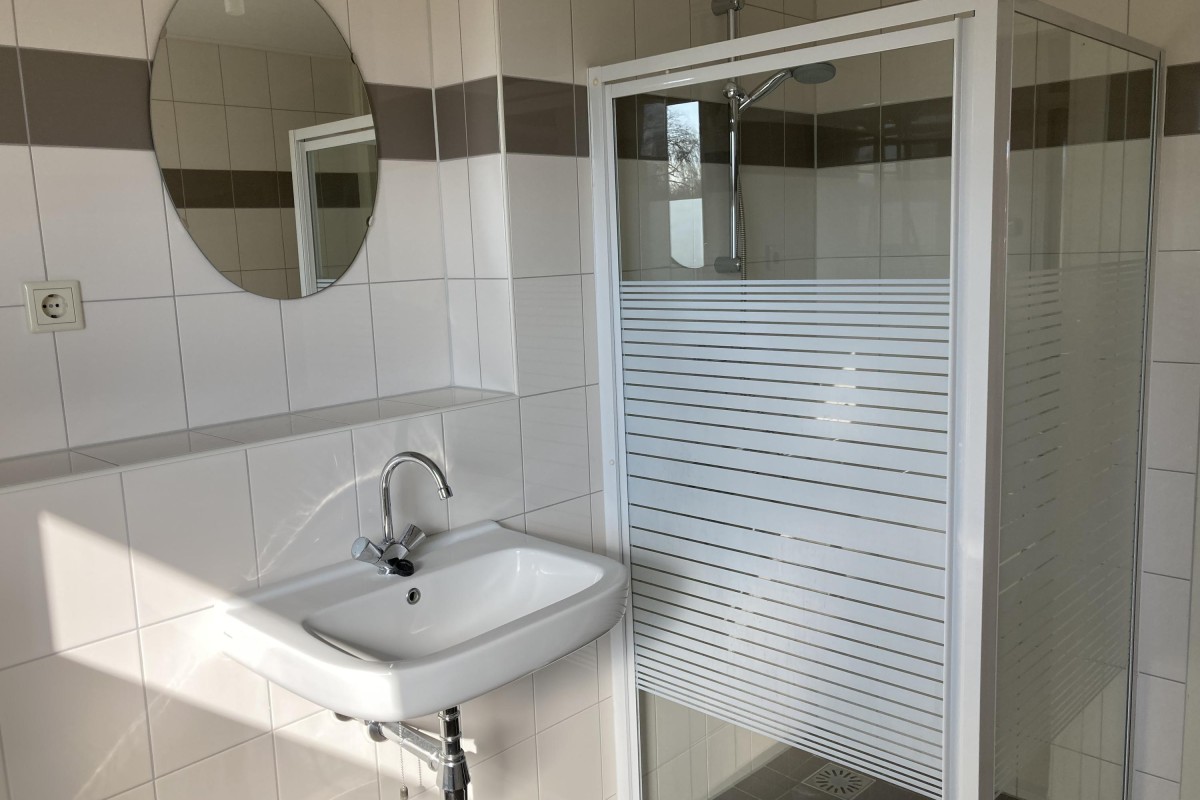 Eerste verdieping: royale overloop met aansluitend 3 slaapkamers deels voorzien van vaste inbouwkasten, de badkamer met douche, hangcloset, wastafel, en radiator. De overloop geeft middels een steektrap toegang tot de bergzolder. De vloeren op de verdieping zijn voorzien van een tapijtvloer.