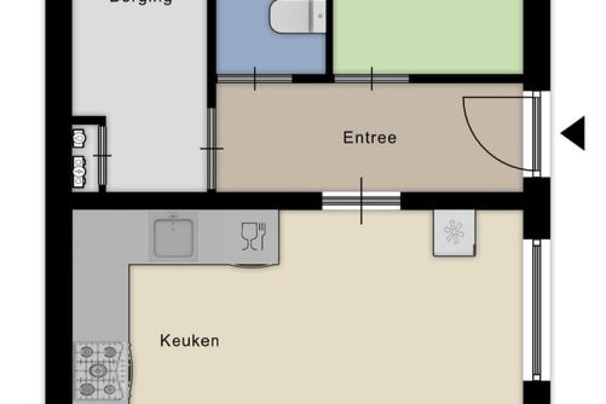 Lees verderIn de berging is tevens aansluiting voor wasmachine/droger, de slaapkamer. is aan de voorzijde gesitueerd. De badkamer is voorzien van een inloopdouche, toilet en wastafelmeubel.