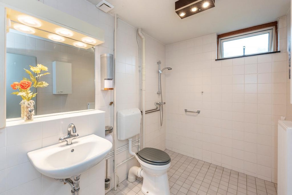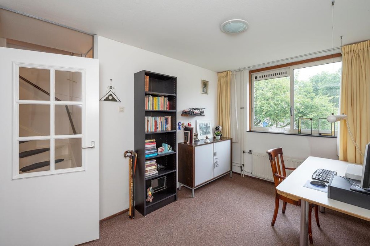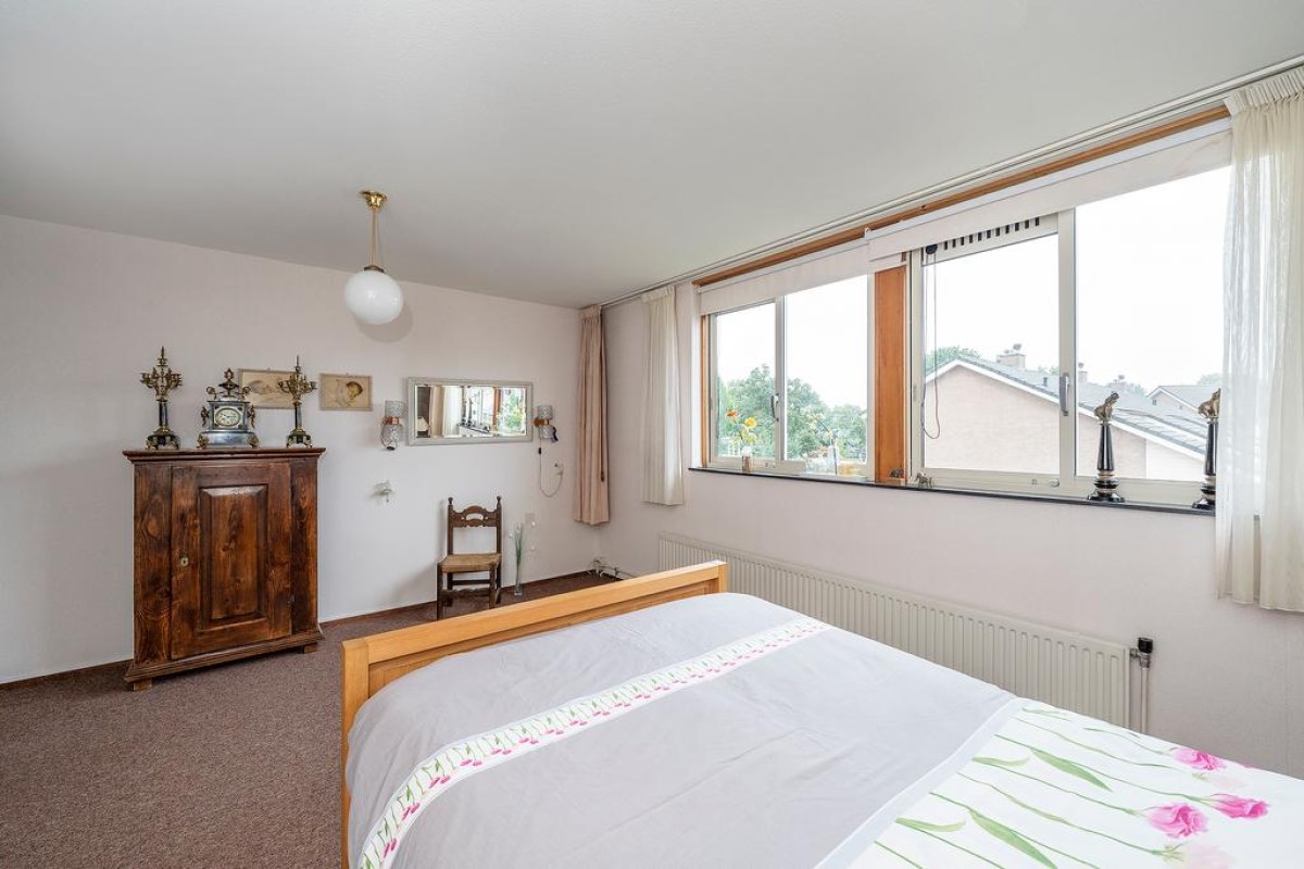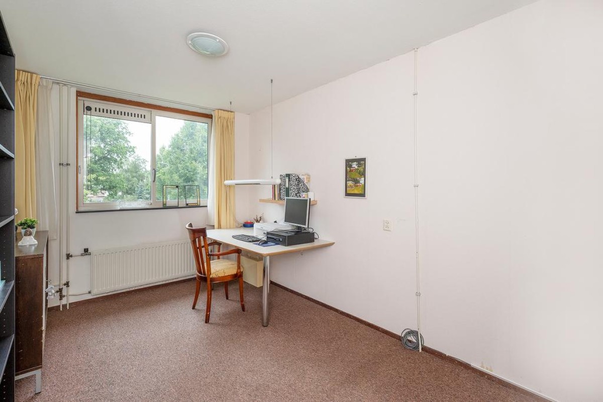 Ruime overloop met toegang tot de slaapkamers, oorspronkelijk zijn er drie slaapkamers aanwezig. Momenteel zijn de twee slaapkamers aan de achterzijde bij elkaar getrokken. De royale ouderslaapkamer van ca. 20 m2 bevindt zich aan de achterzijde. De badkamer is voorzien van een douche, wastafel, aansluiting voor de wasmachine en een 2e toilet. Aan de voorzijde bevindt zich de andere slaapkamer.