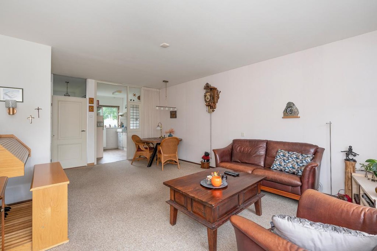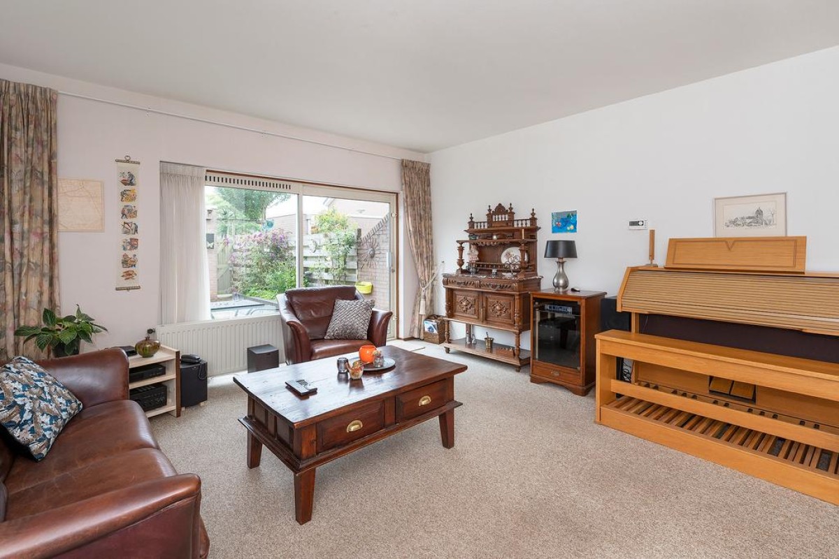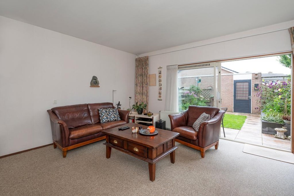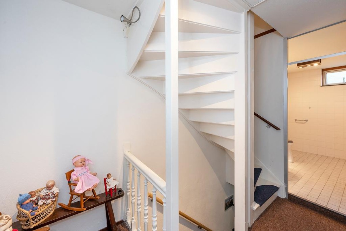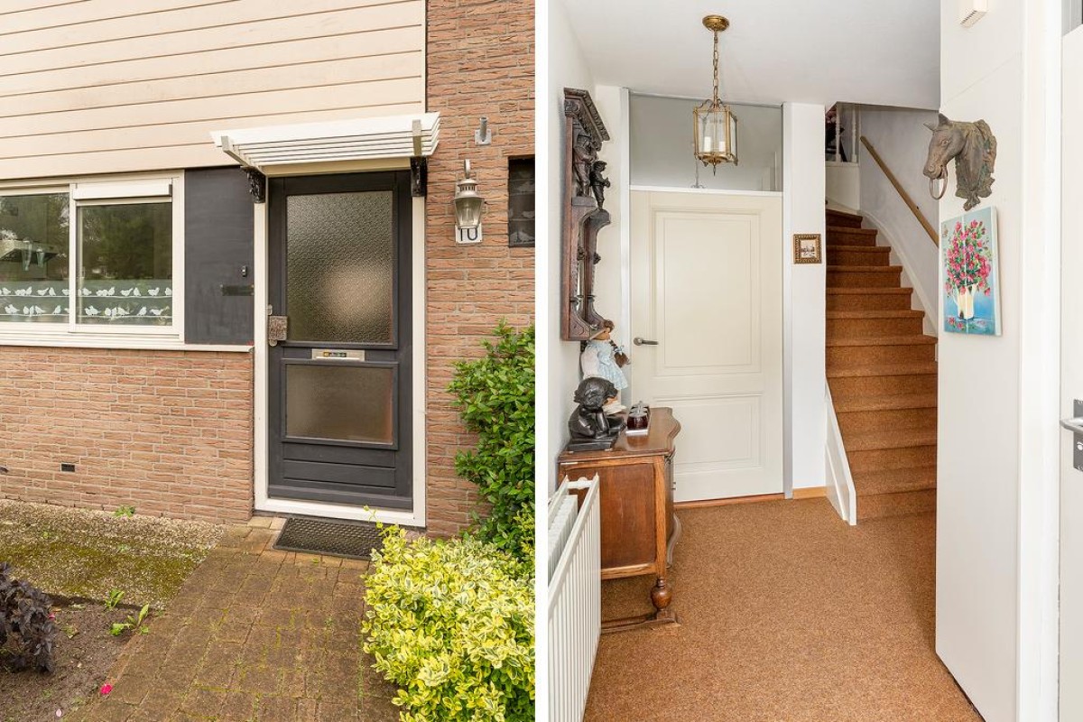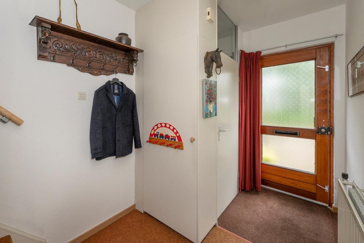 Entree, hal met meterkast, toilet en trapopgang. De tuingerichte woonkamer is over de volledige breedte van de woning.