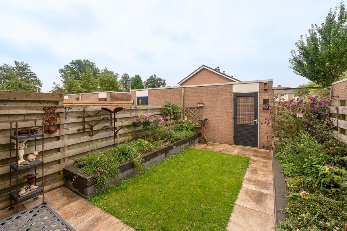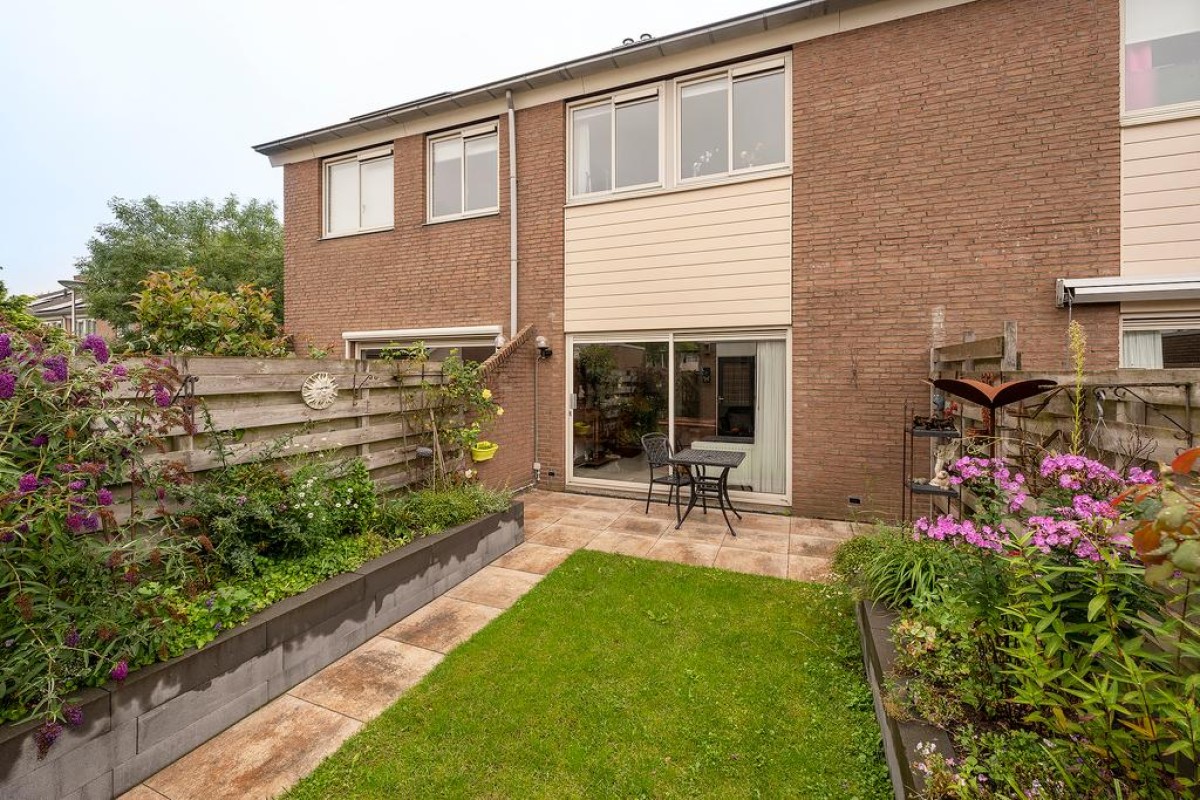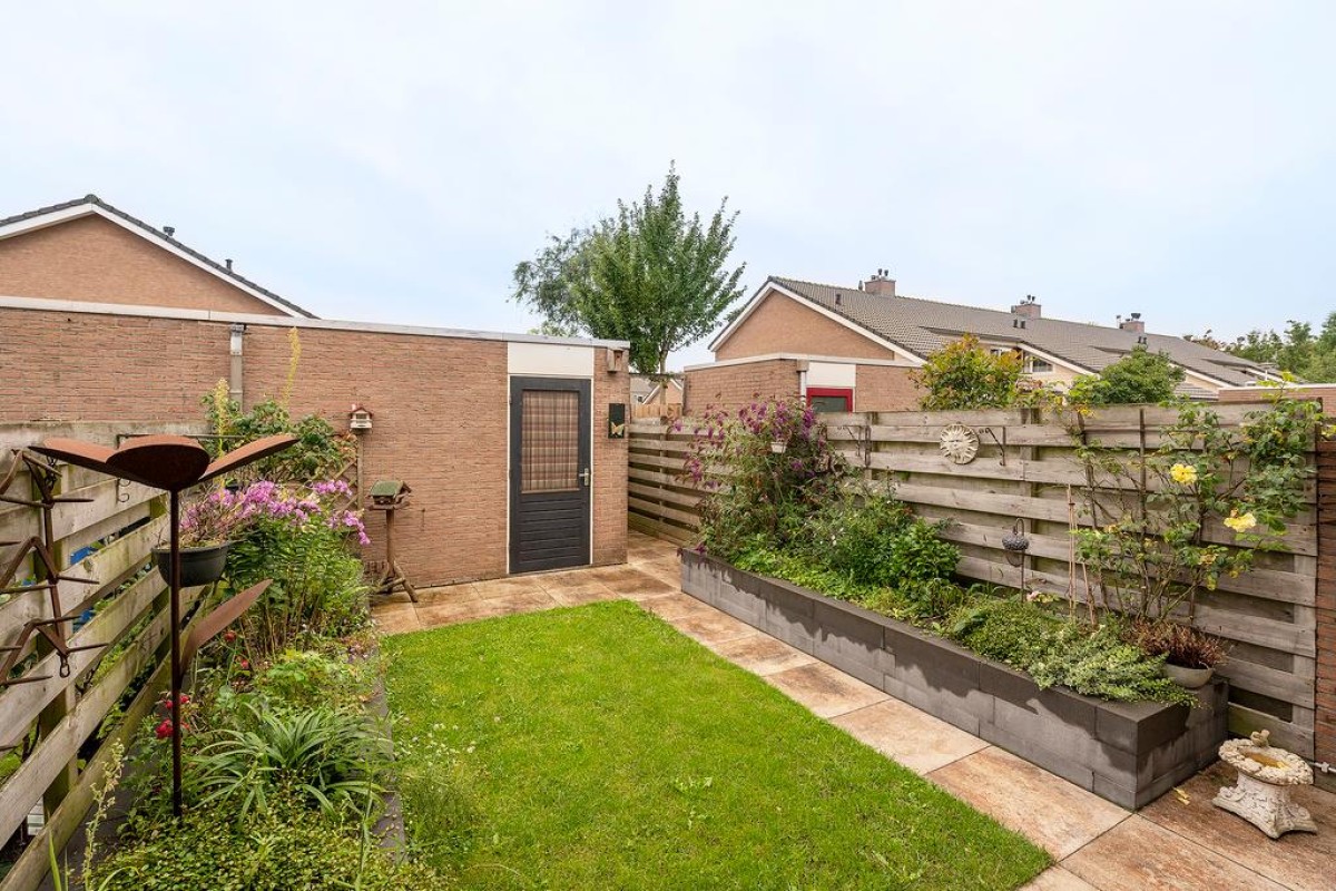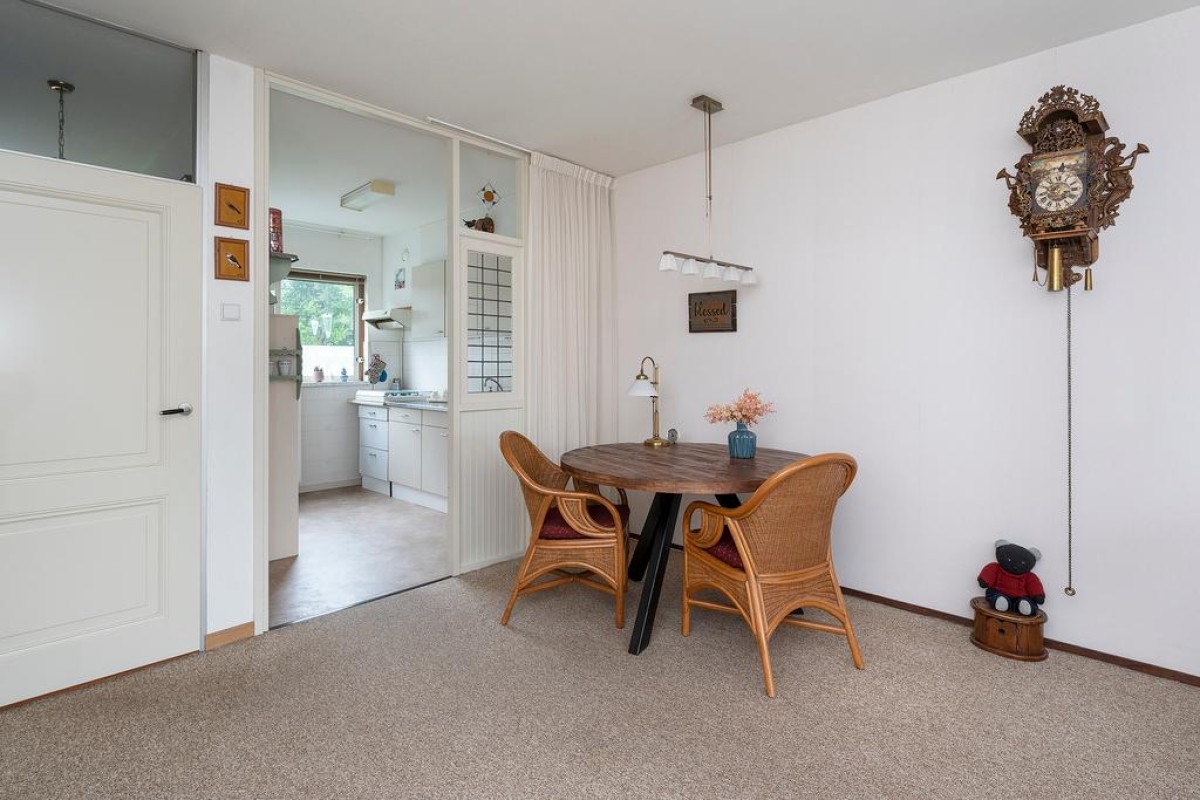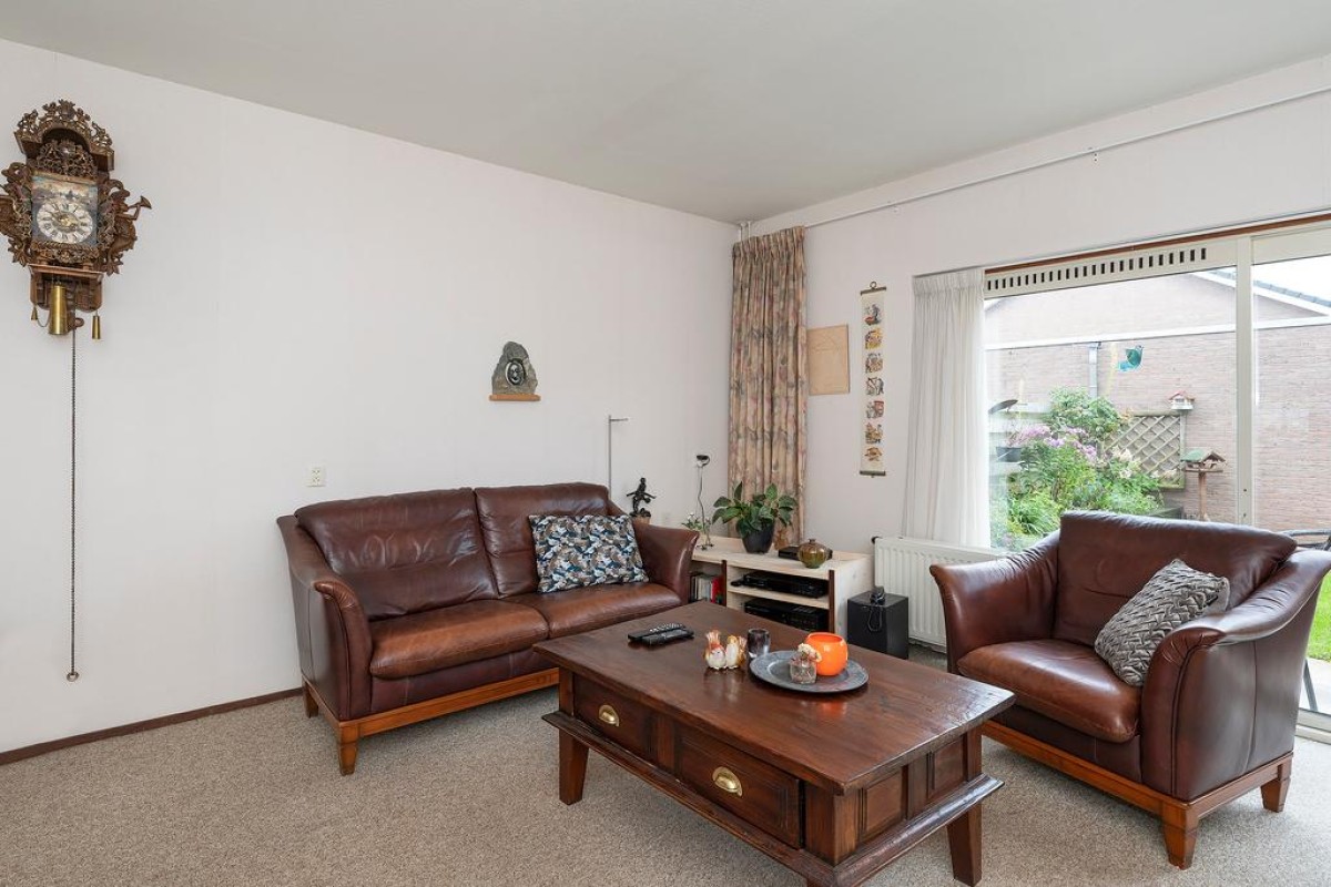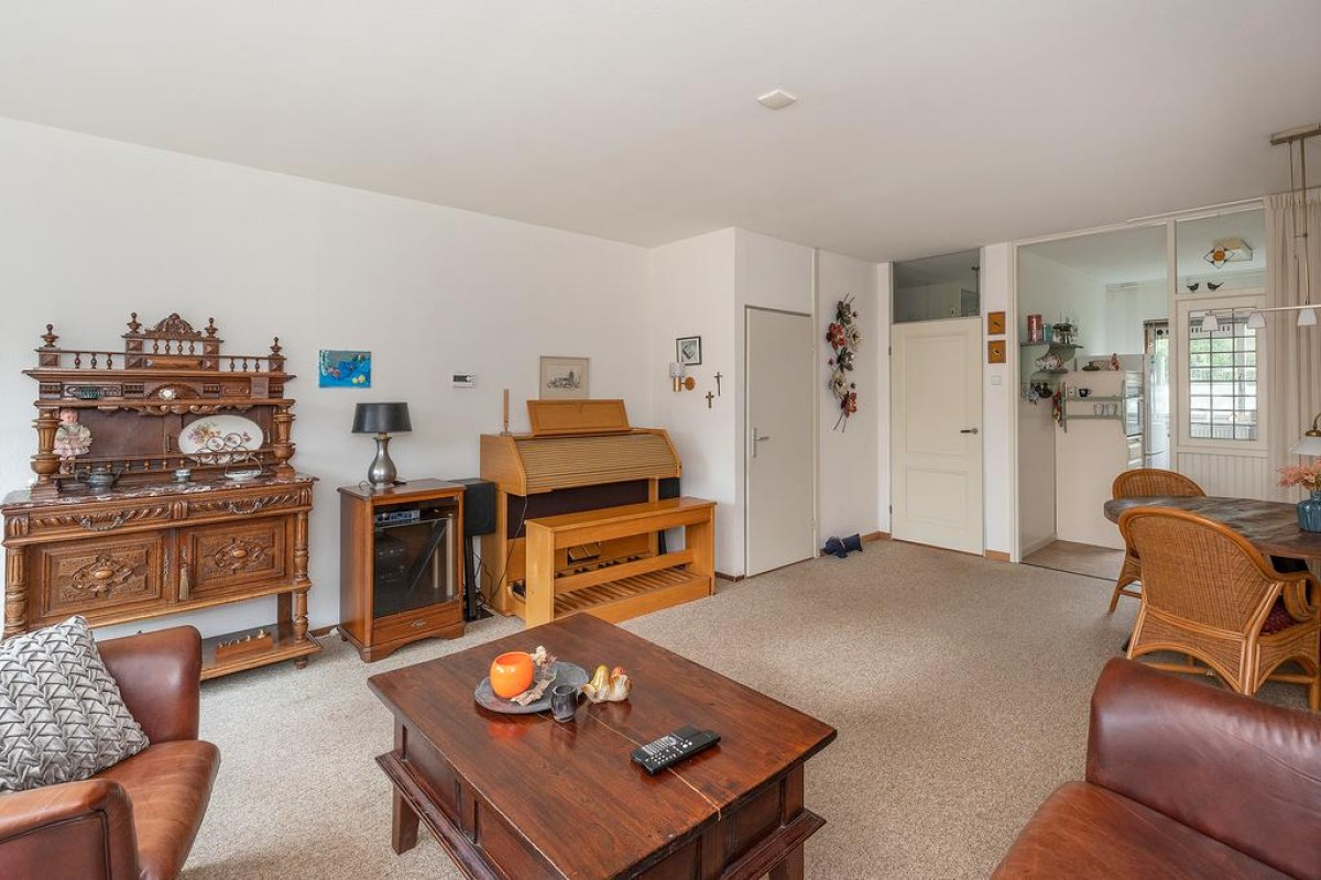 Entree, hal met meterkast, toilet en trapopgang. De tuingerichte woonkamer is over de volledige breedte van de woning.