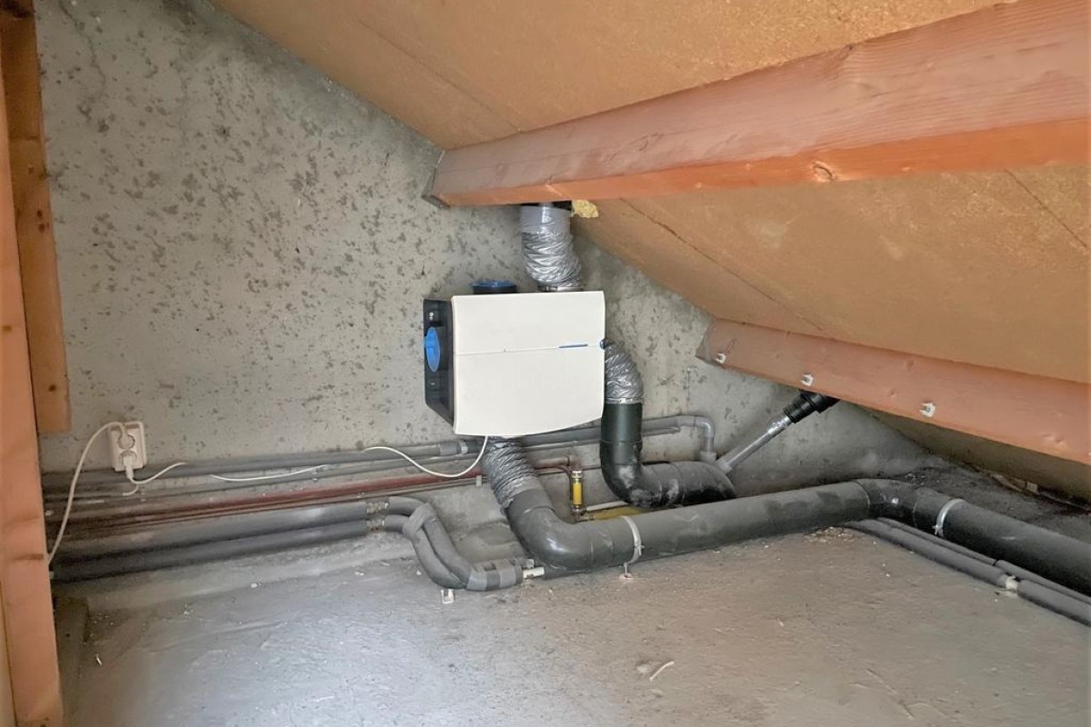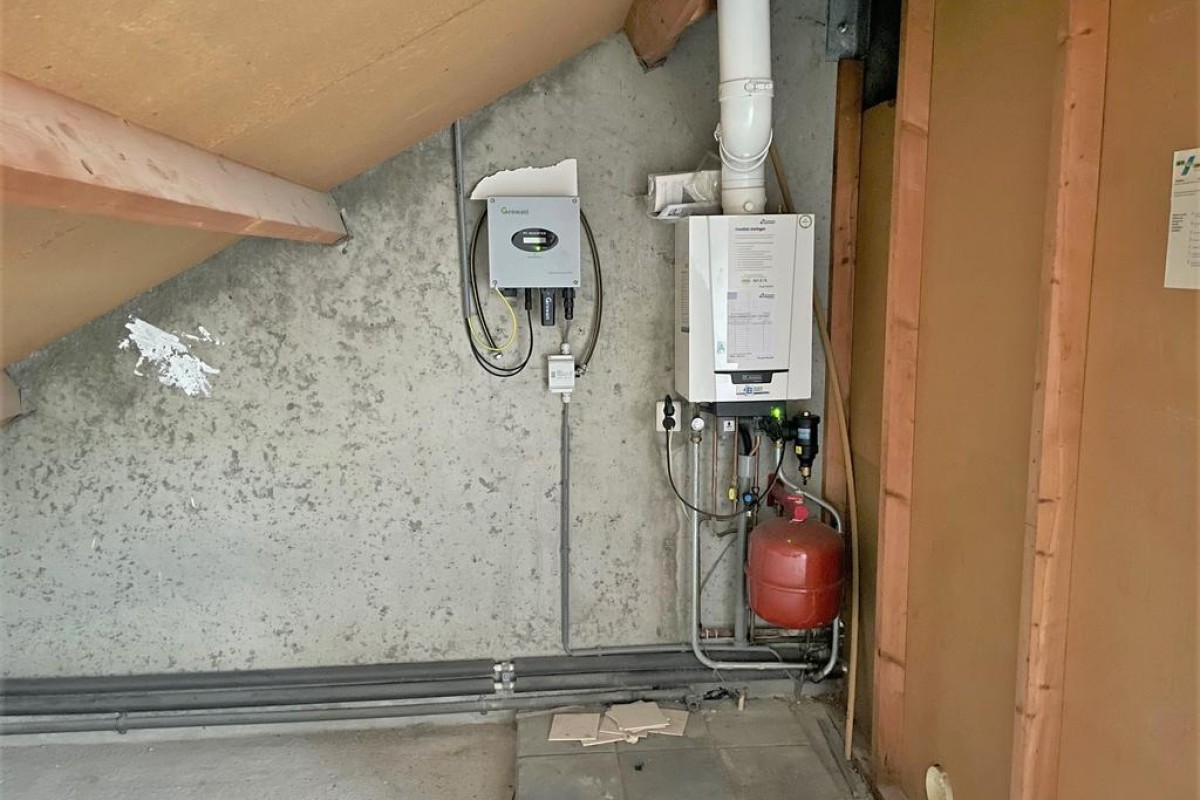 Overloop met toegang tot de zolderverdieping met c.v.-opstelling en veel bergruimte.