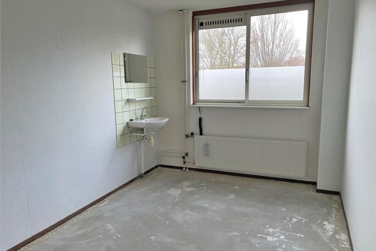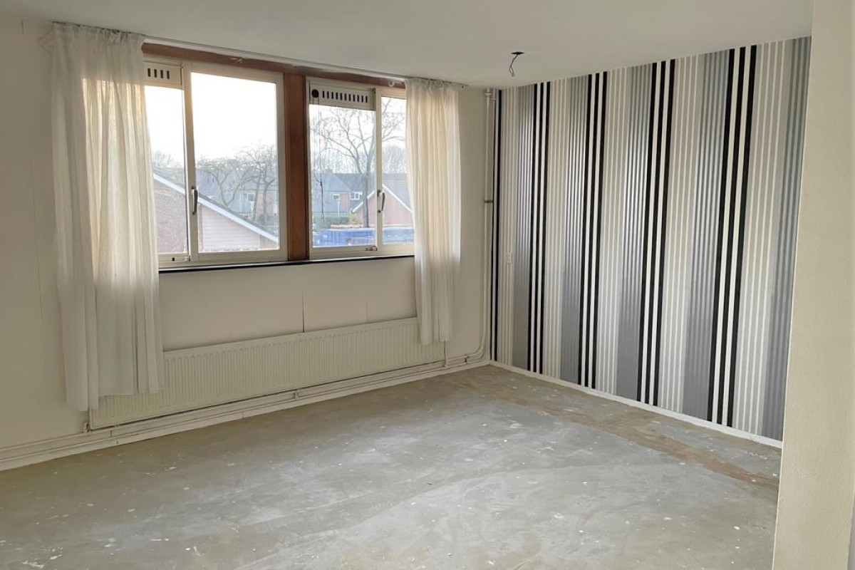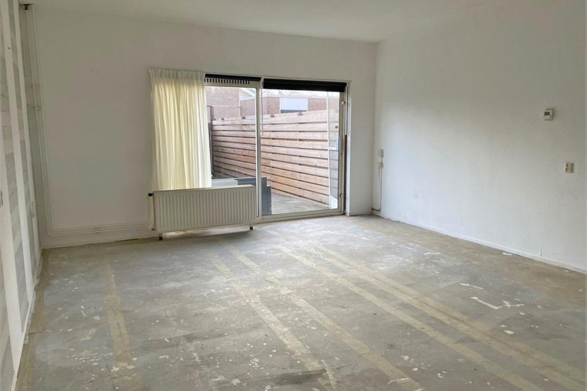 Entree, hal met meterkast, toilet en trapopgang. De tuingerichte woonkamer is over de volledige breedte van de woning.