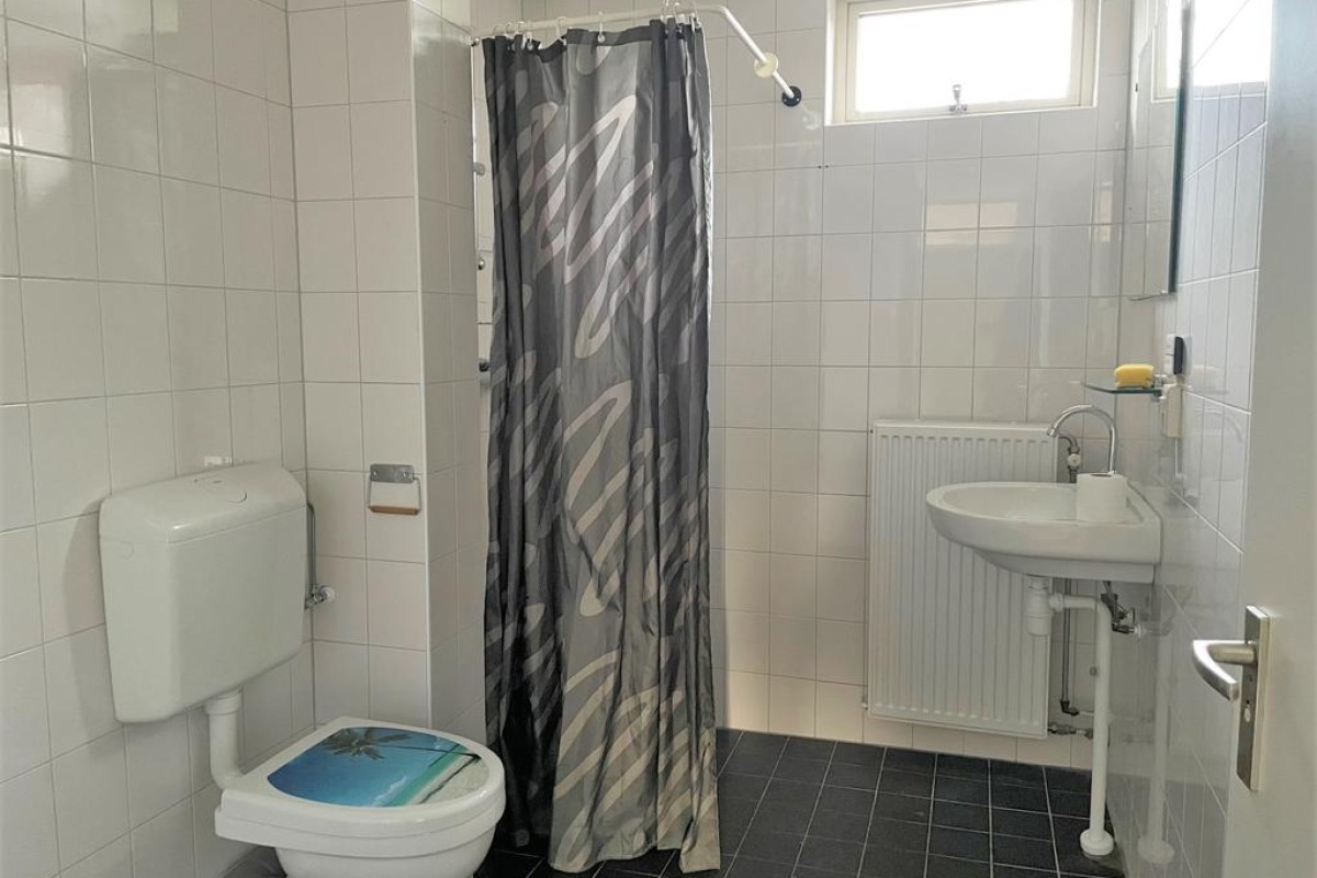 Ruime overloop met toegang tot de slaapkamers, oorspronkelijk waren er drie slaapkamers aanwezig, maar momenteel zijn de twee slaapkamers aan de achterzijde bij elkaar getrokken. De badkamer is voorzien van een douche, wastafel, aansluiting voor de wasmachine en een 2e toilet. Aan de voorzijde bevindt zich de tweede slaapkamer.