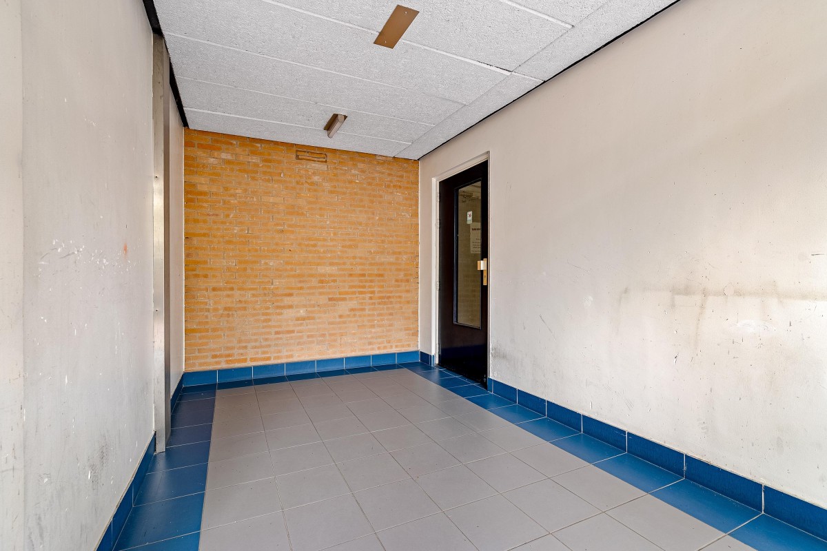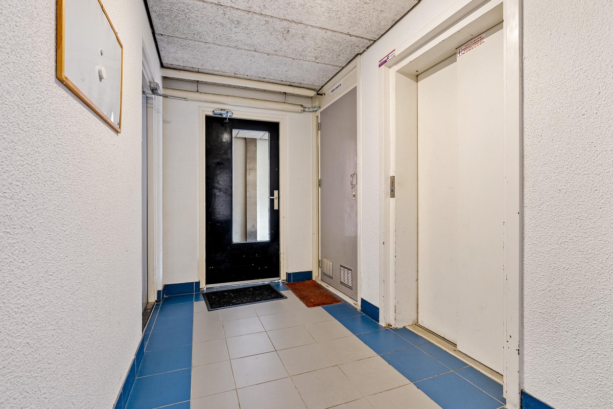 Via de centrale entree is de binnenkomst in het complex. Hier bevinden zich de postbussen, bergingen en lift. Op de tweede verdieping is de entree tot het appartement. Vanuit de ruim opgezette hal is er toegang tot het separaat toilet, twee slaapkamers, de badkamer, de woonkamer en de keuken.